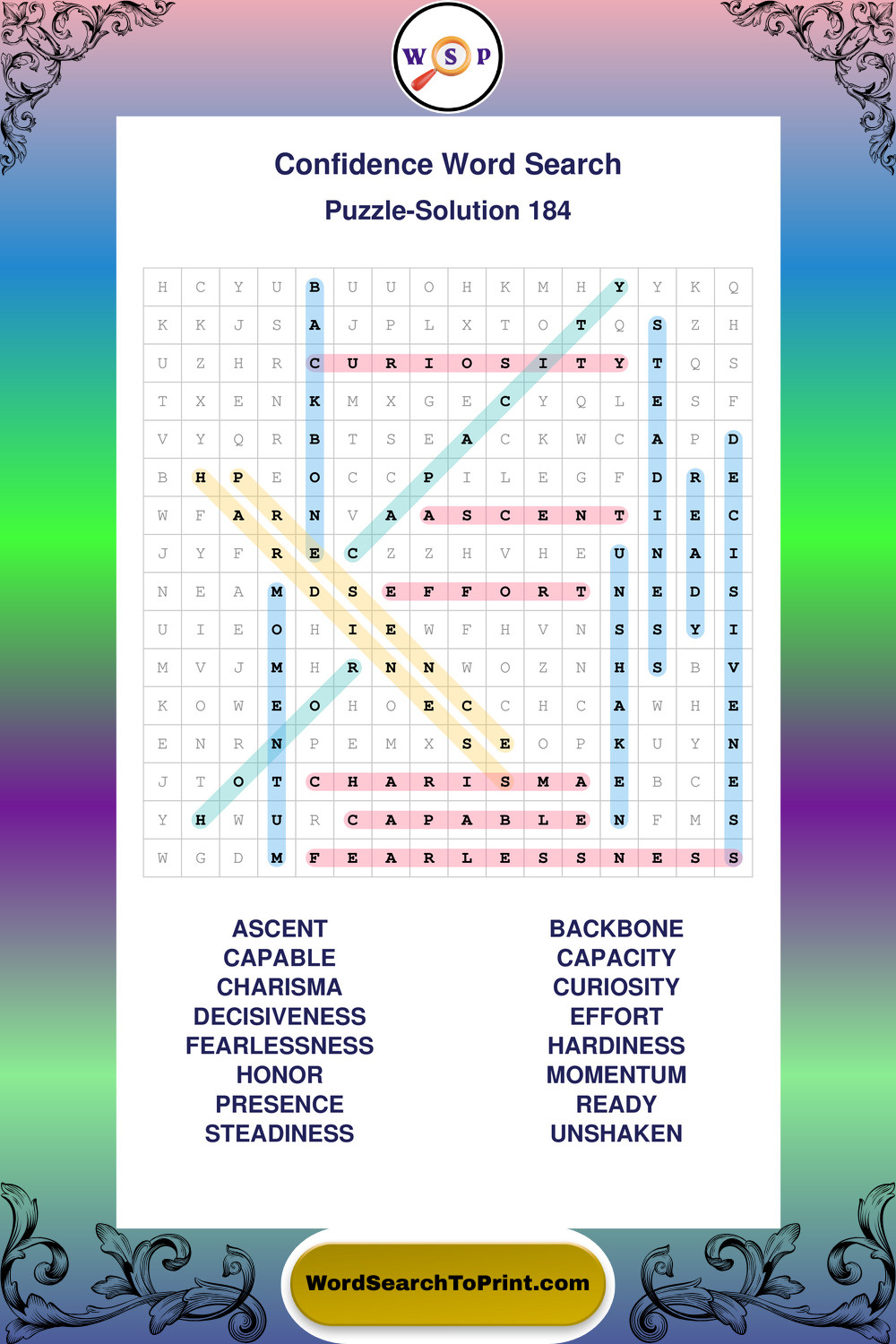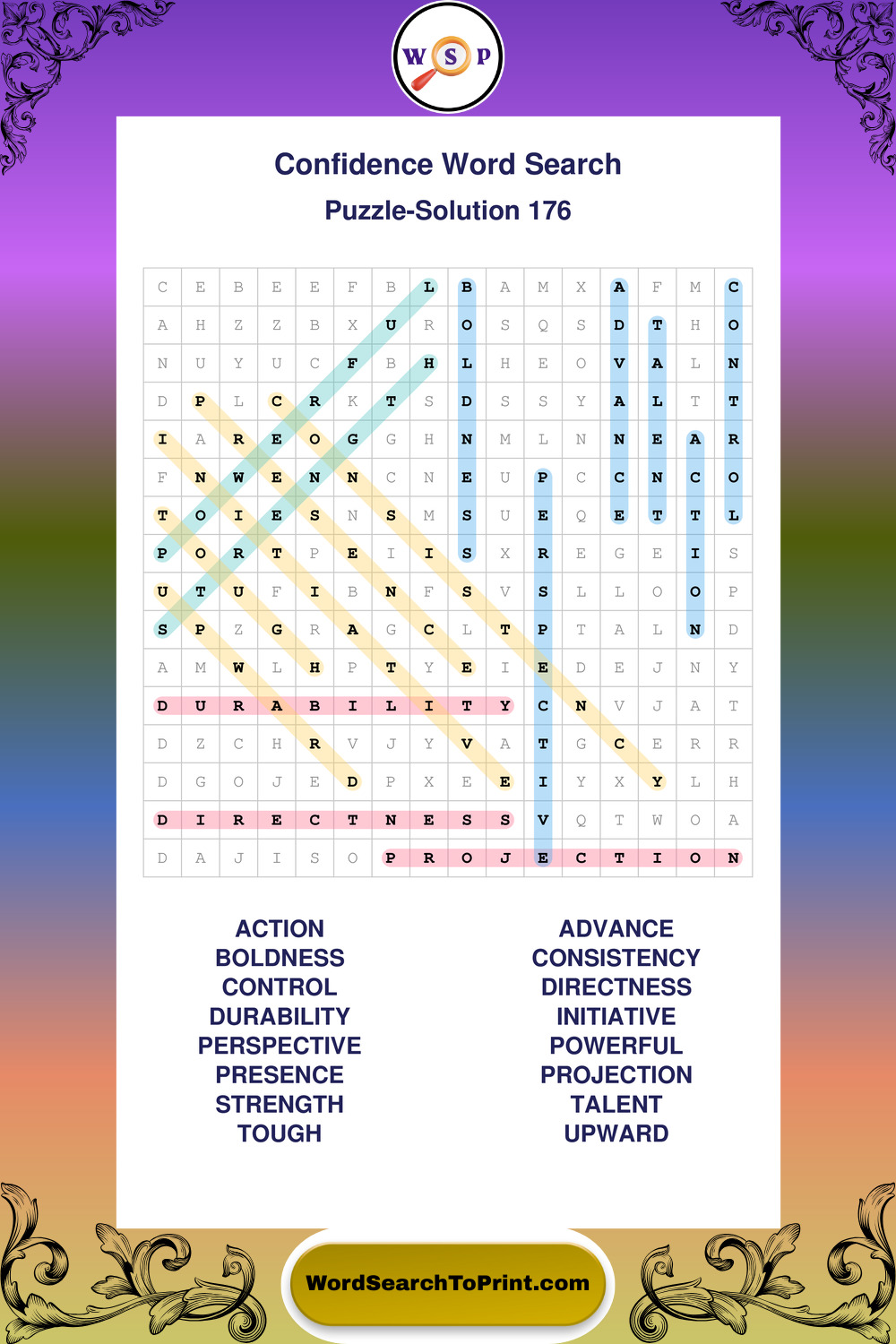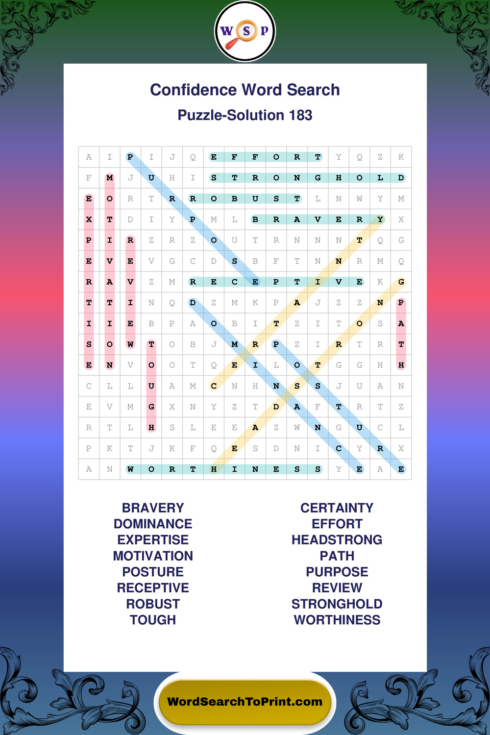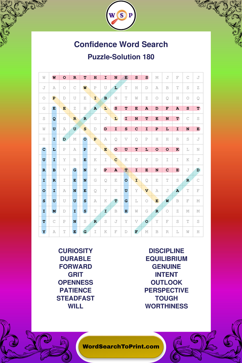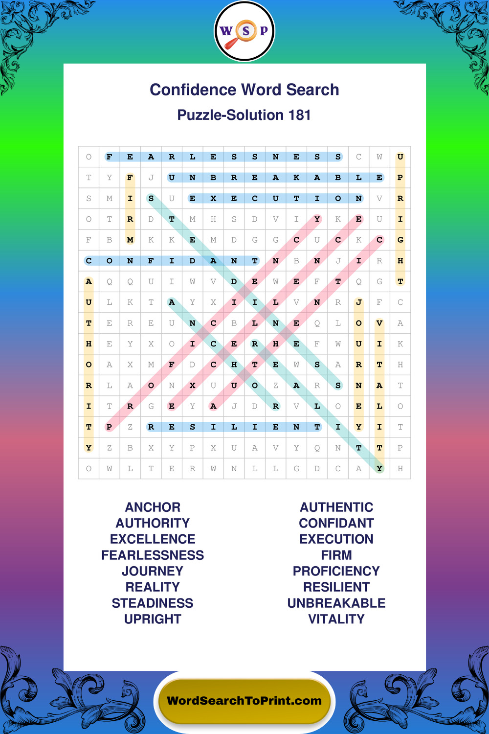 These large print Confidence wordsearches are ideal for calm focus, light mental exercise, and easy readability.