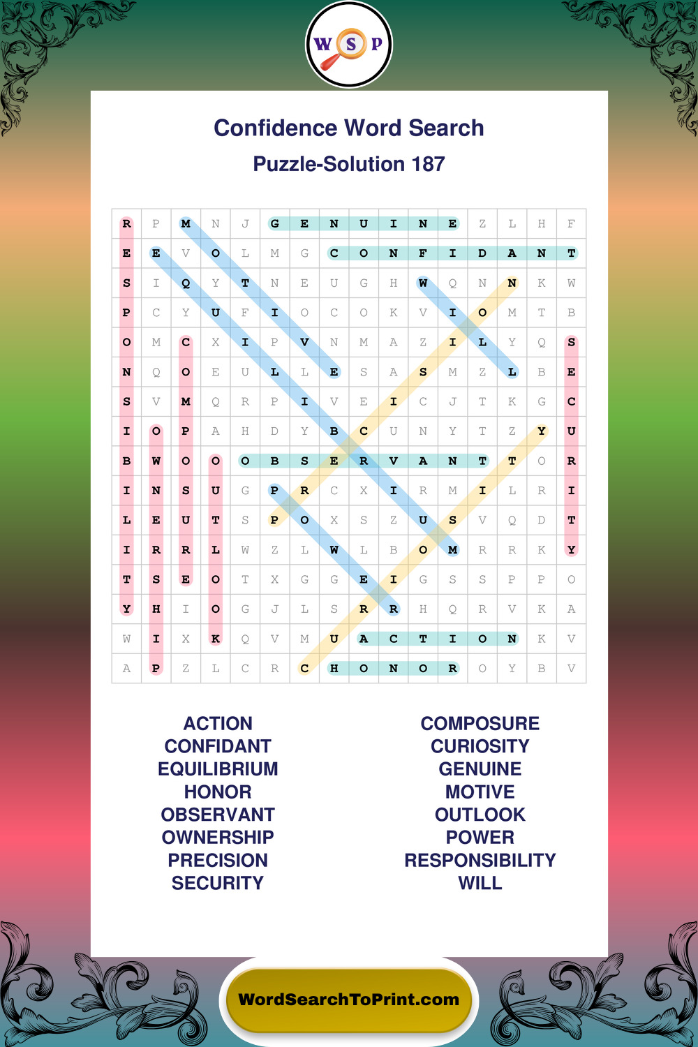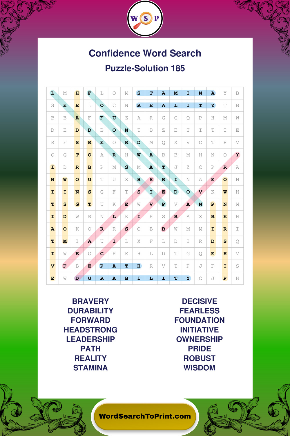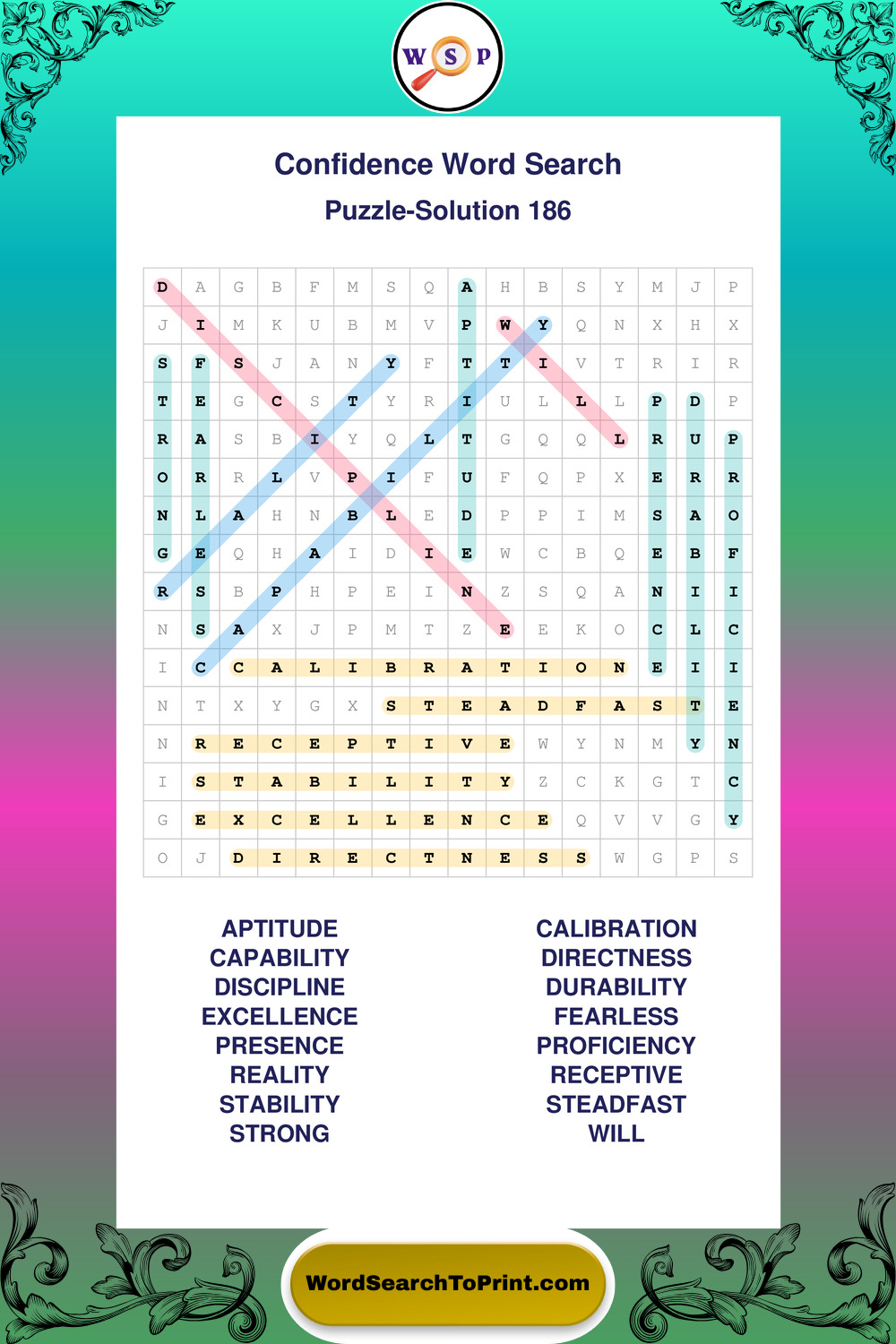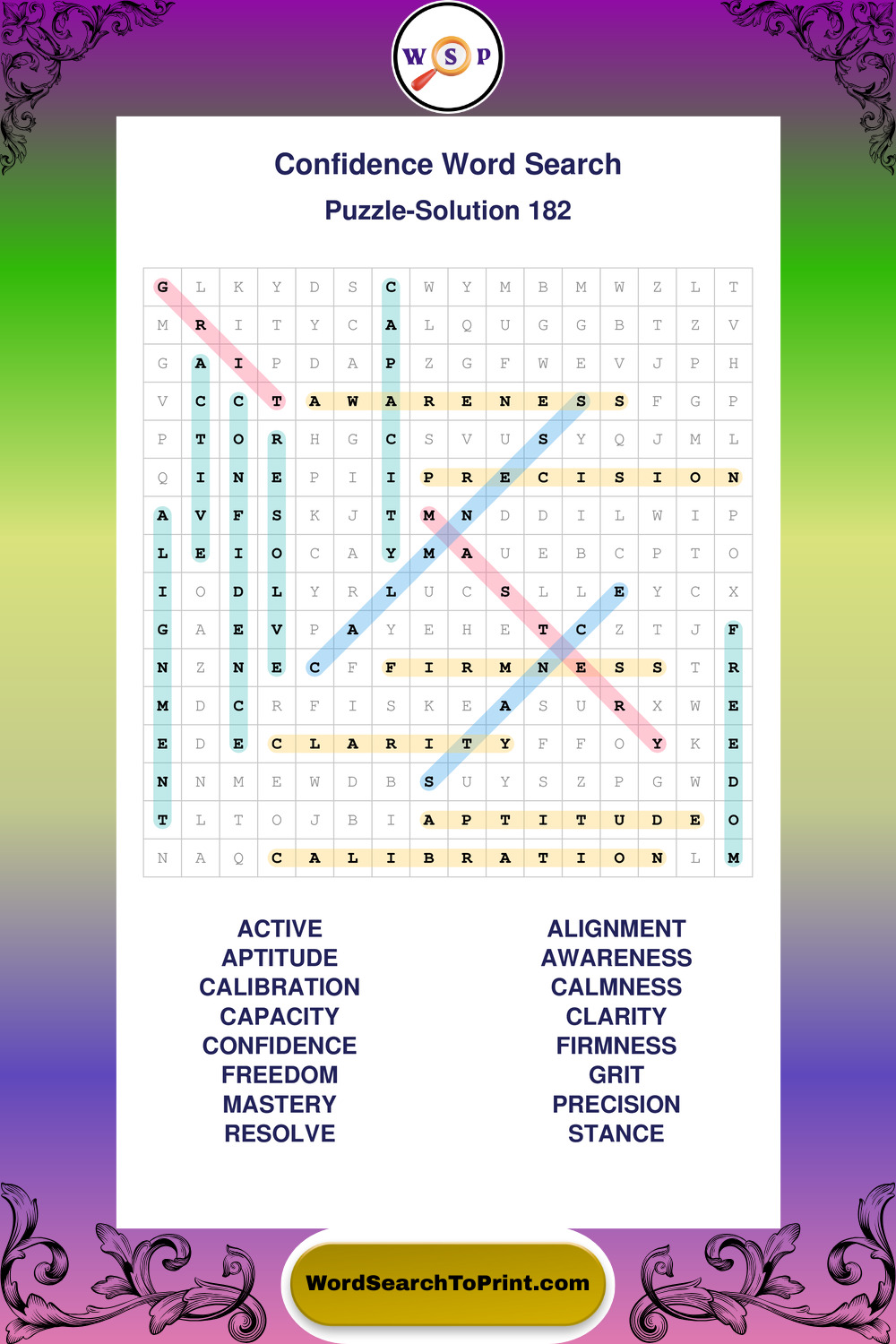 These large print Confidence wordsearches are ideal for calm focus, light mental exercise, and easy readability.