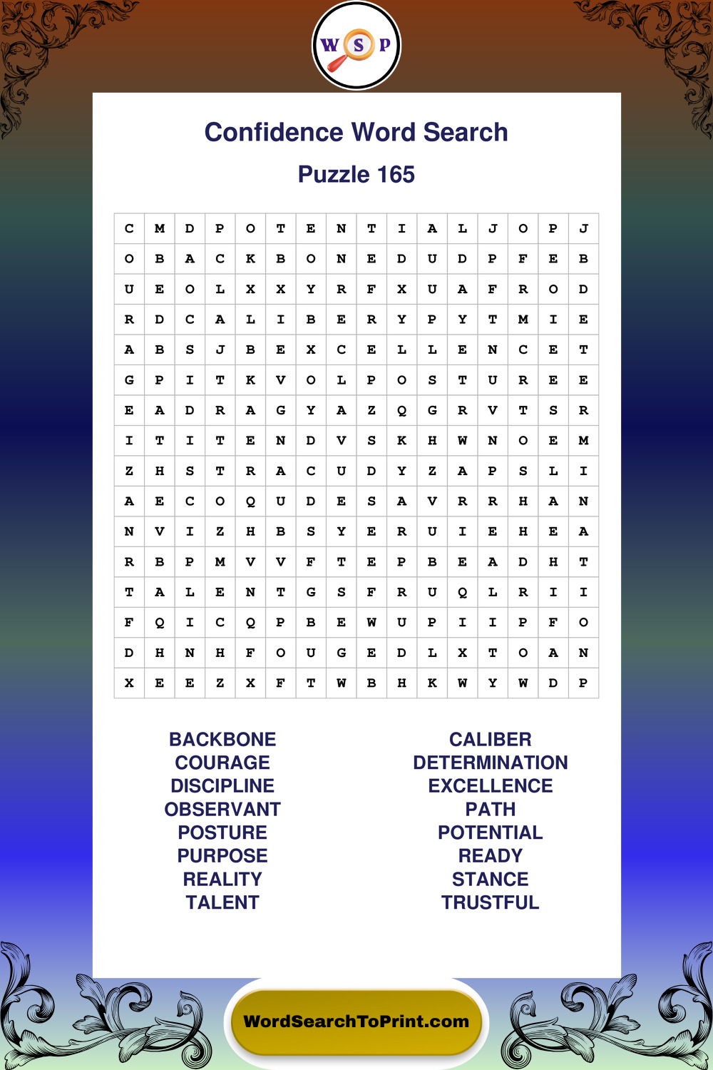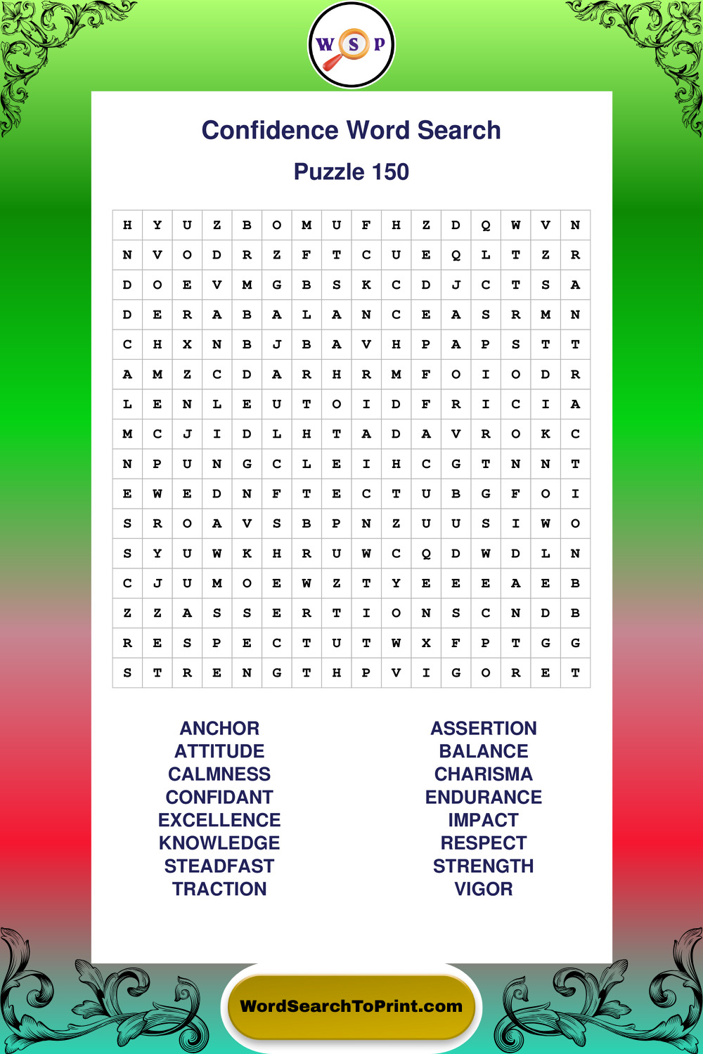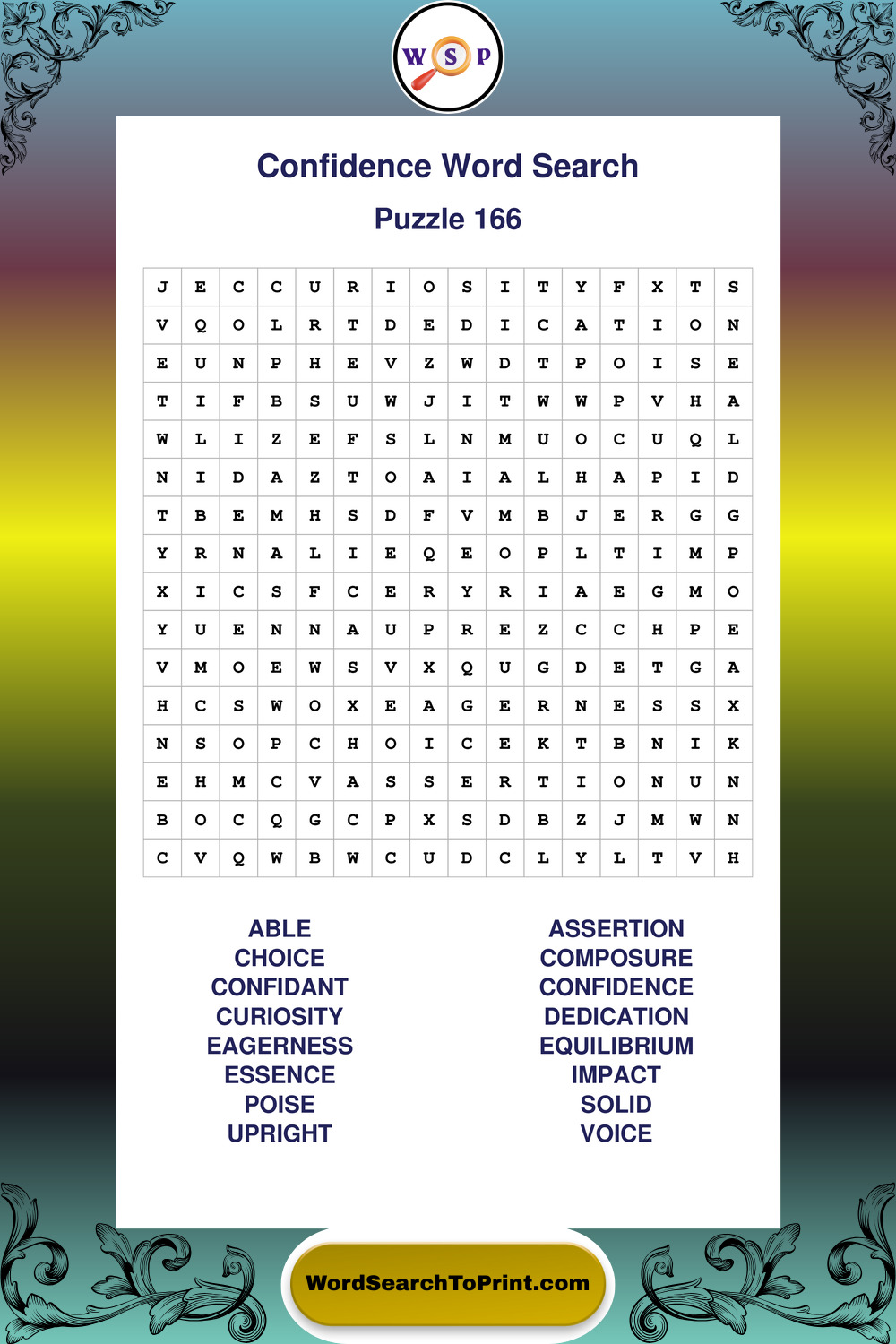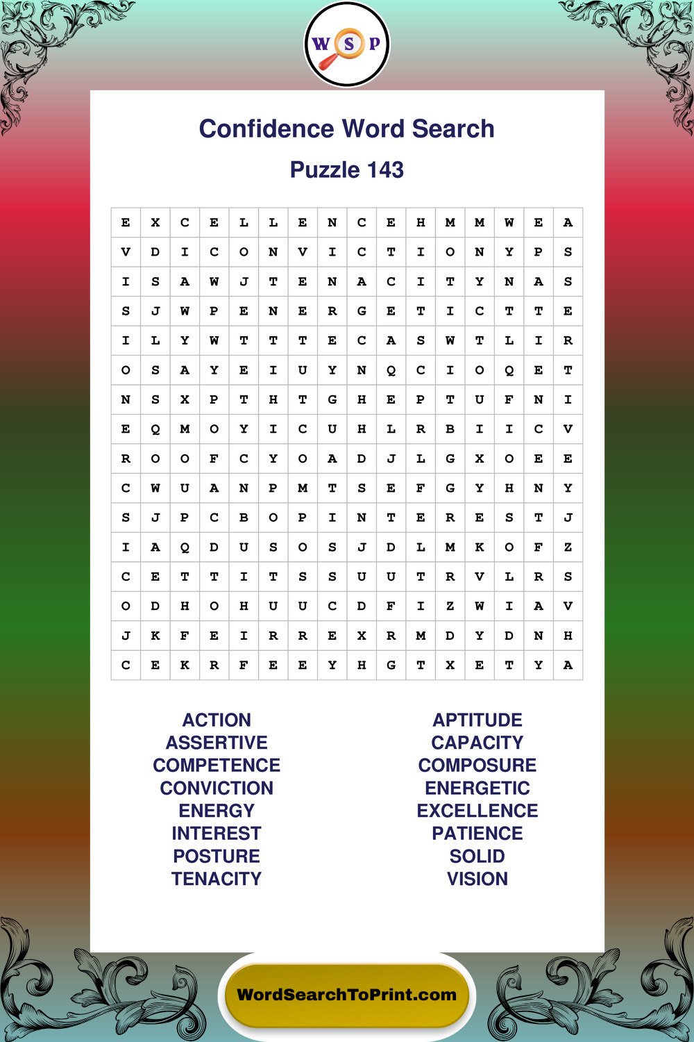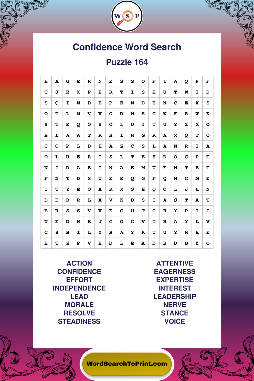 These large print Confidence wordsearches are ideal for calm focus, light mental exercise, and easy readability.