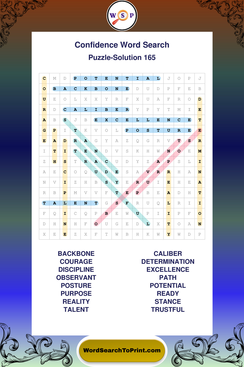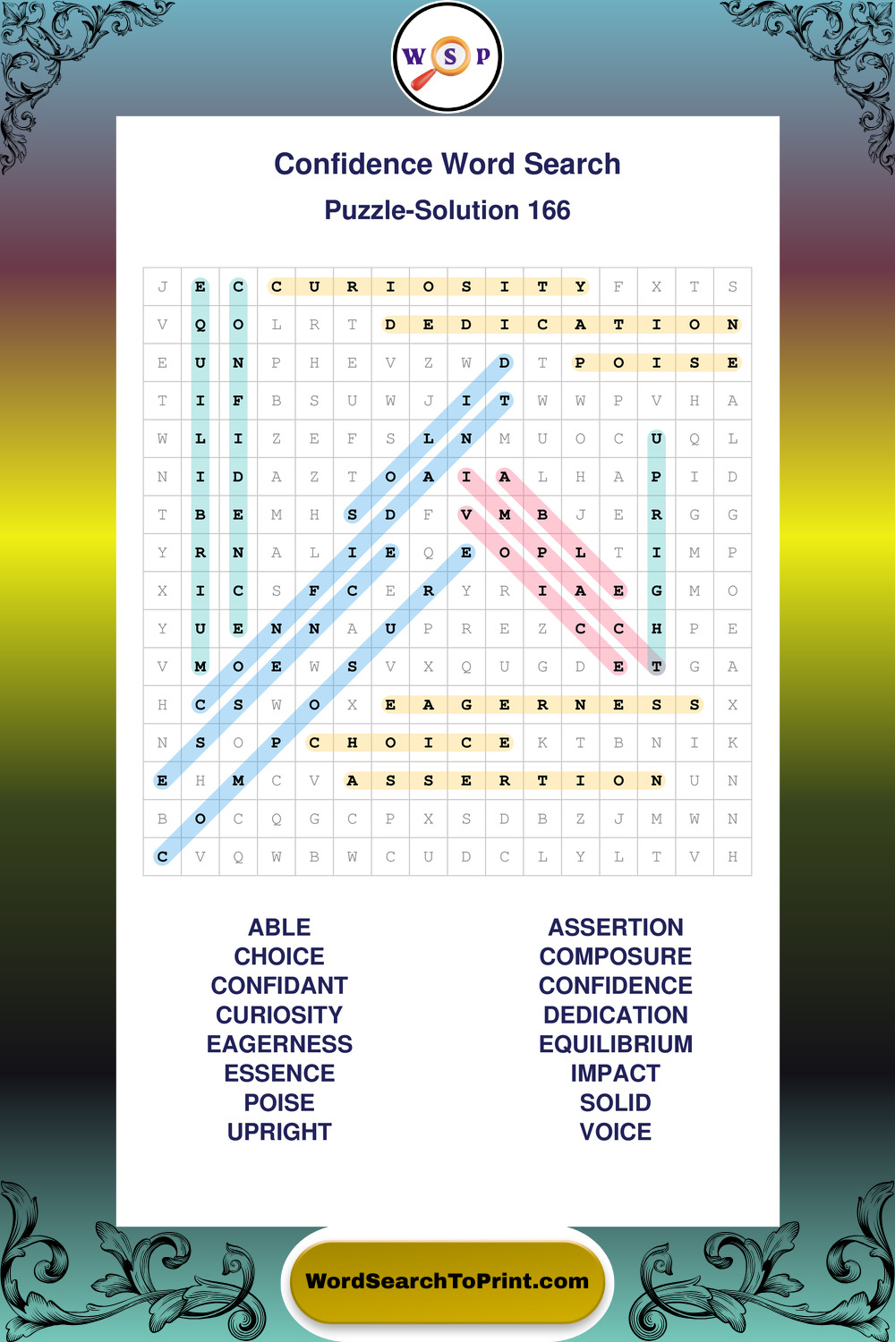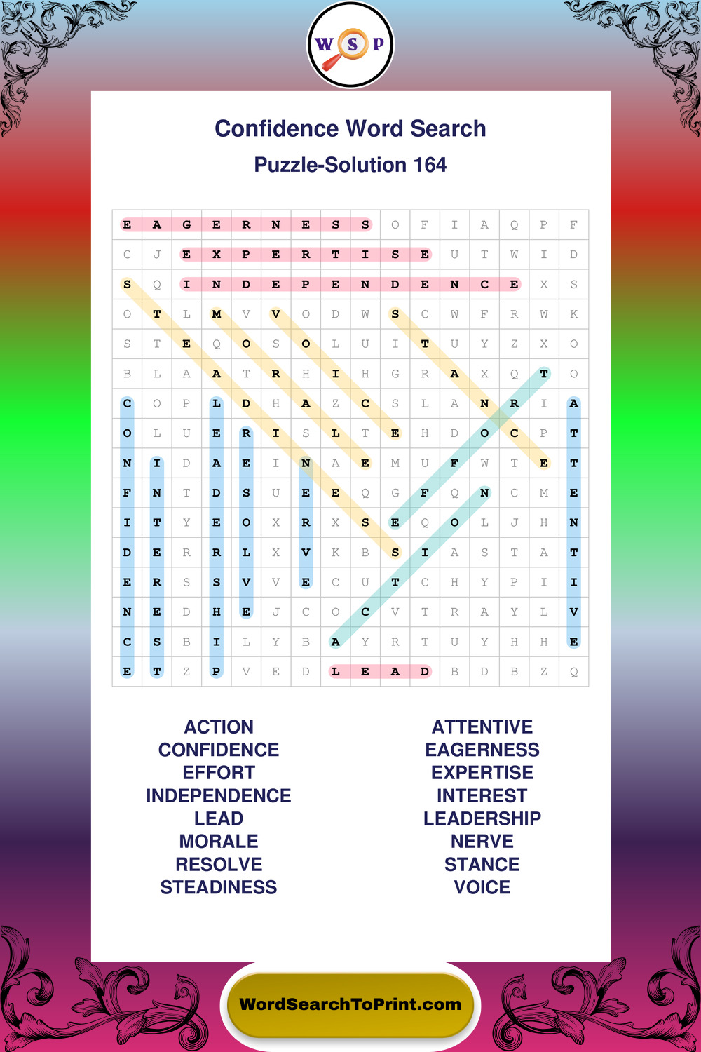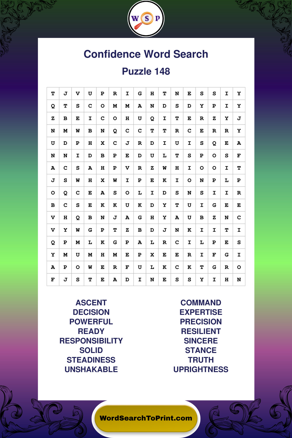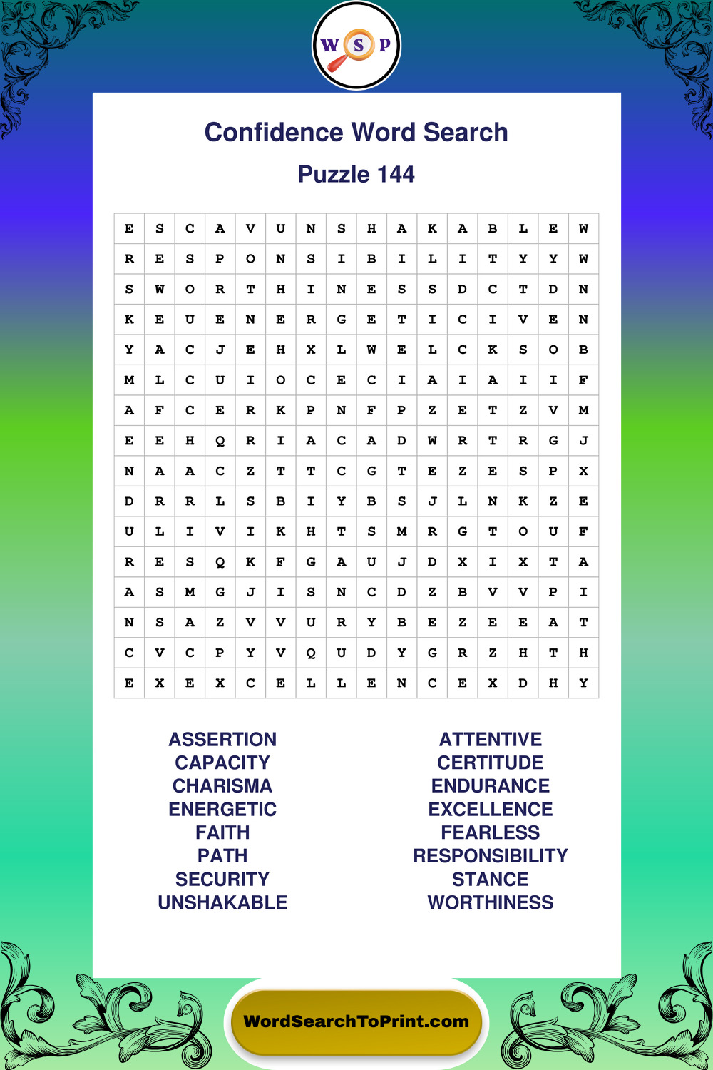 These large print Confidence wordsearches are ideal for calm focus, light mental exercise, and easy readability.