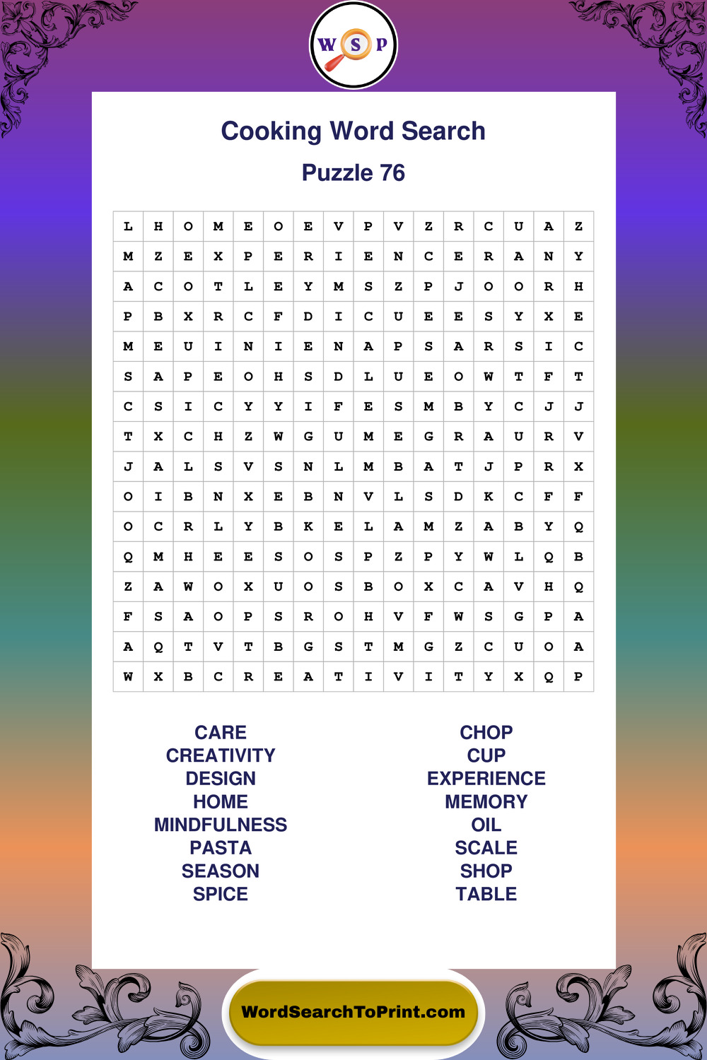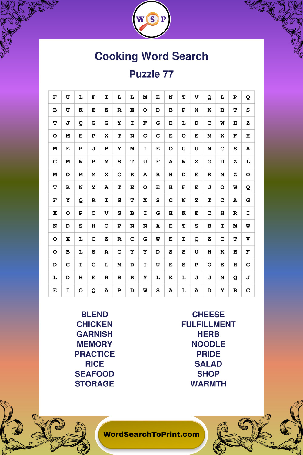 These printable large print Cooking wordsearches offer a comfortable way to stay mentally active without pressure.