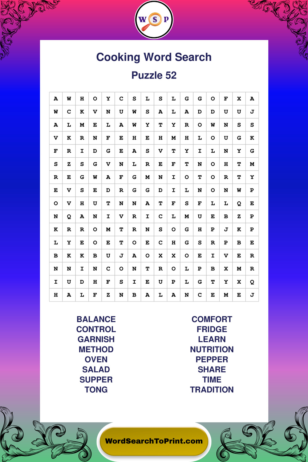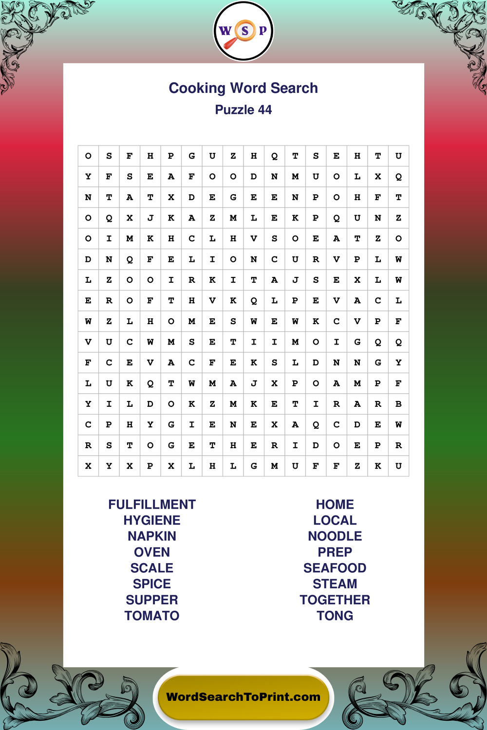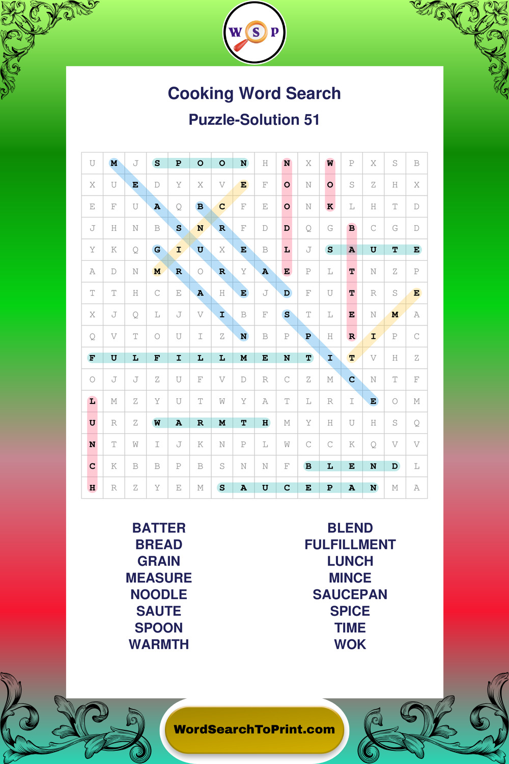 Cooking Wordsearches
