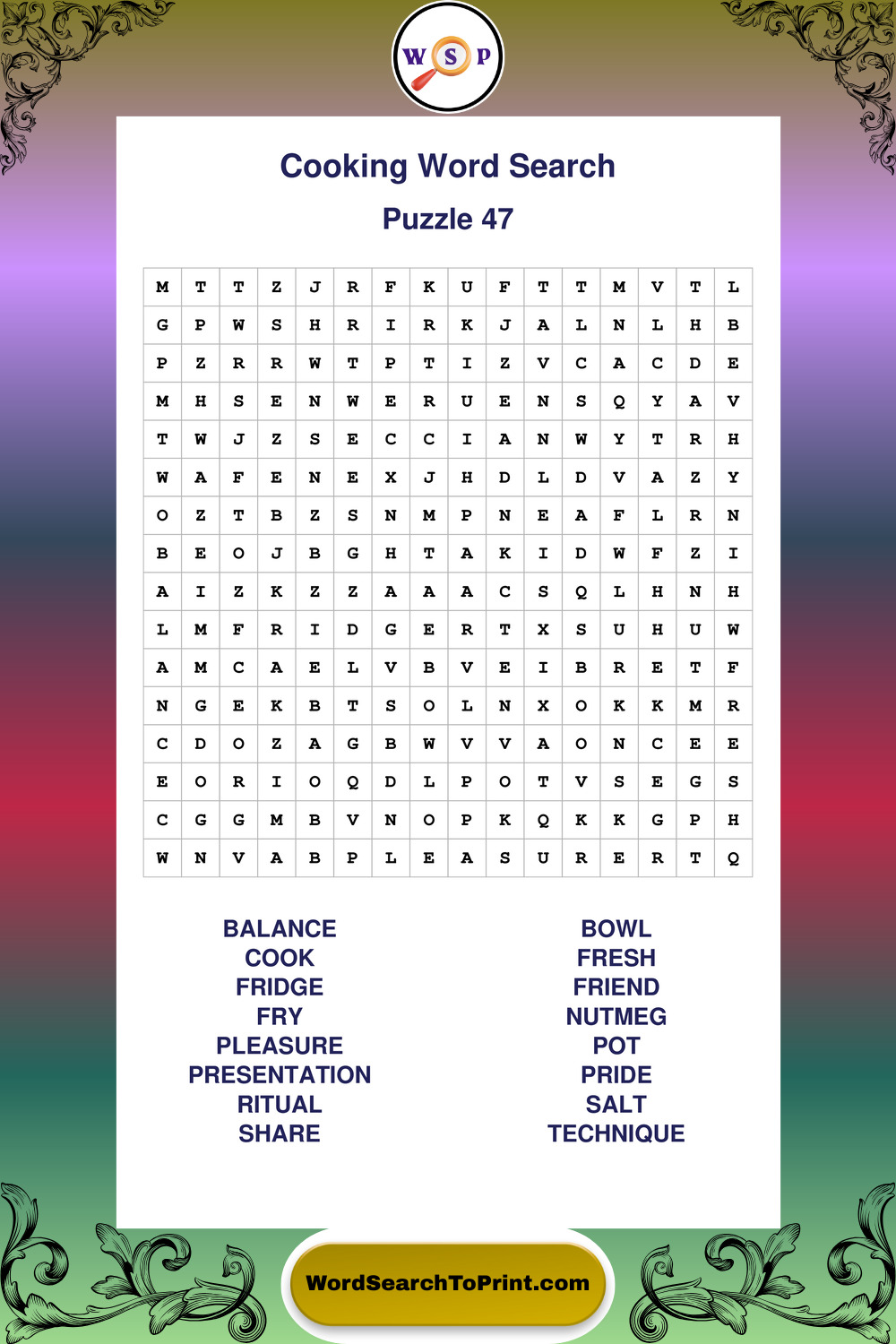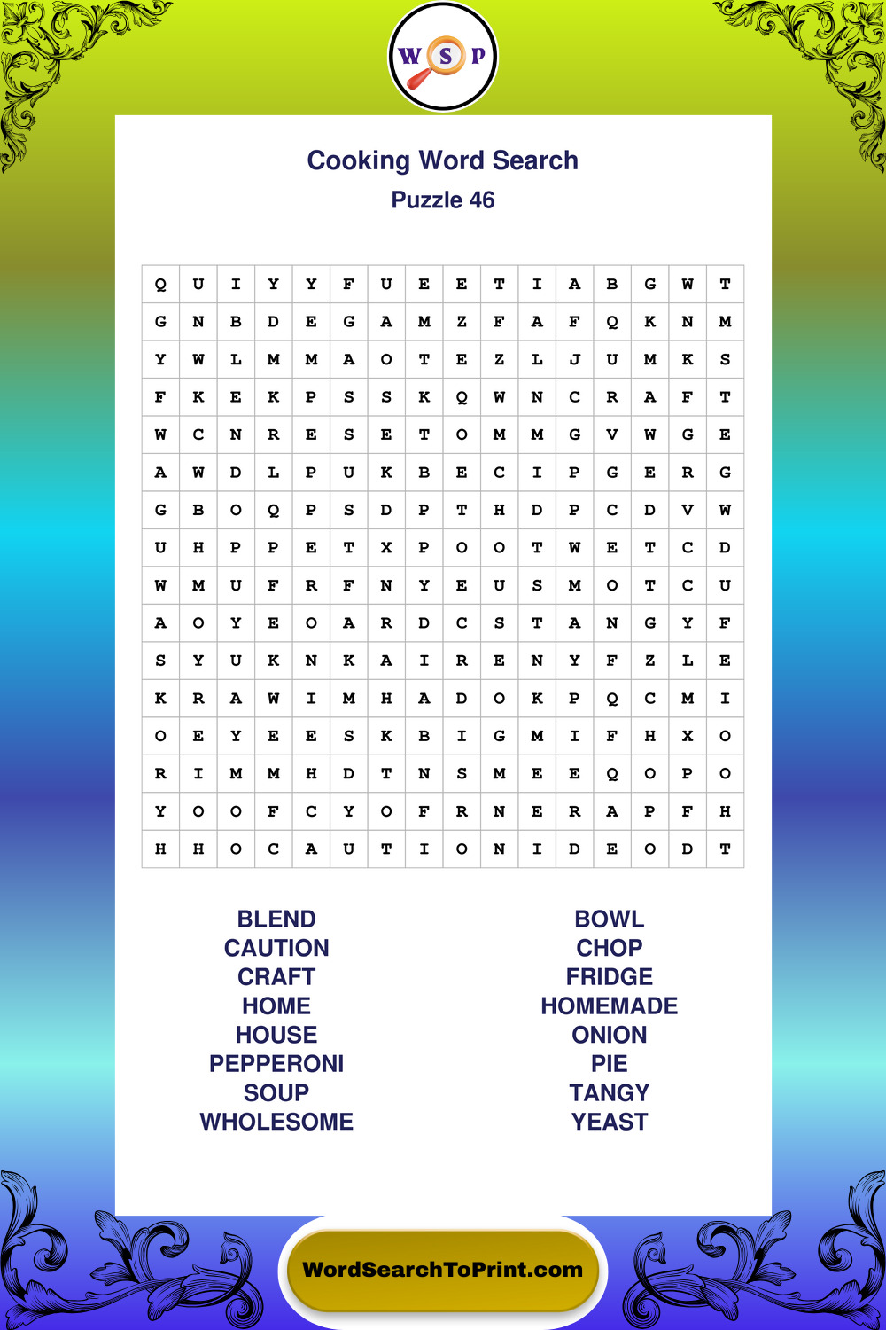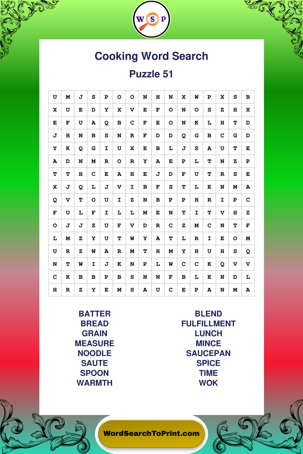 Printable Cooking Wordsearch Puzzles