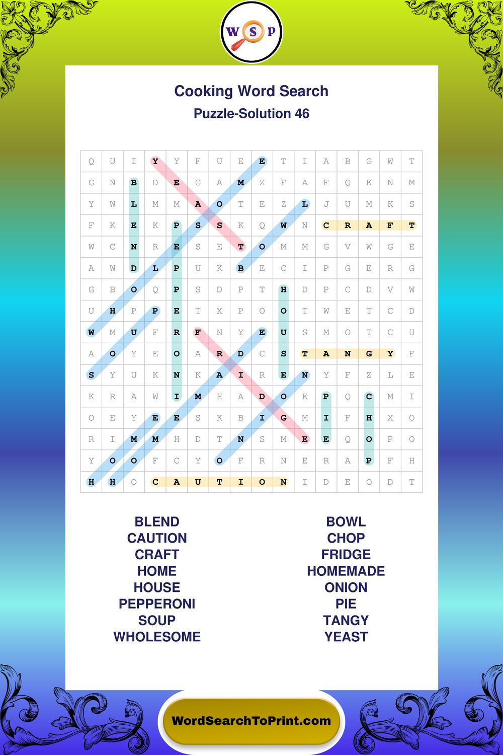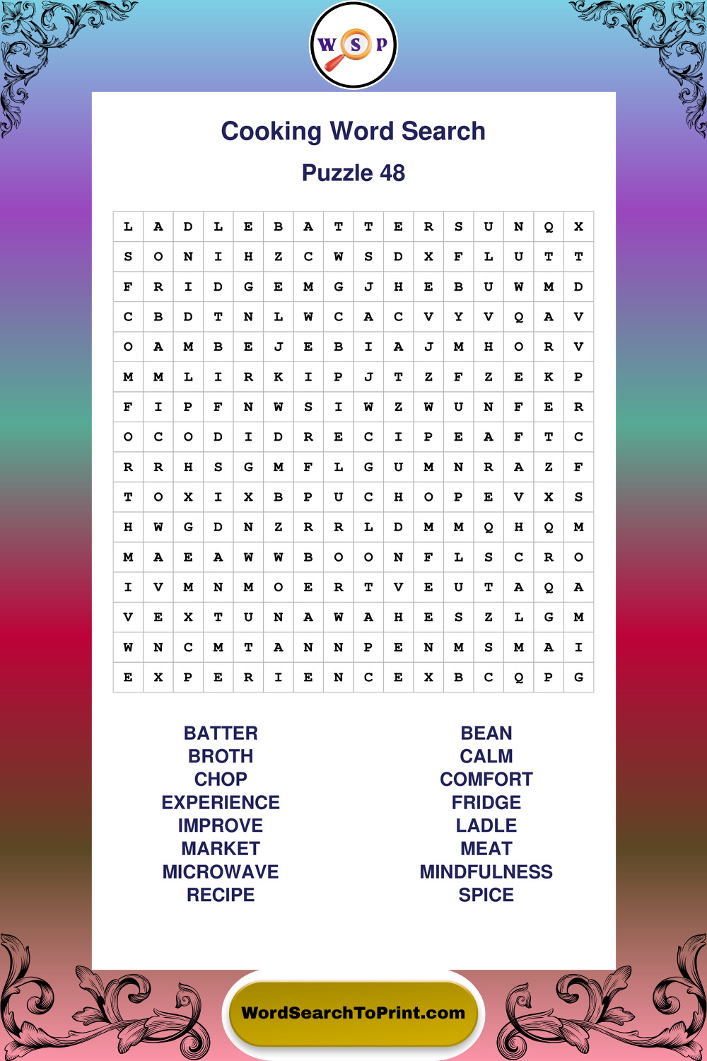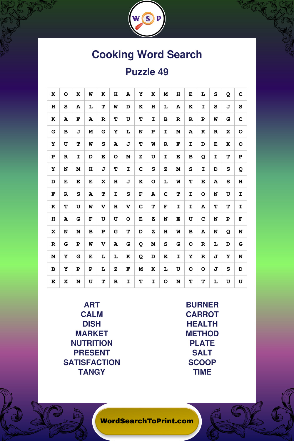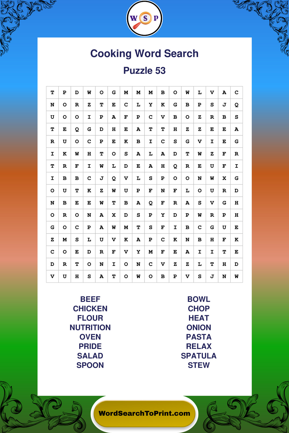 Printable Cooking Wordsearch Puzzles