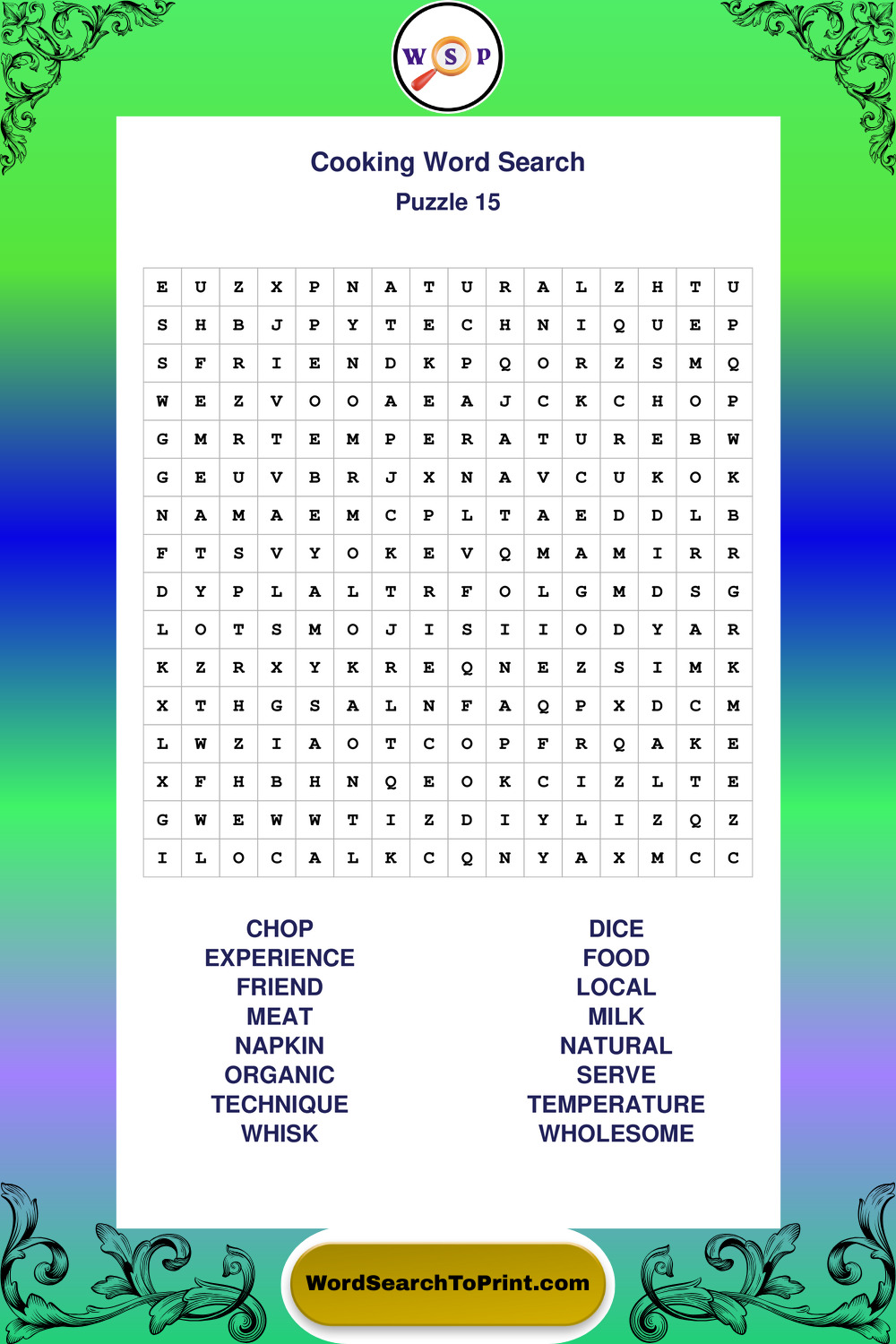 Printable Cooking Wordsearch Puzzles
