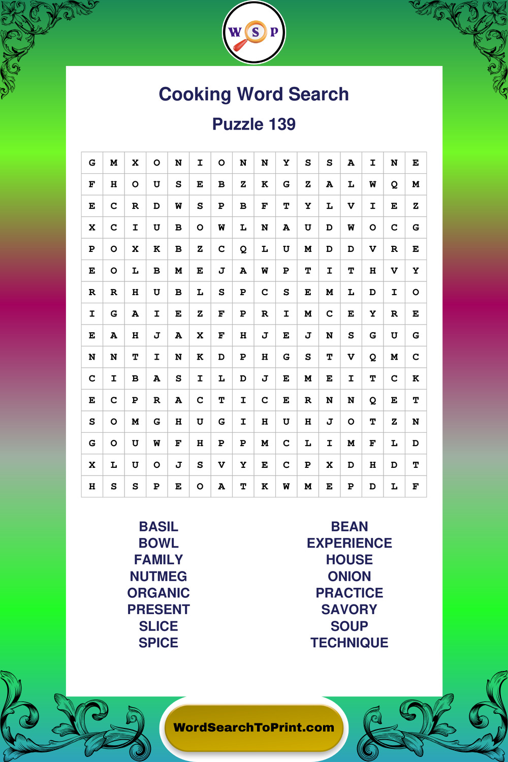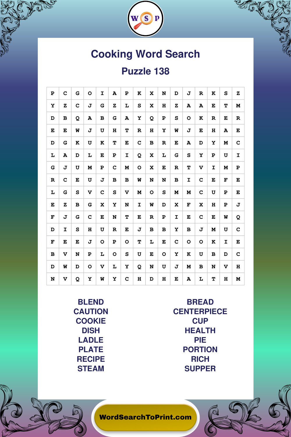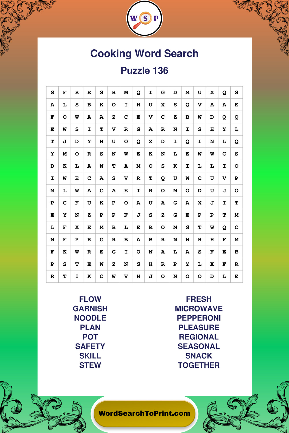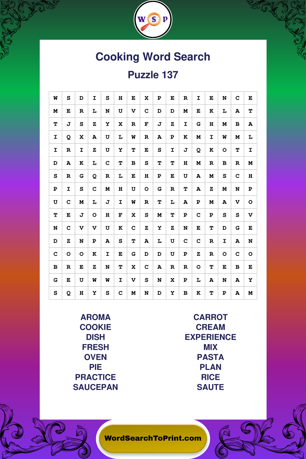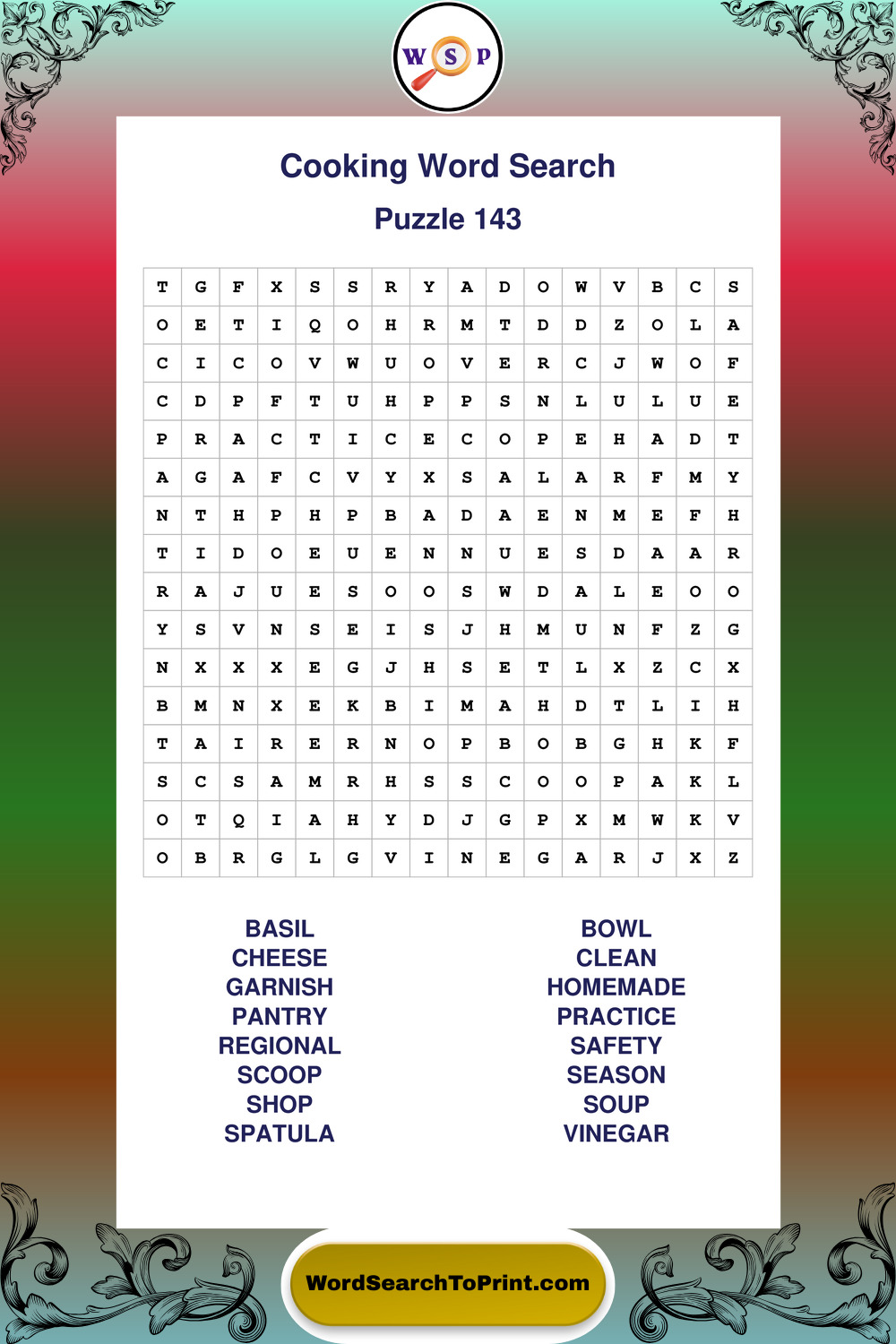 Cooking Wordsearches