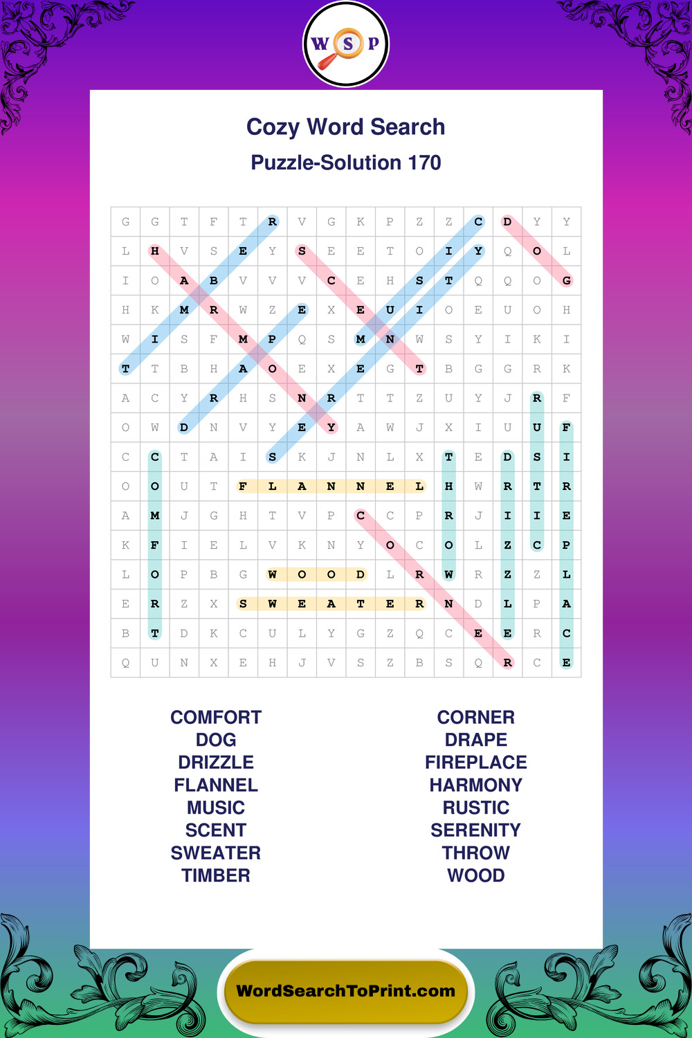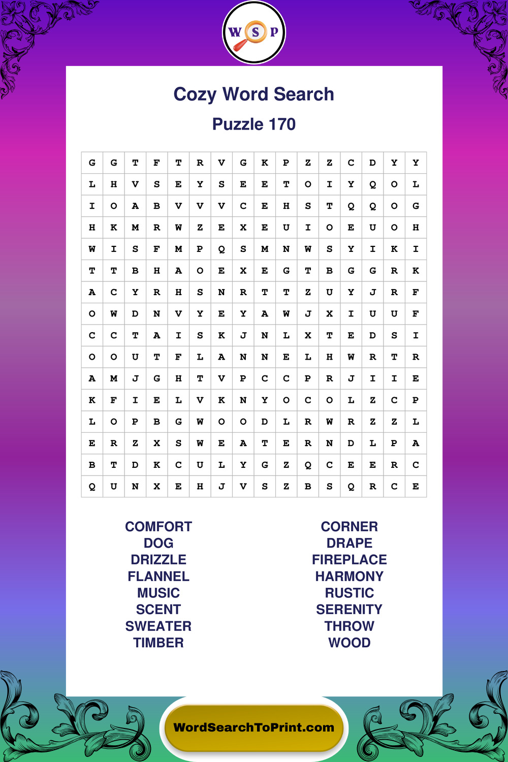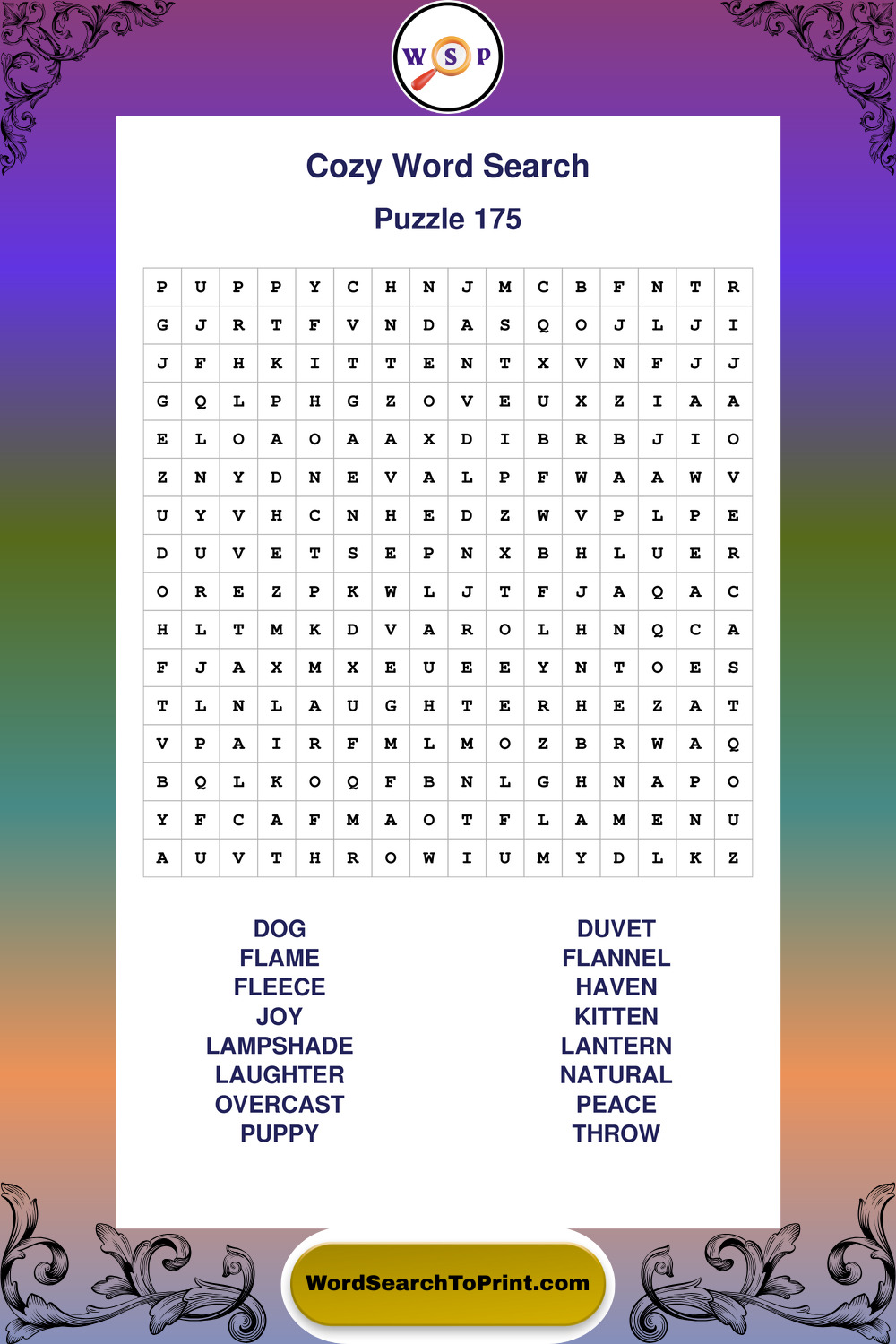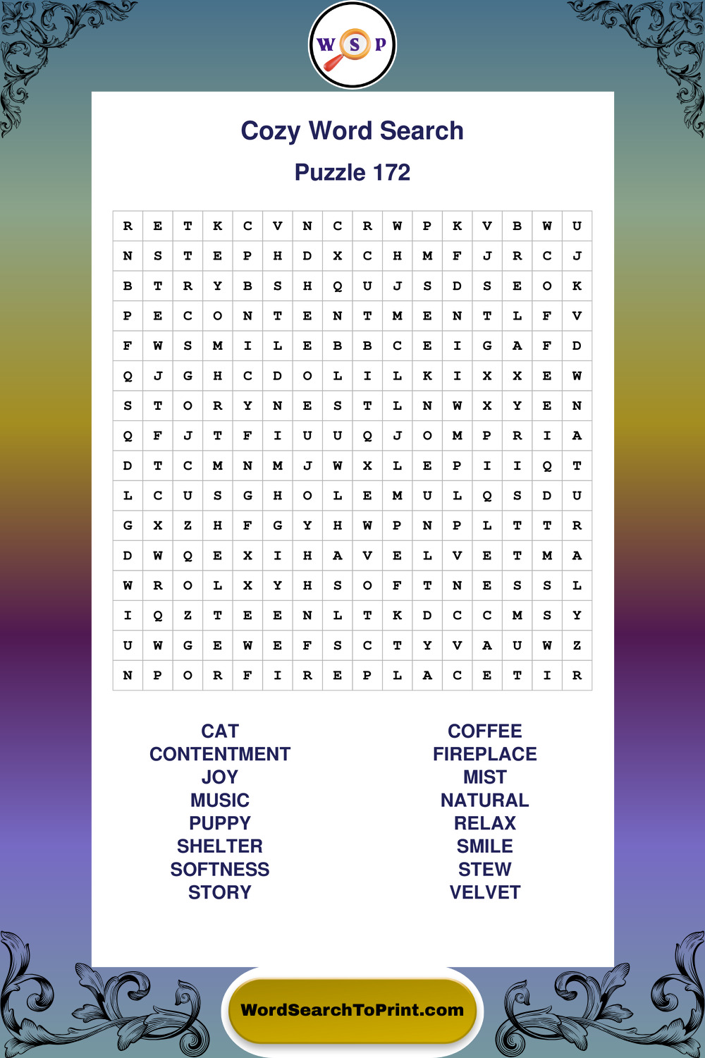Printable Cozy Wordsearch Puzzles