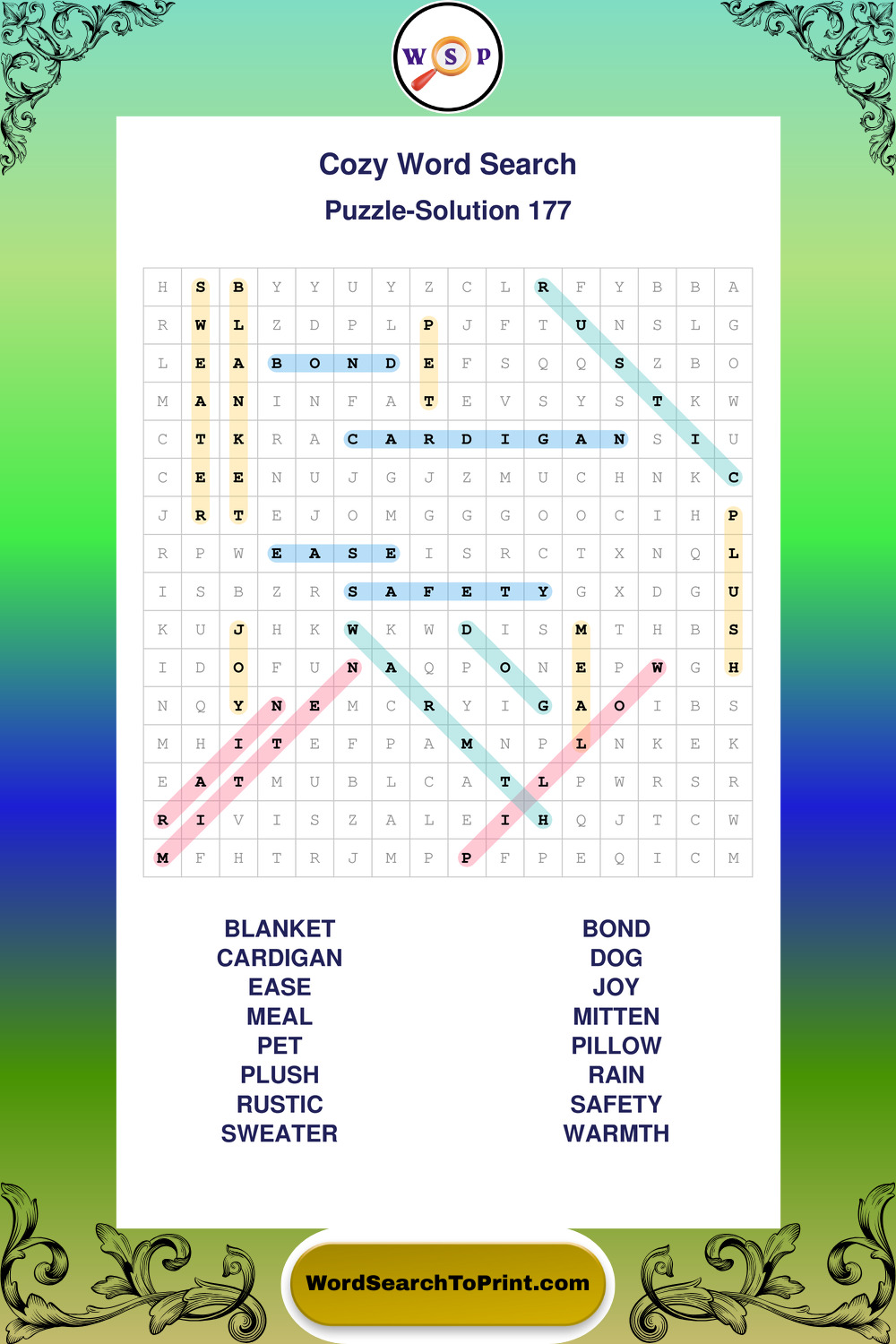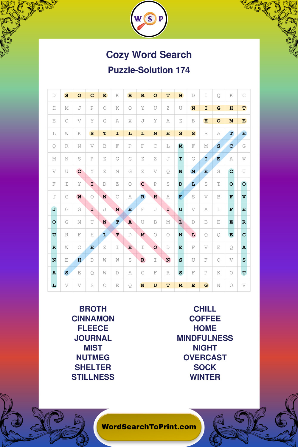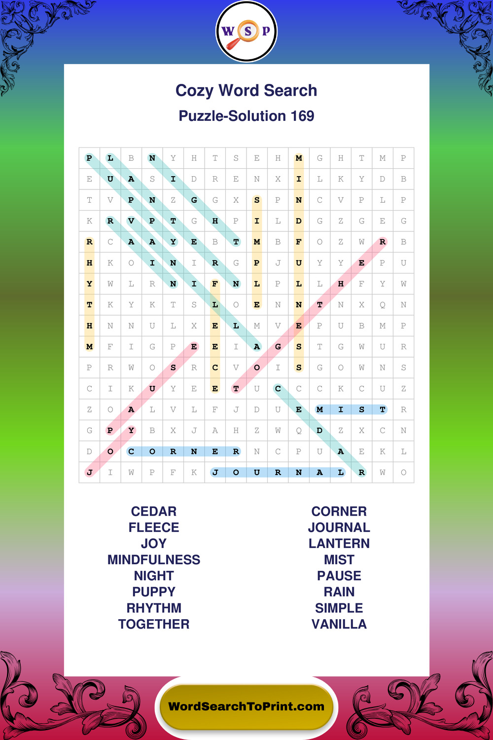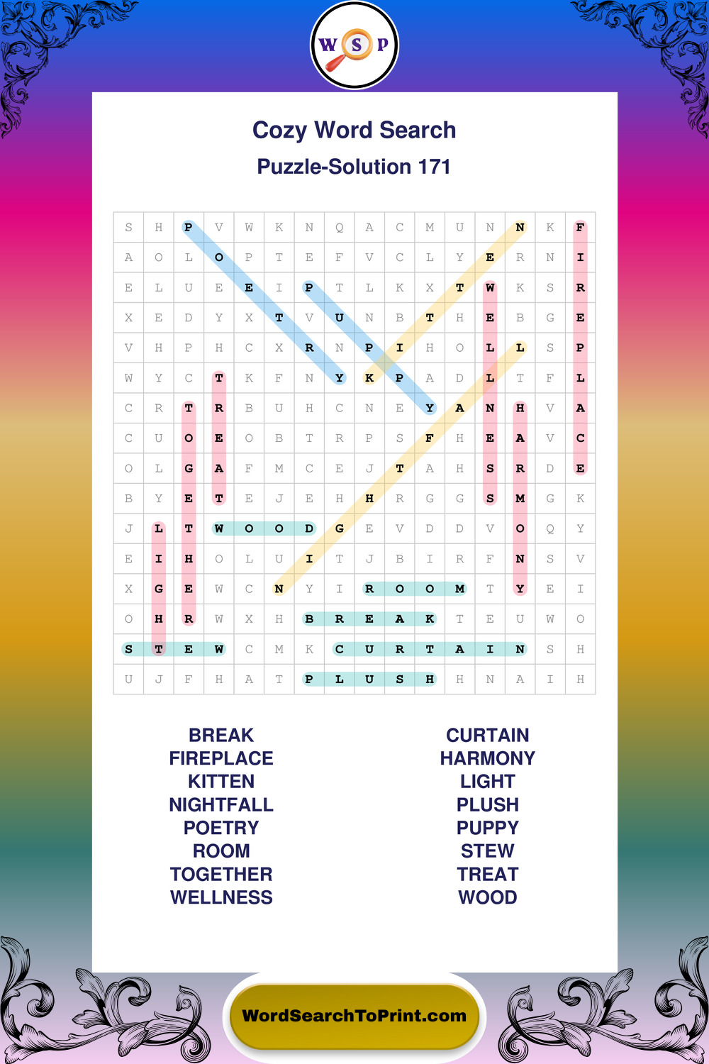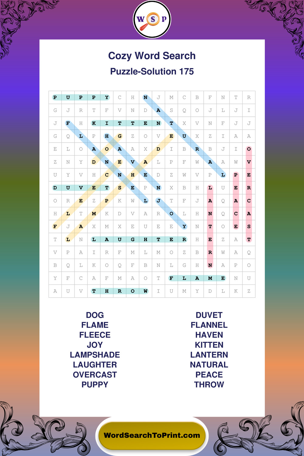 Printable Cozy Wordsearch Puzzles