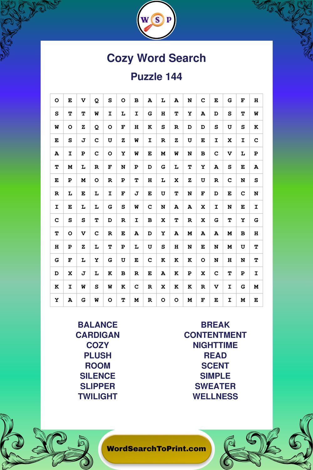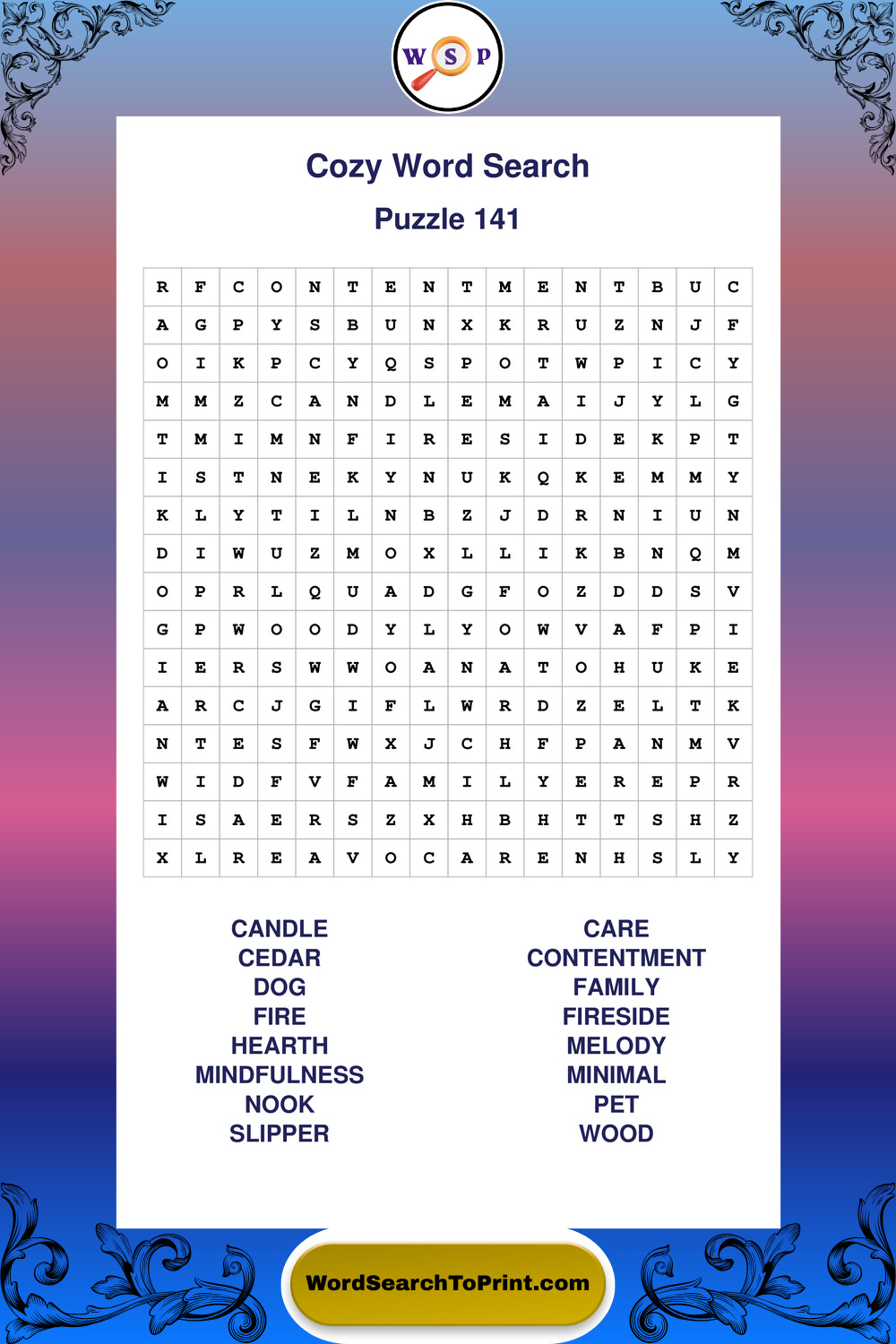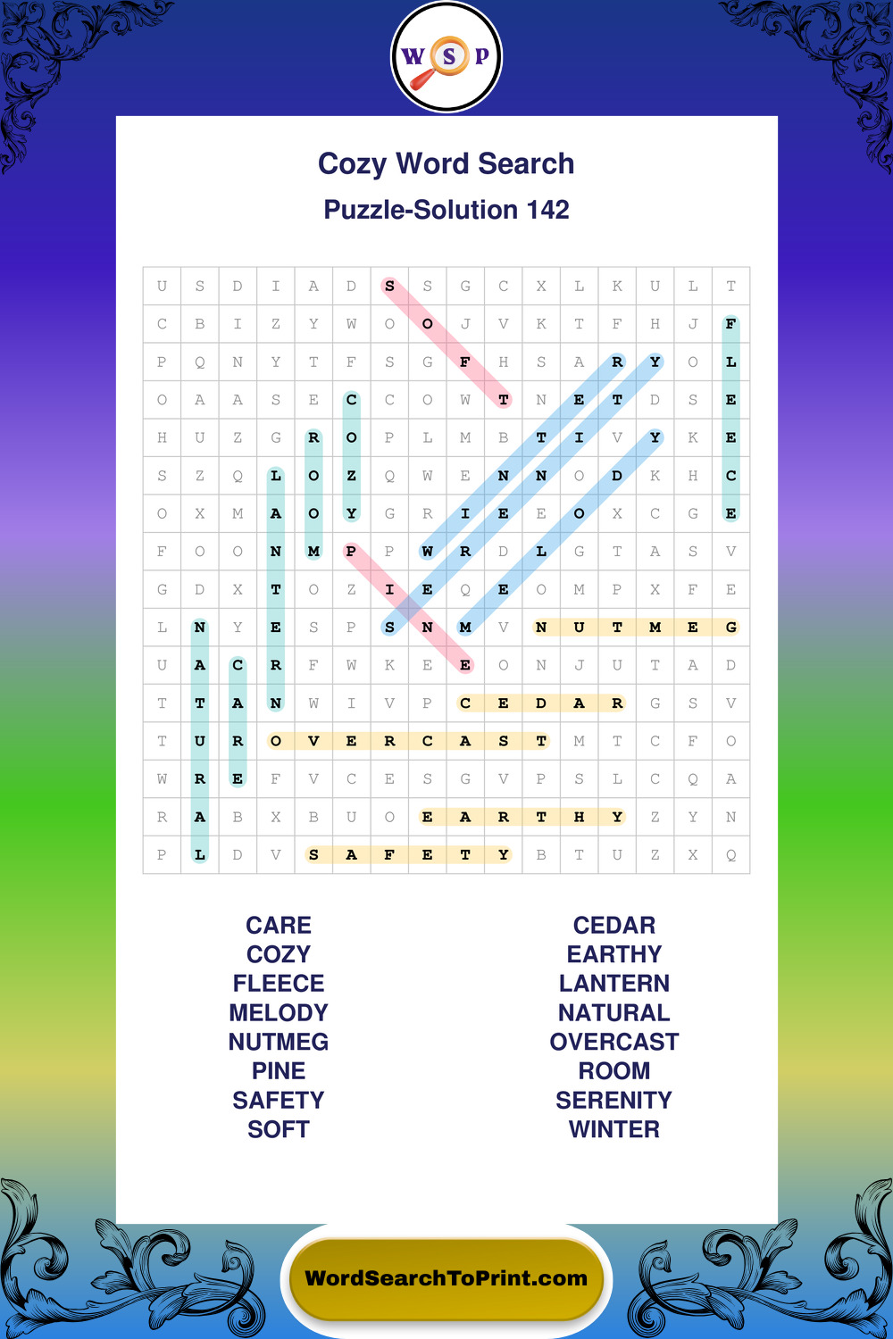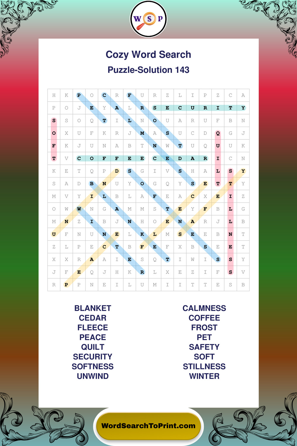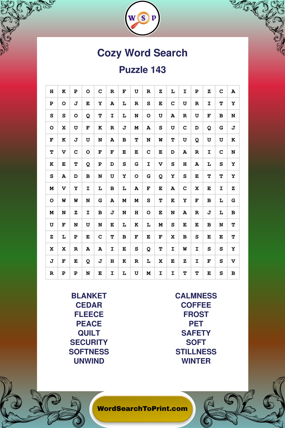 Printable Cozy Wordsearch Puzzles