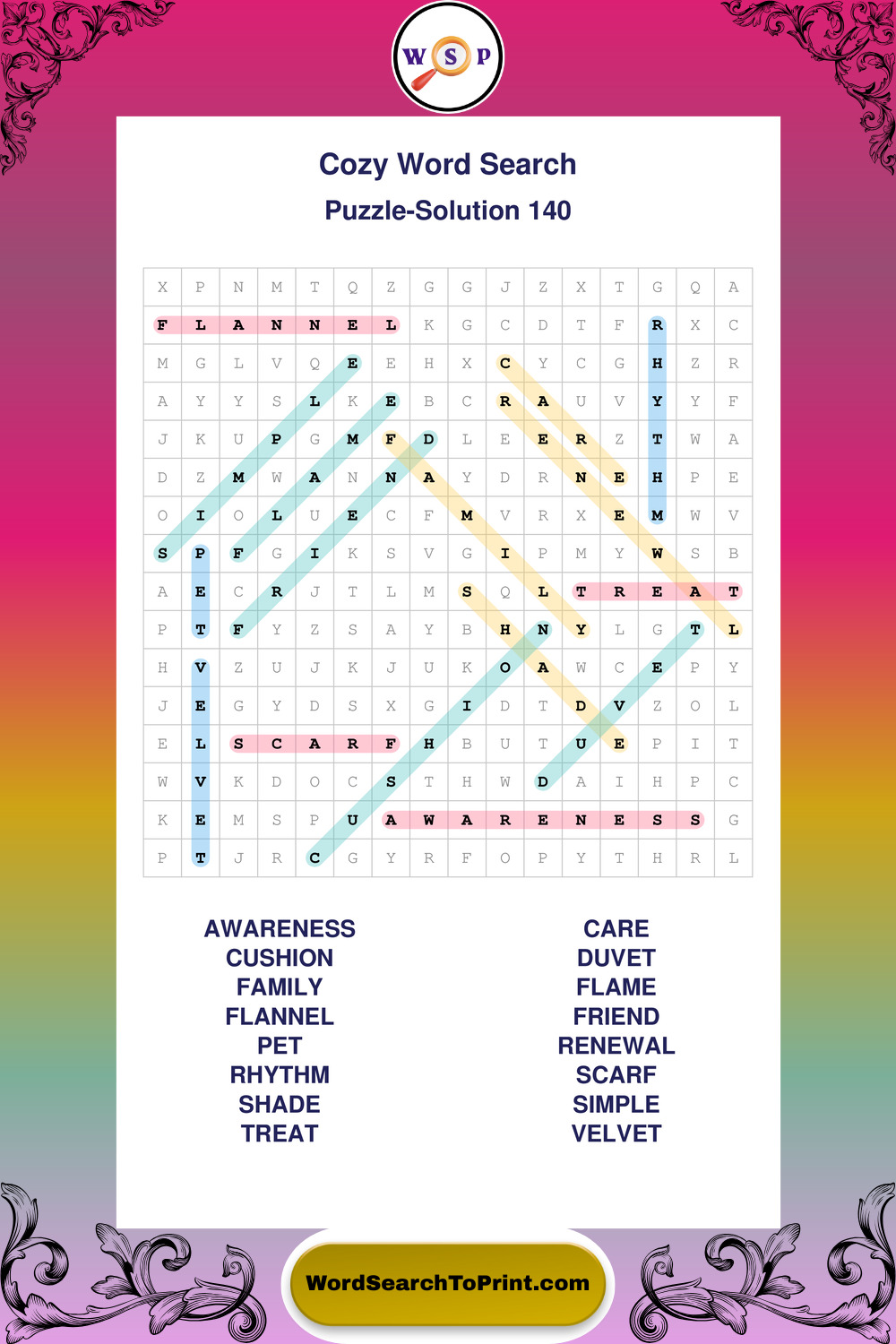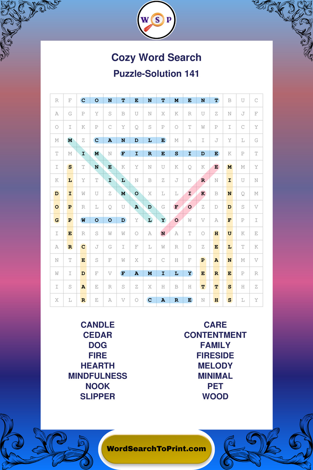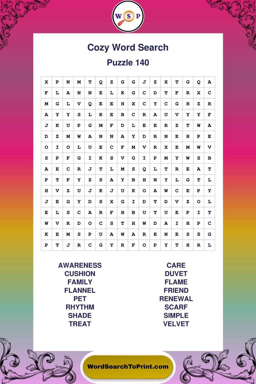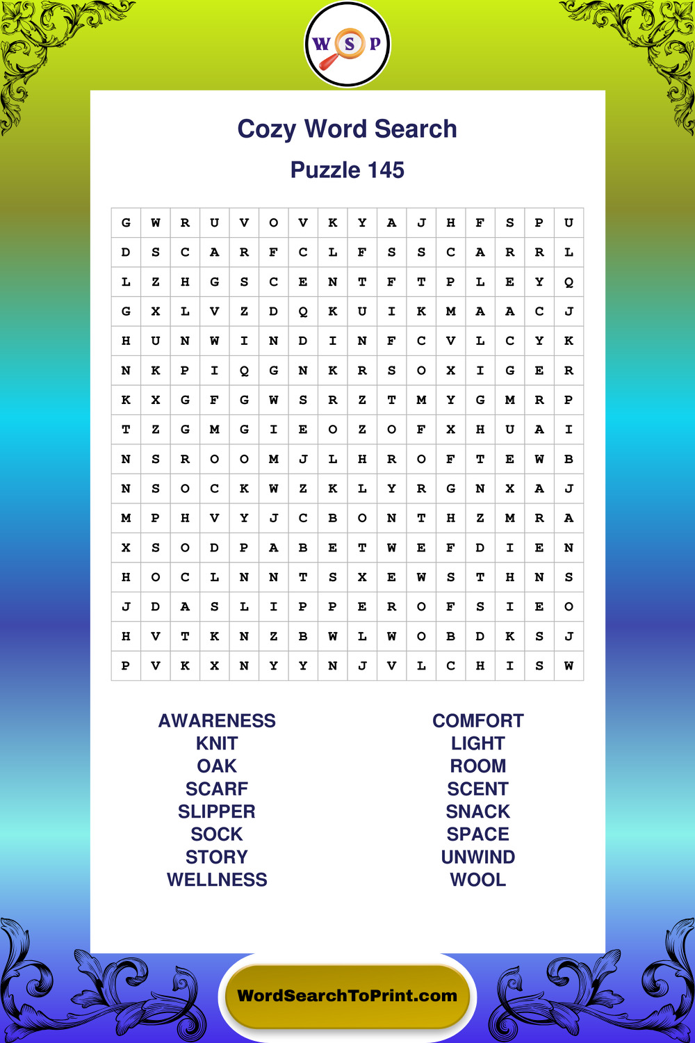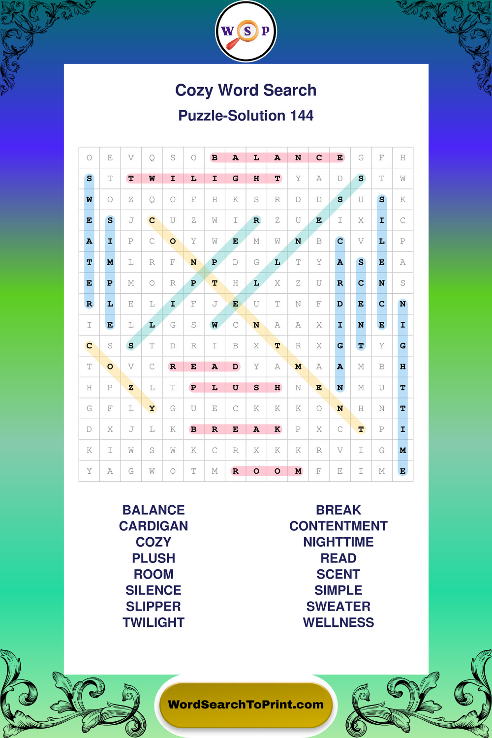 Printable Cozy Wordsearch Puzzles