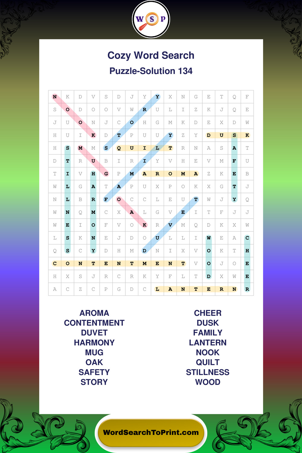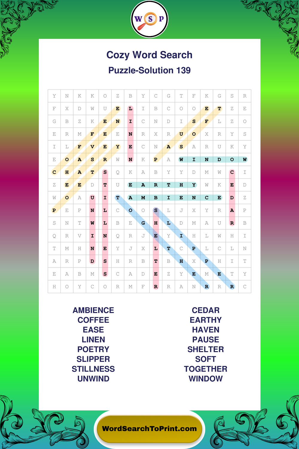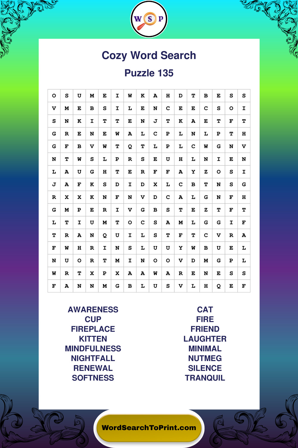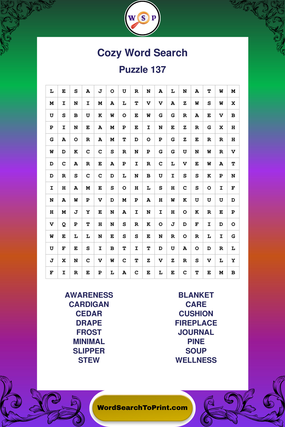 These printable large print Cozy wordsearches offer a calm and accessible puzzle experience for all skill levels.