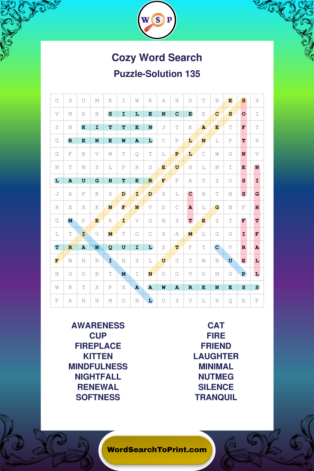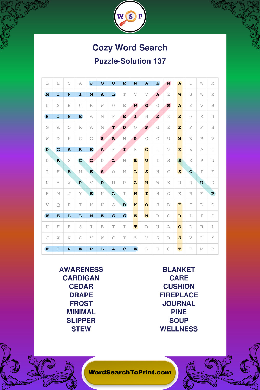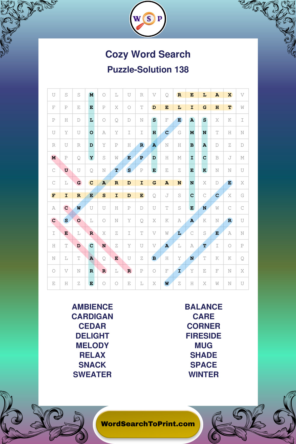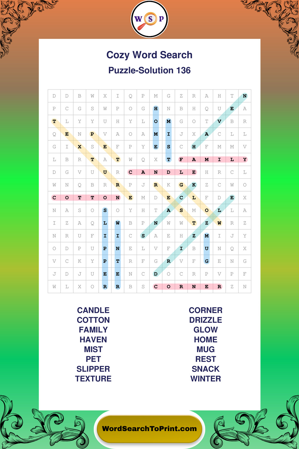 These printable large print Cozy wordsearches offer a calm and accessible puzzle experience for all skill levels.