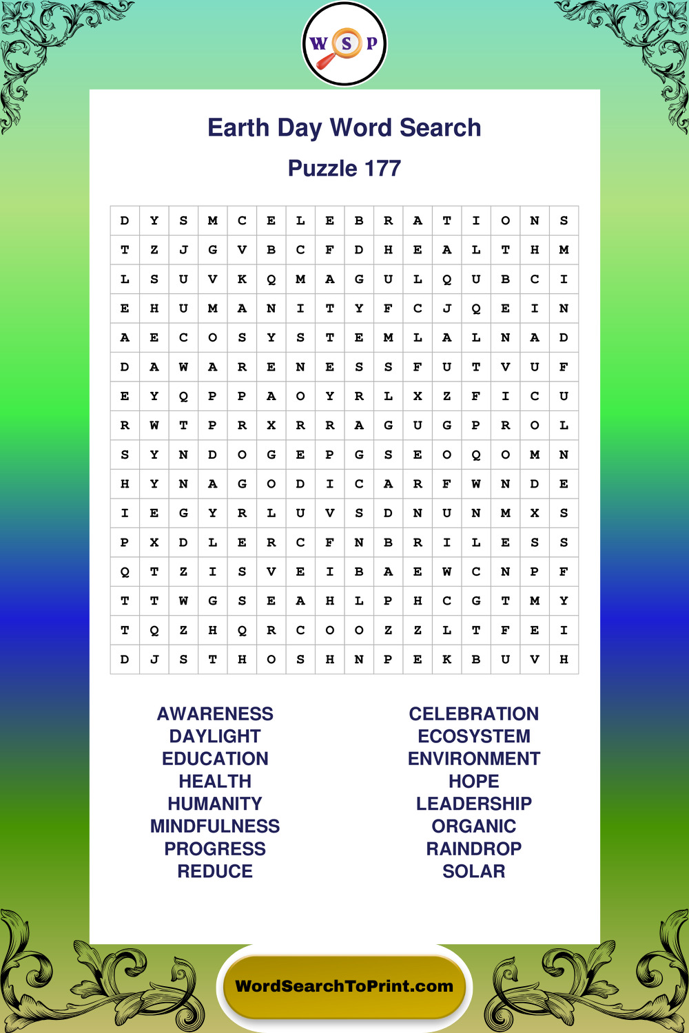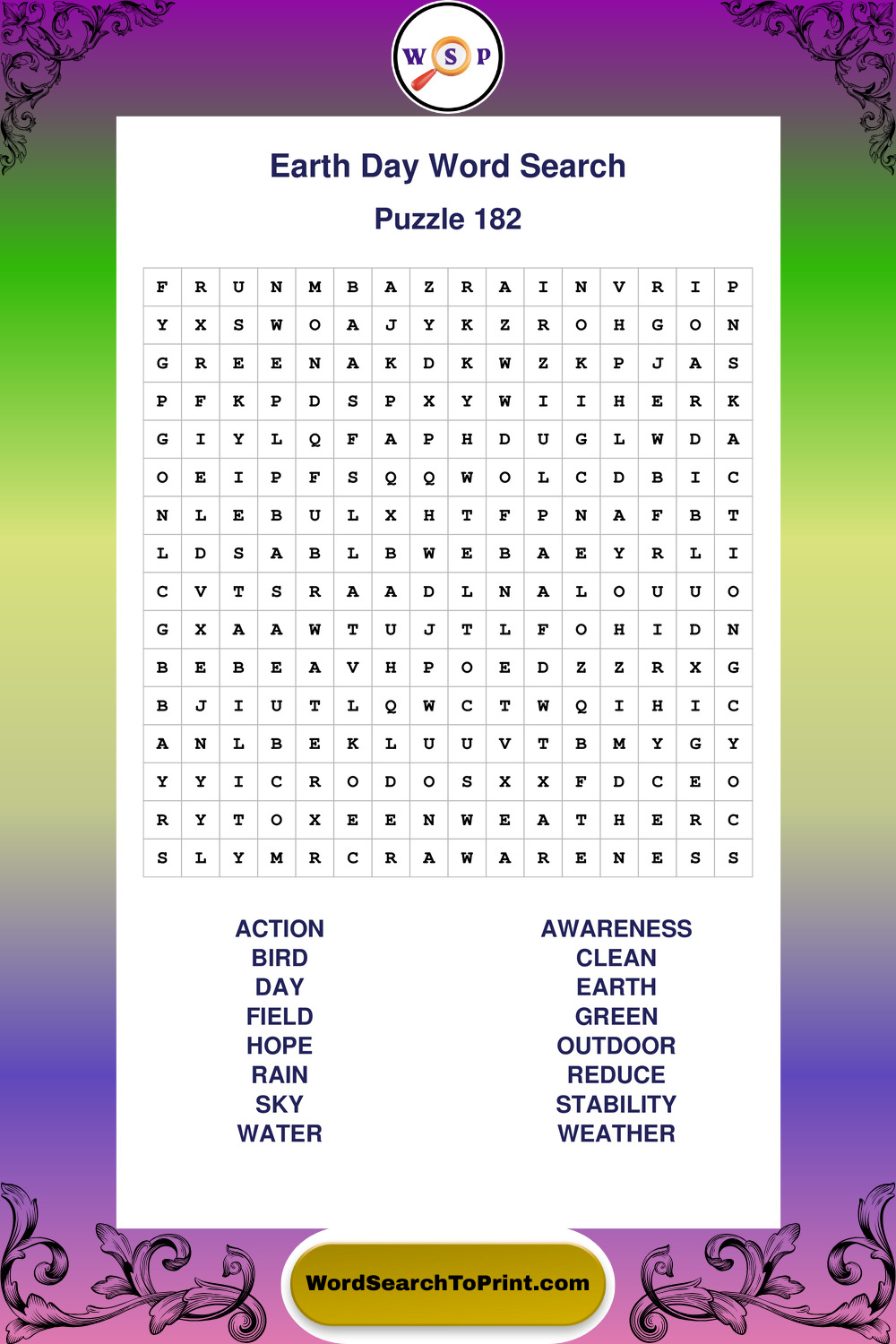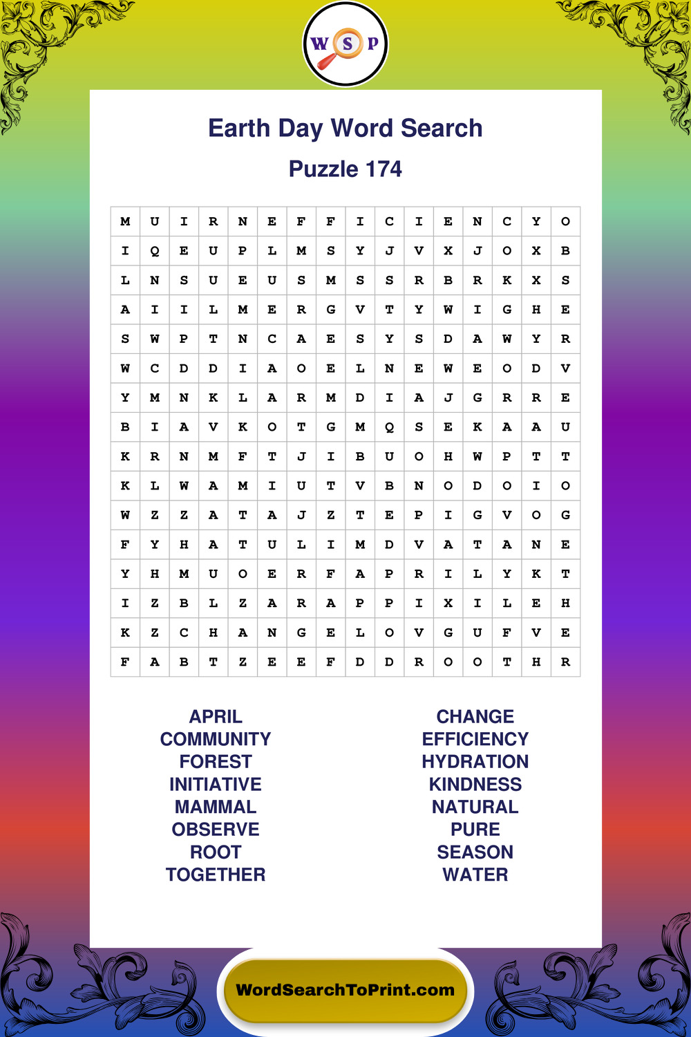 A relaxing collection of large print Earth Day wordsearches designed for comfortable solving and steady focus.