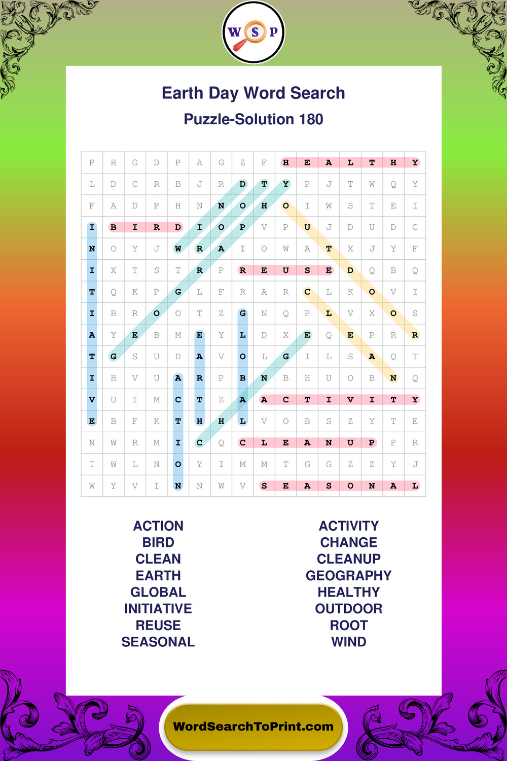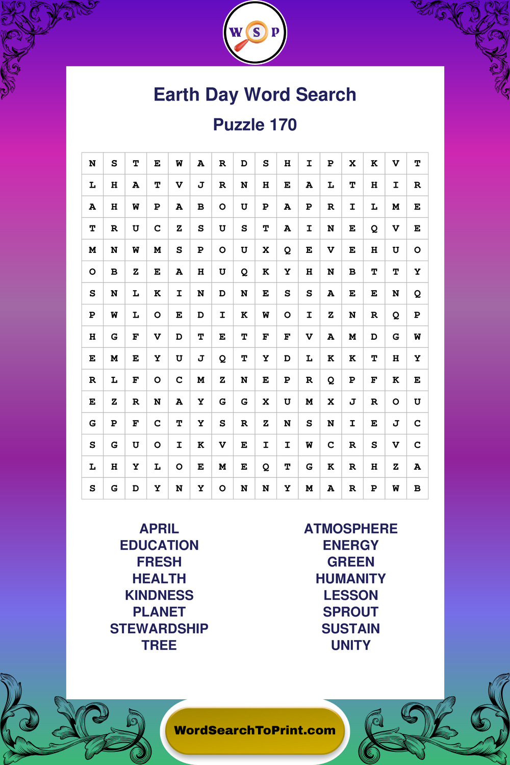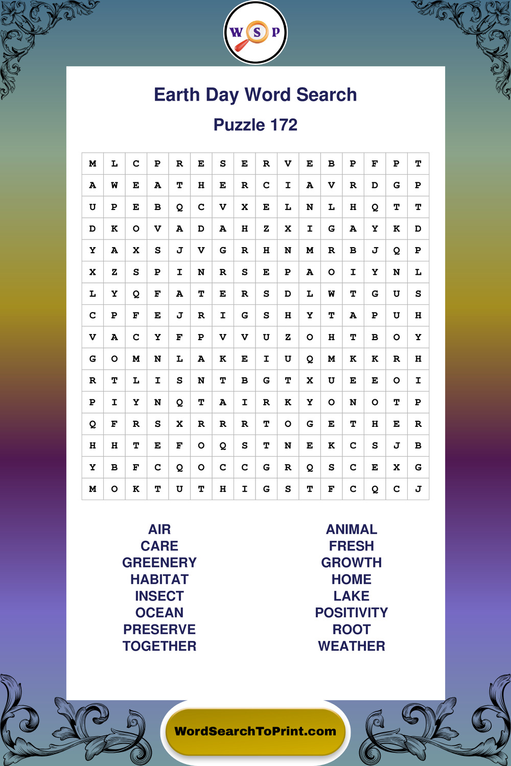 A relaxing collection of large print Earth Day wordsearches designed for comfortable solving and steady focus.