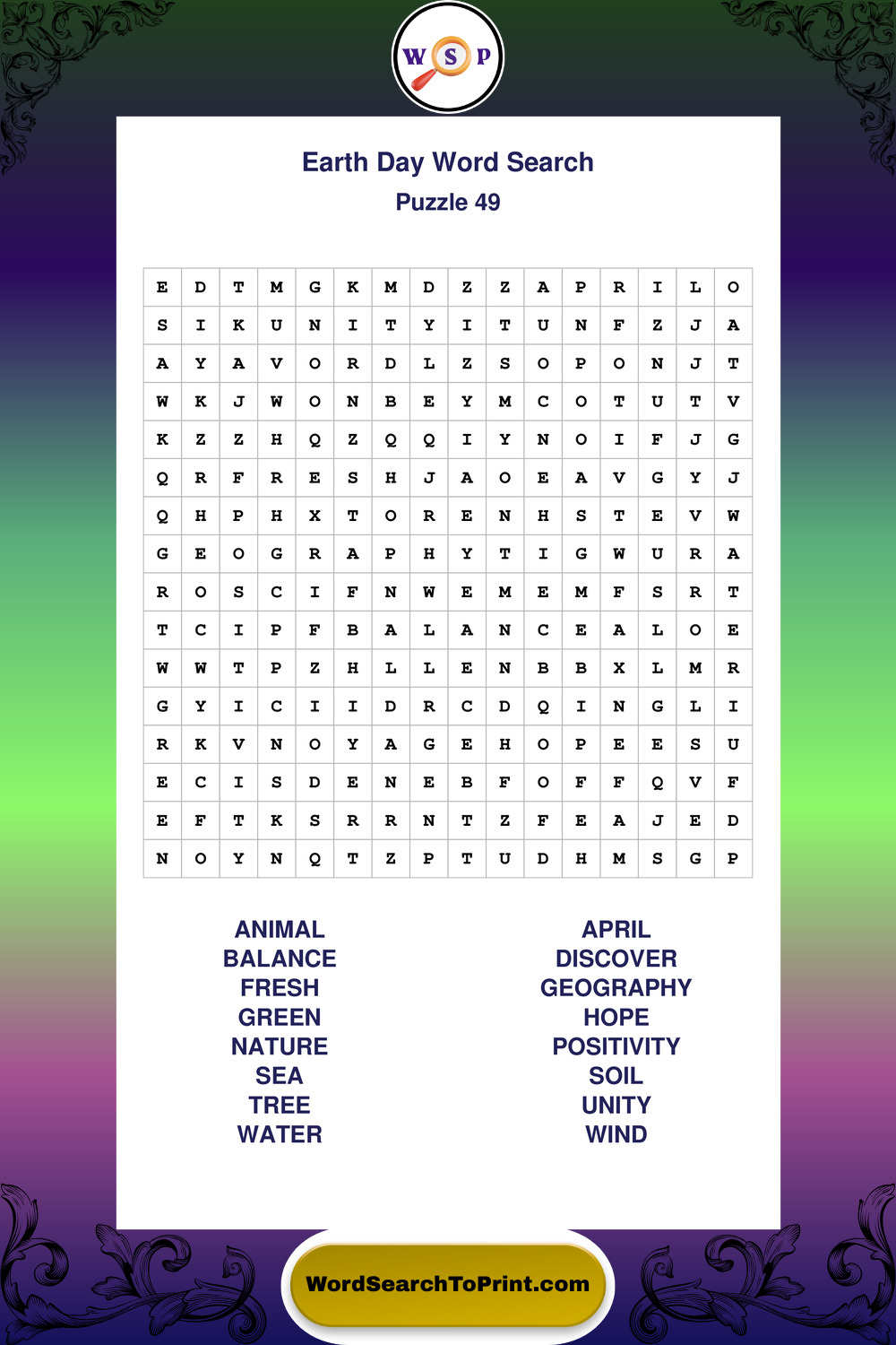 A relaxing collection of large print Earth Day wordsearches designed for comfortable solving and steady focus.