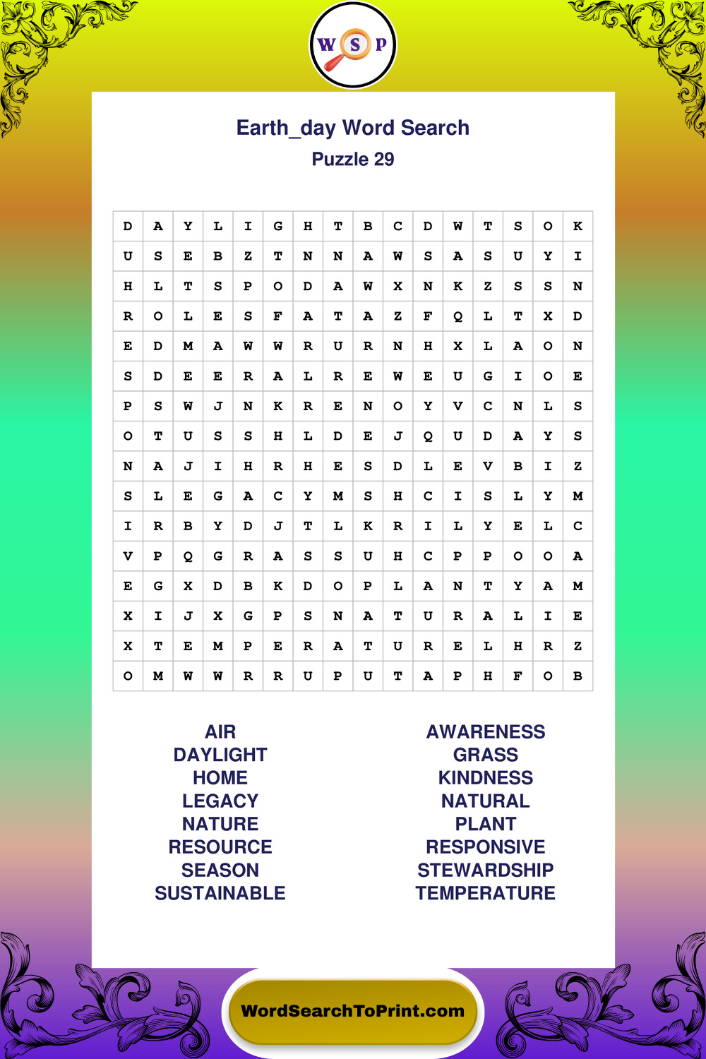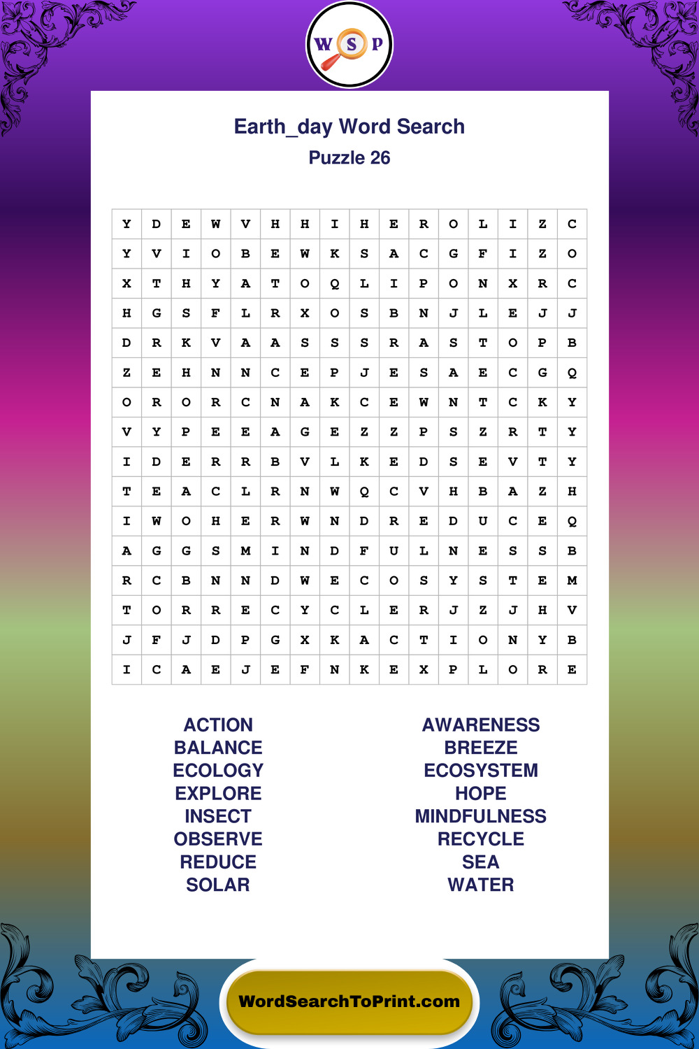A relaxing collection of large print Earth Day wordsearches designed for comfortable solving and steady focus.