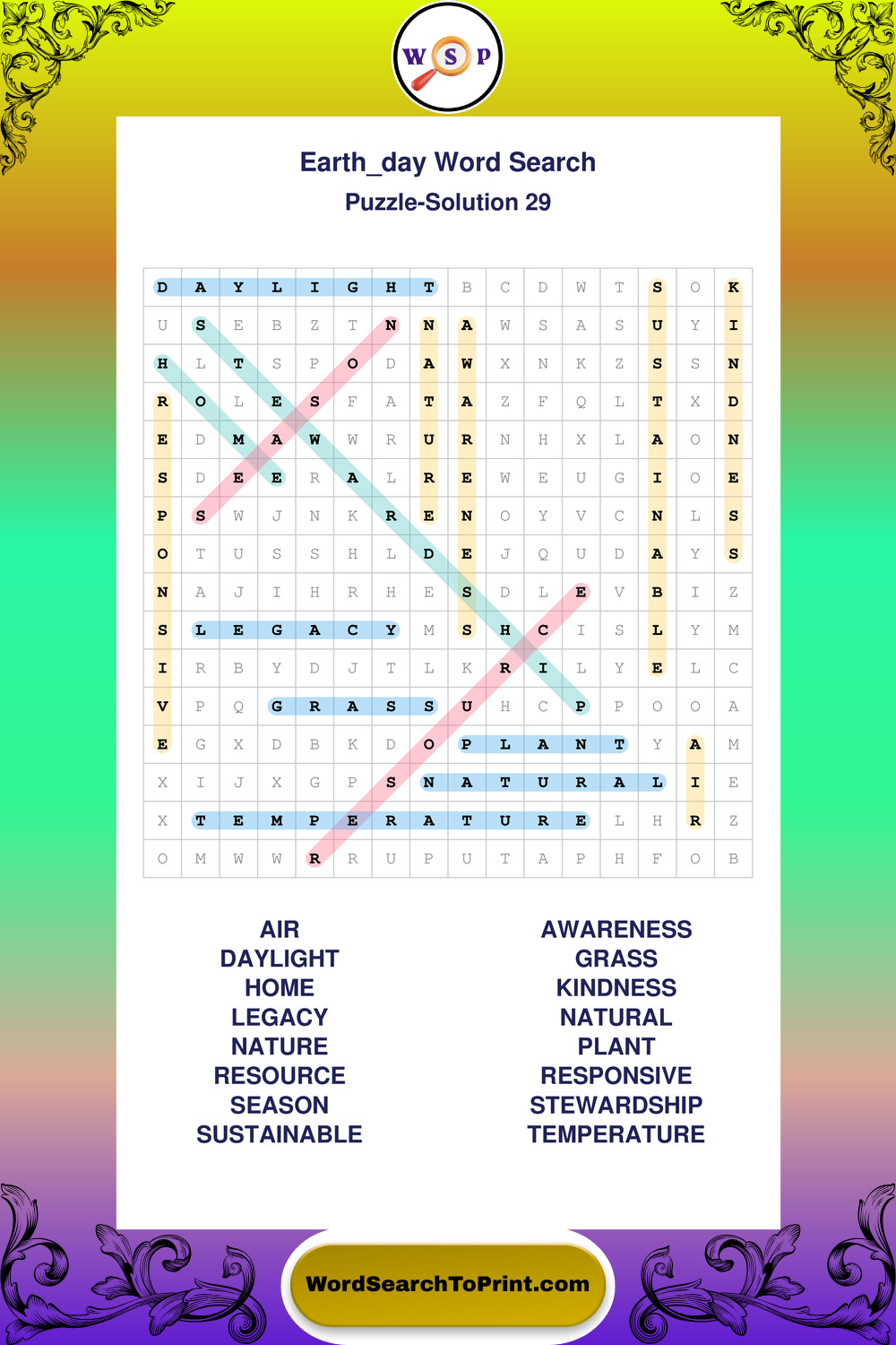 Printable Earth Day Wordsearch Puzzles