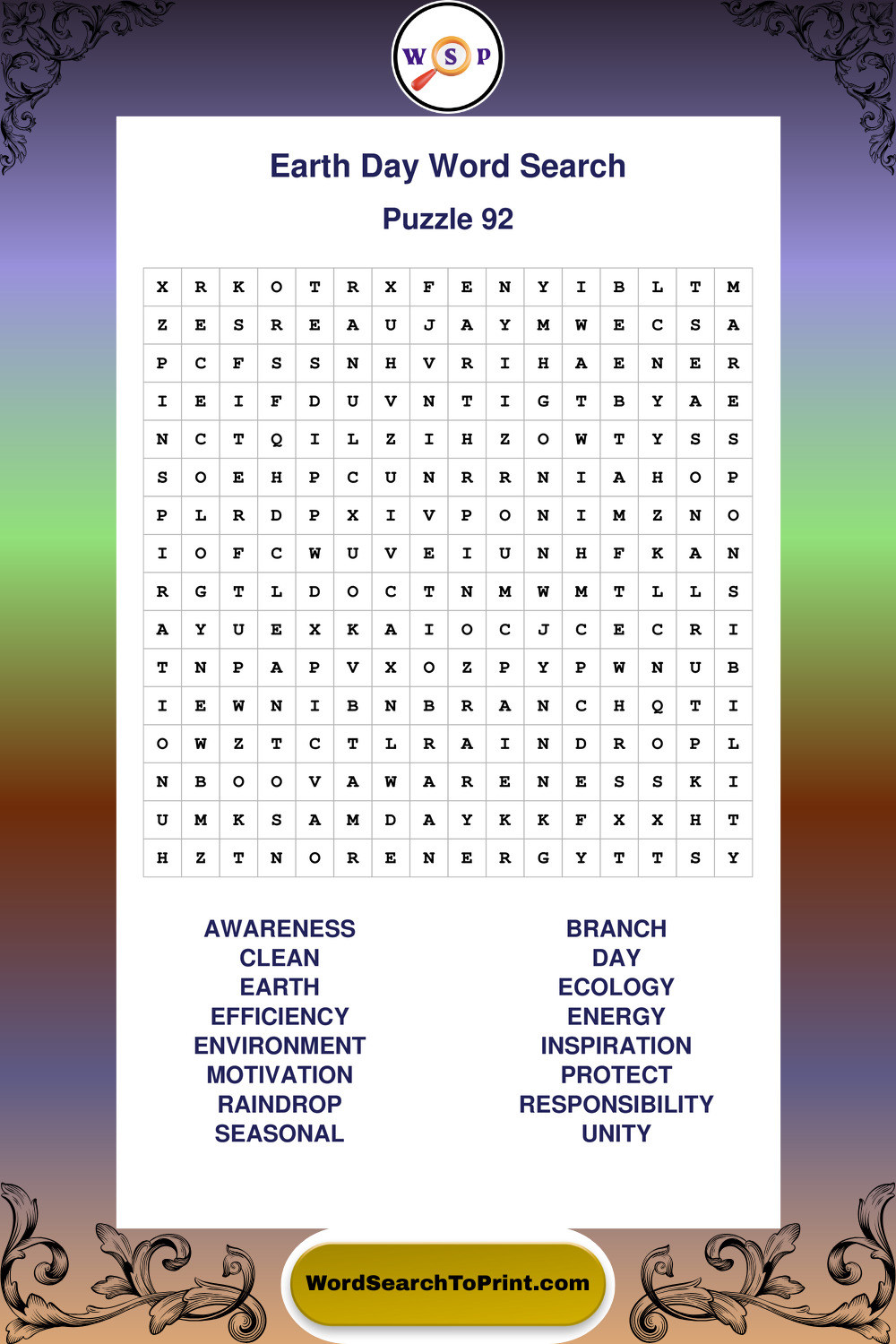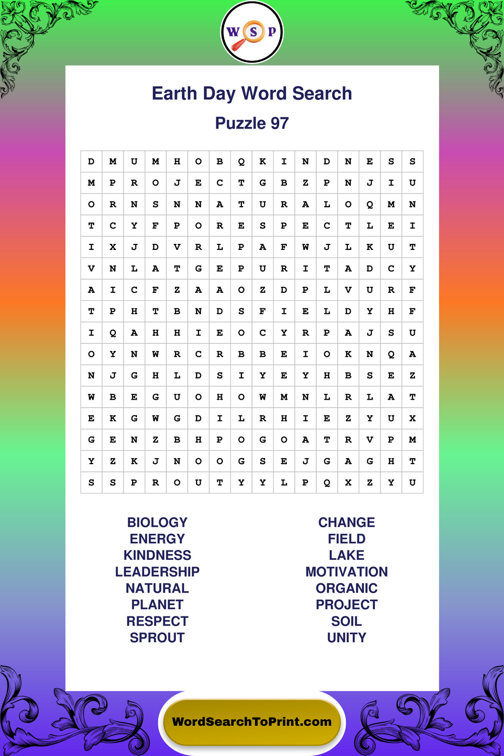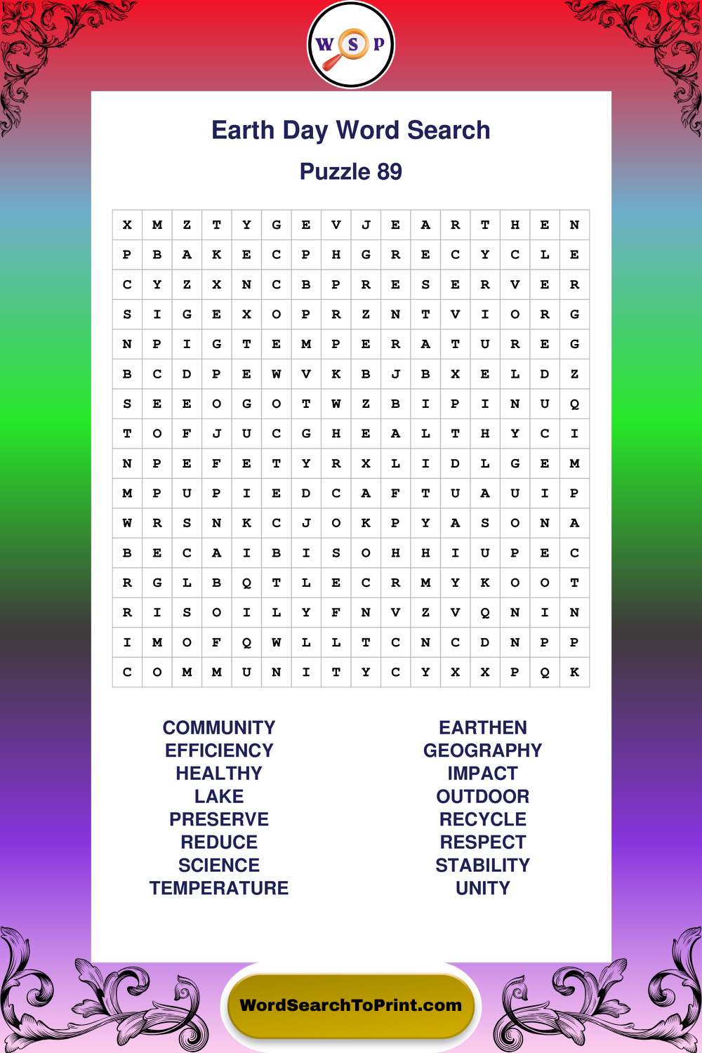 A relaxing collection of large print Earth Day wordsearches designed for comfortable solving and steady focus.