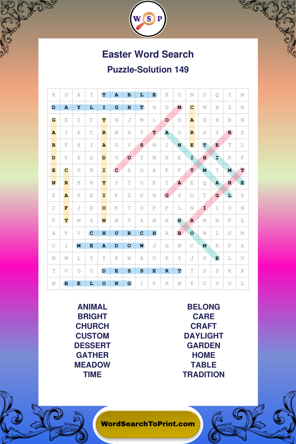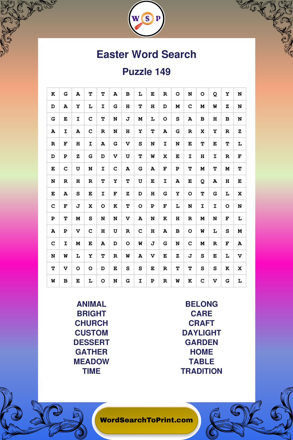 A relaxing collection of large print Easter wordsearches designed for comfortable solving and steady focus.
