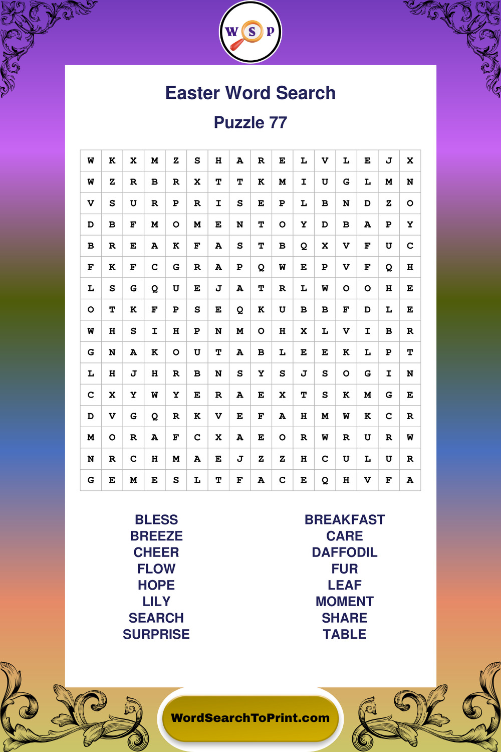 A relaxing collection of large print Easter wordsearches designed for comfortable solving and steady focus.