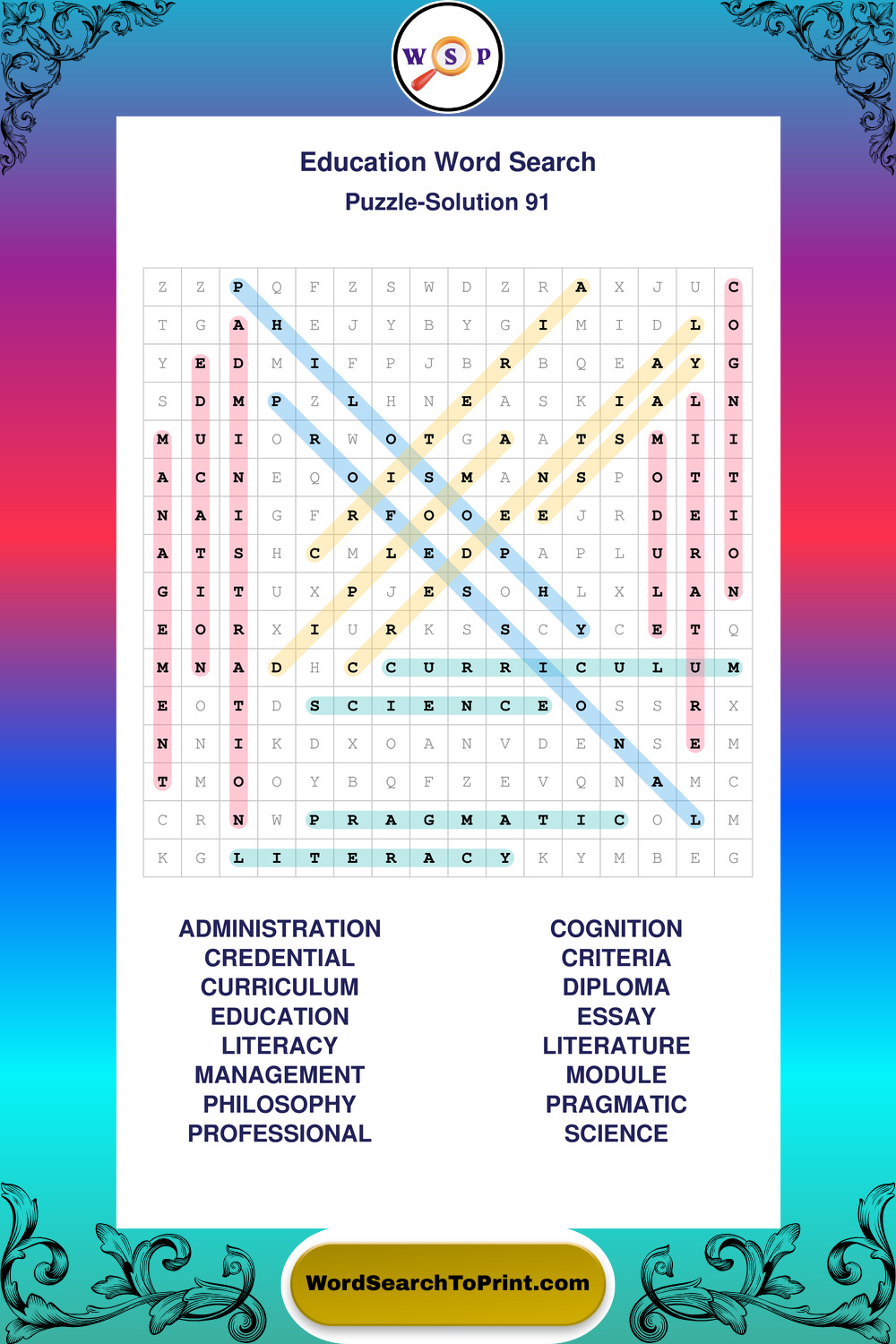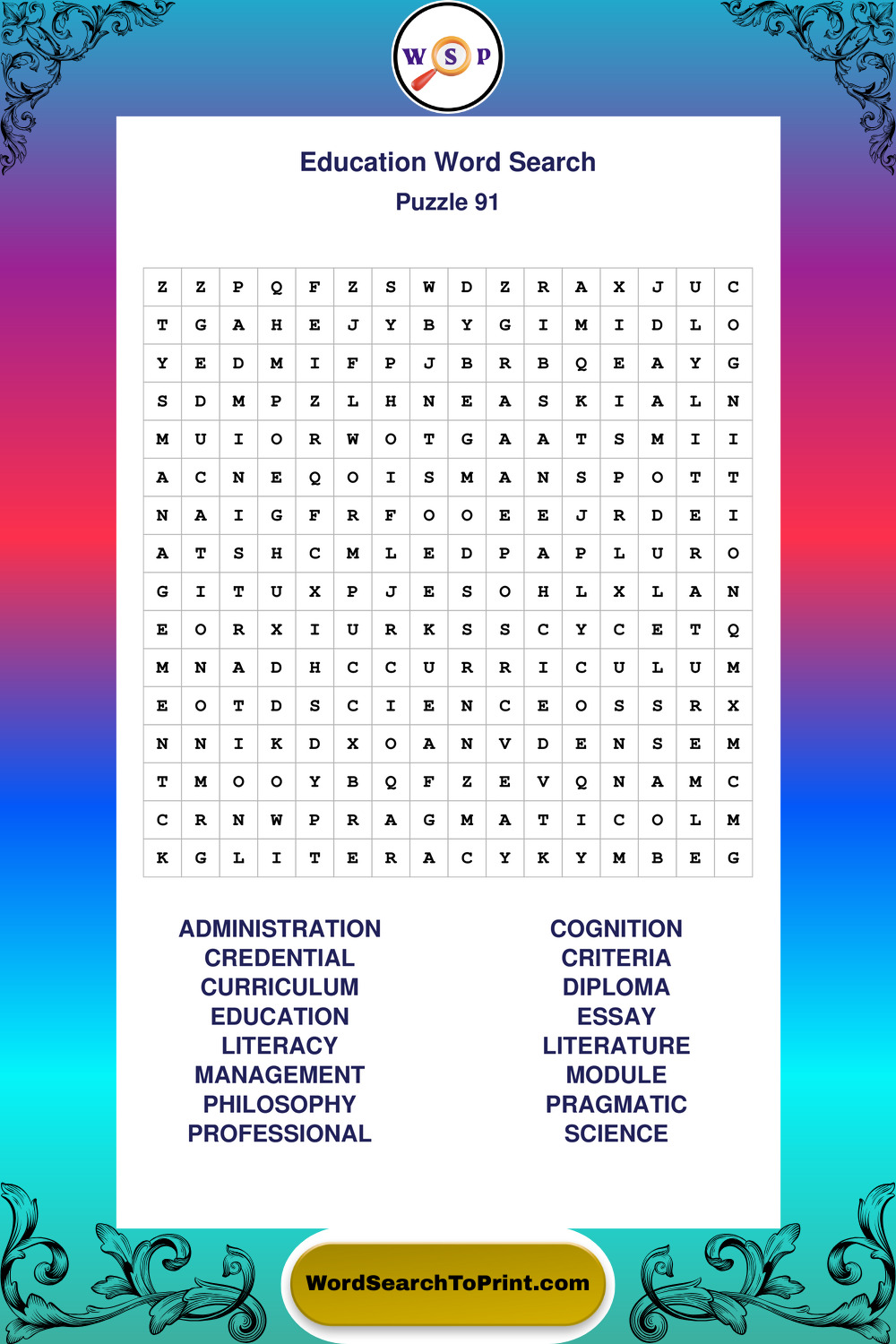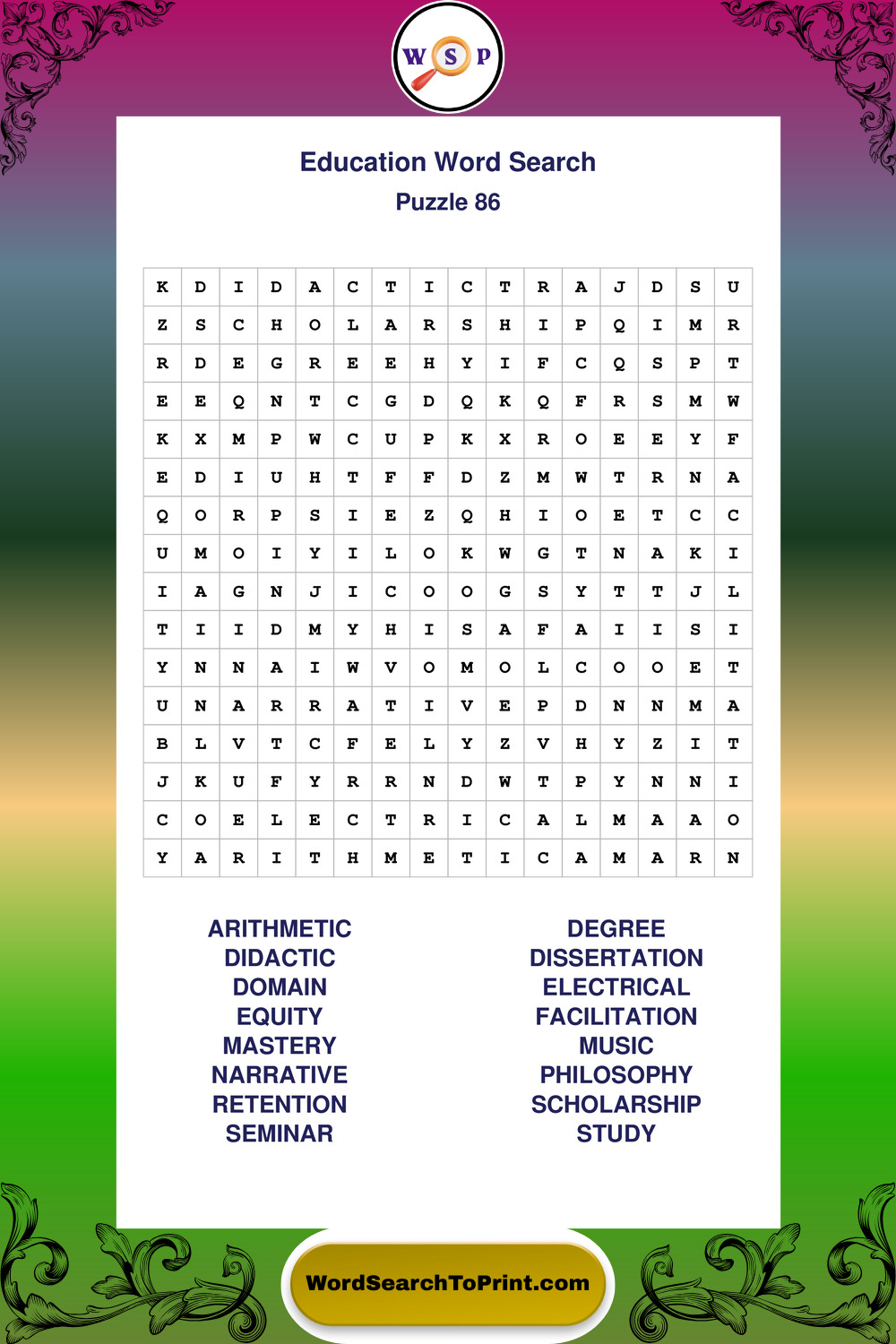 Printable Education Wordsearch Puzzles