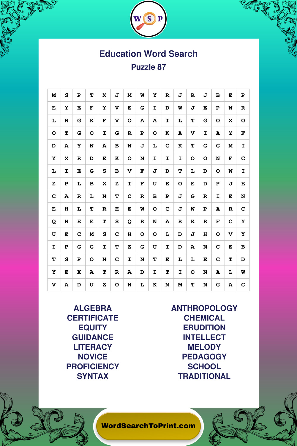 • Educators incorporating word search activities