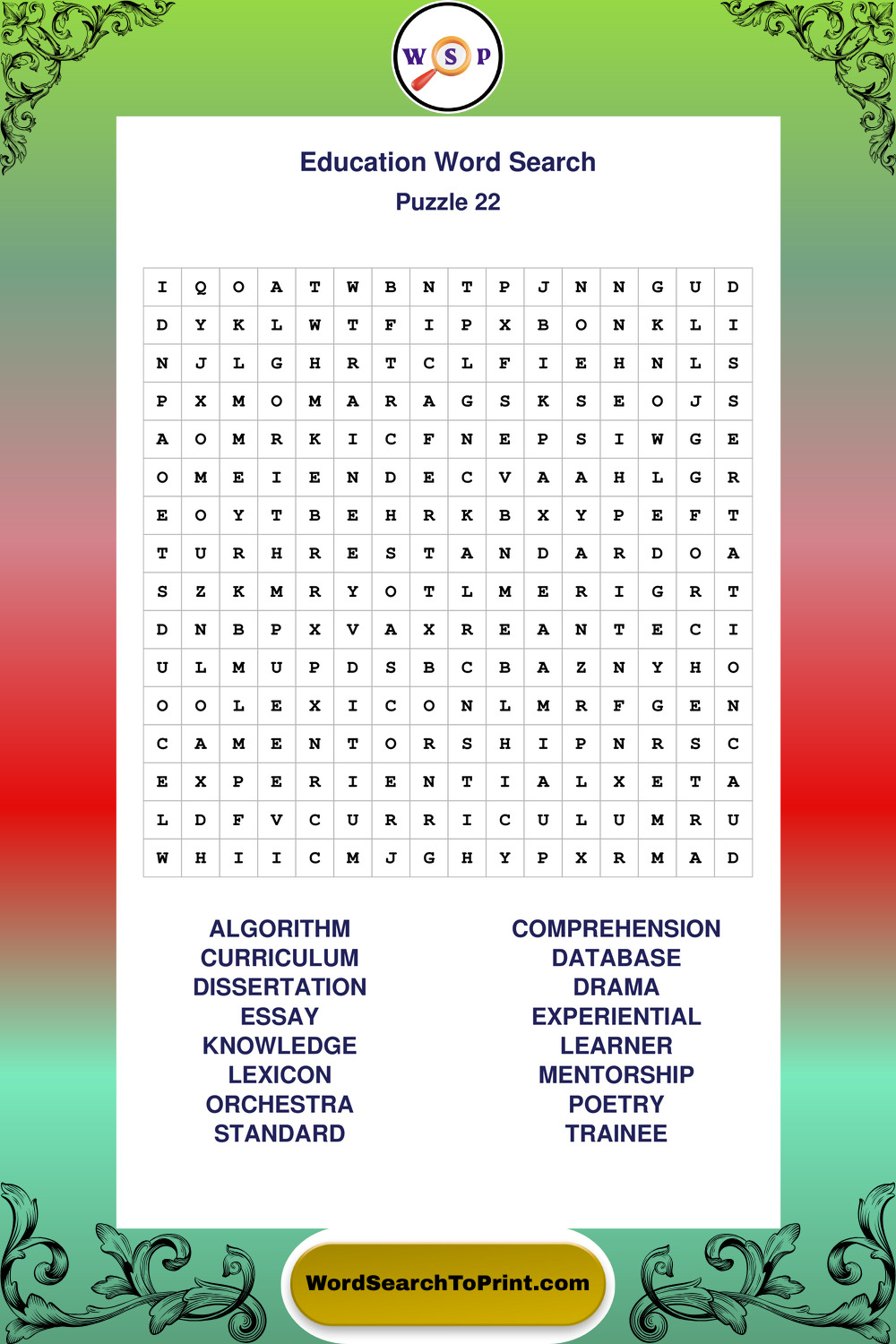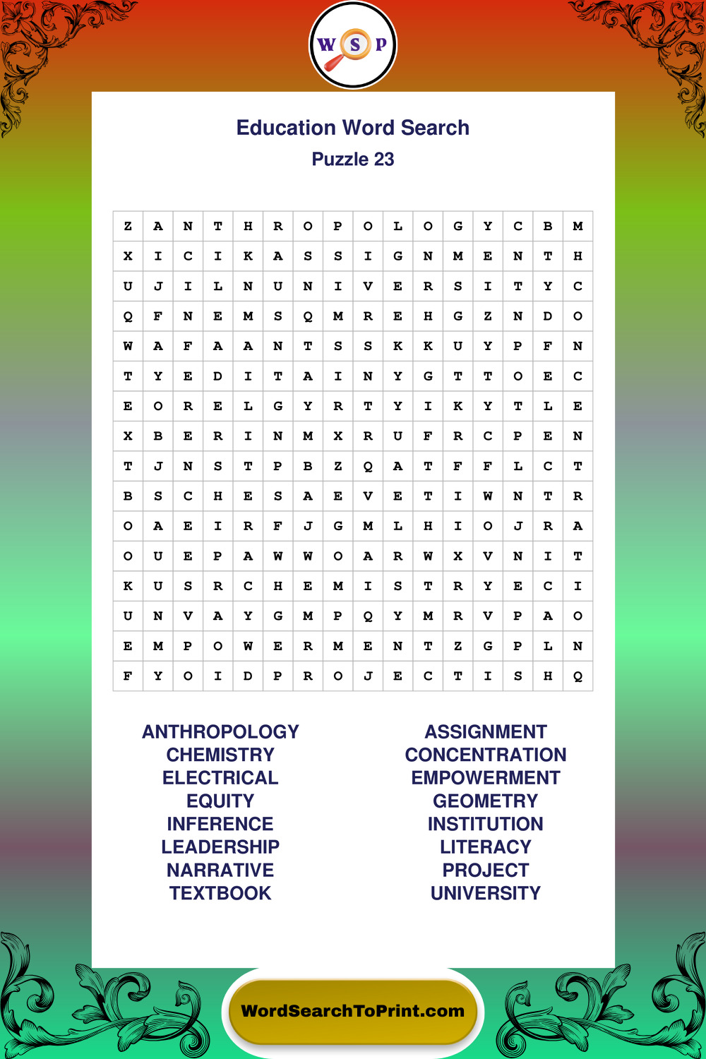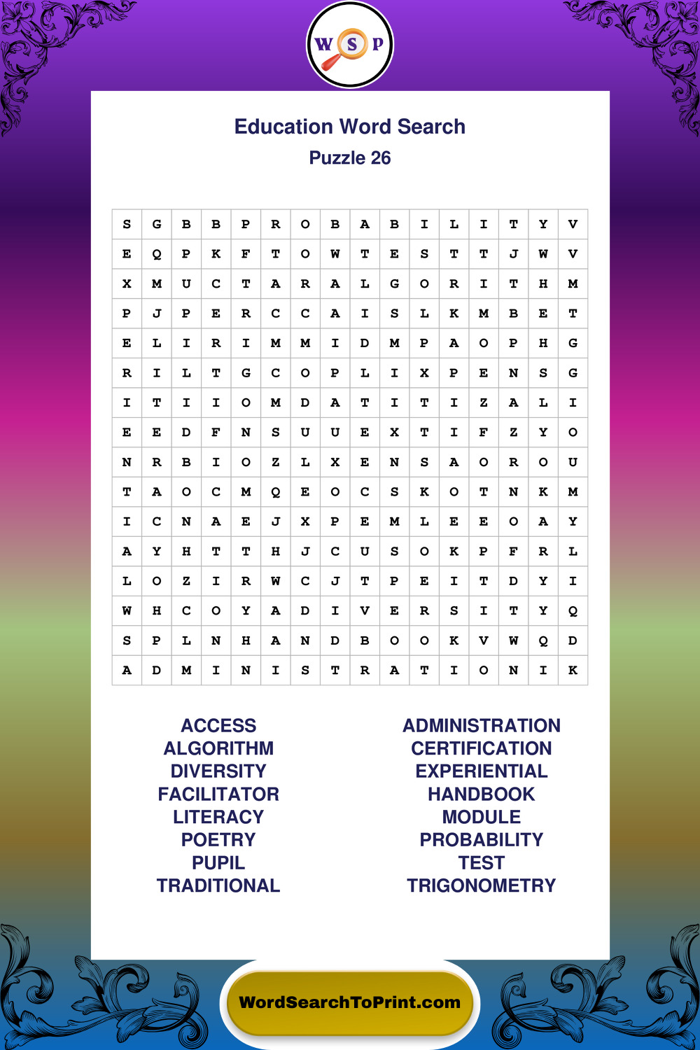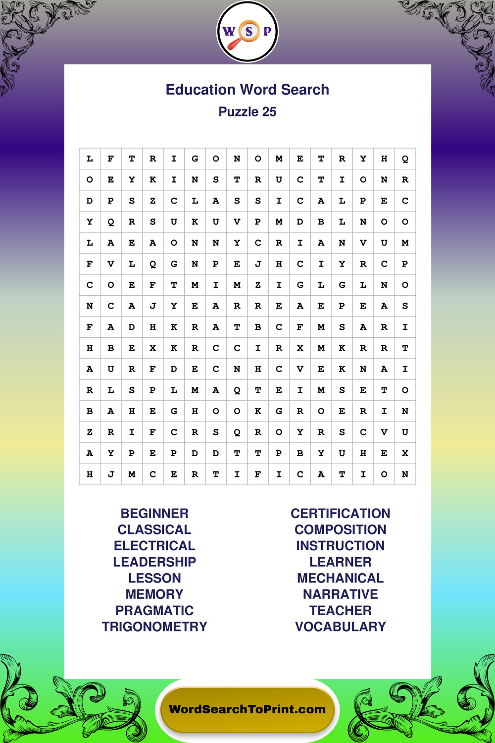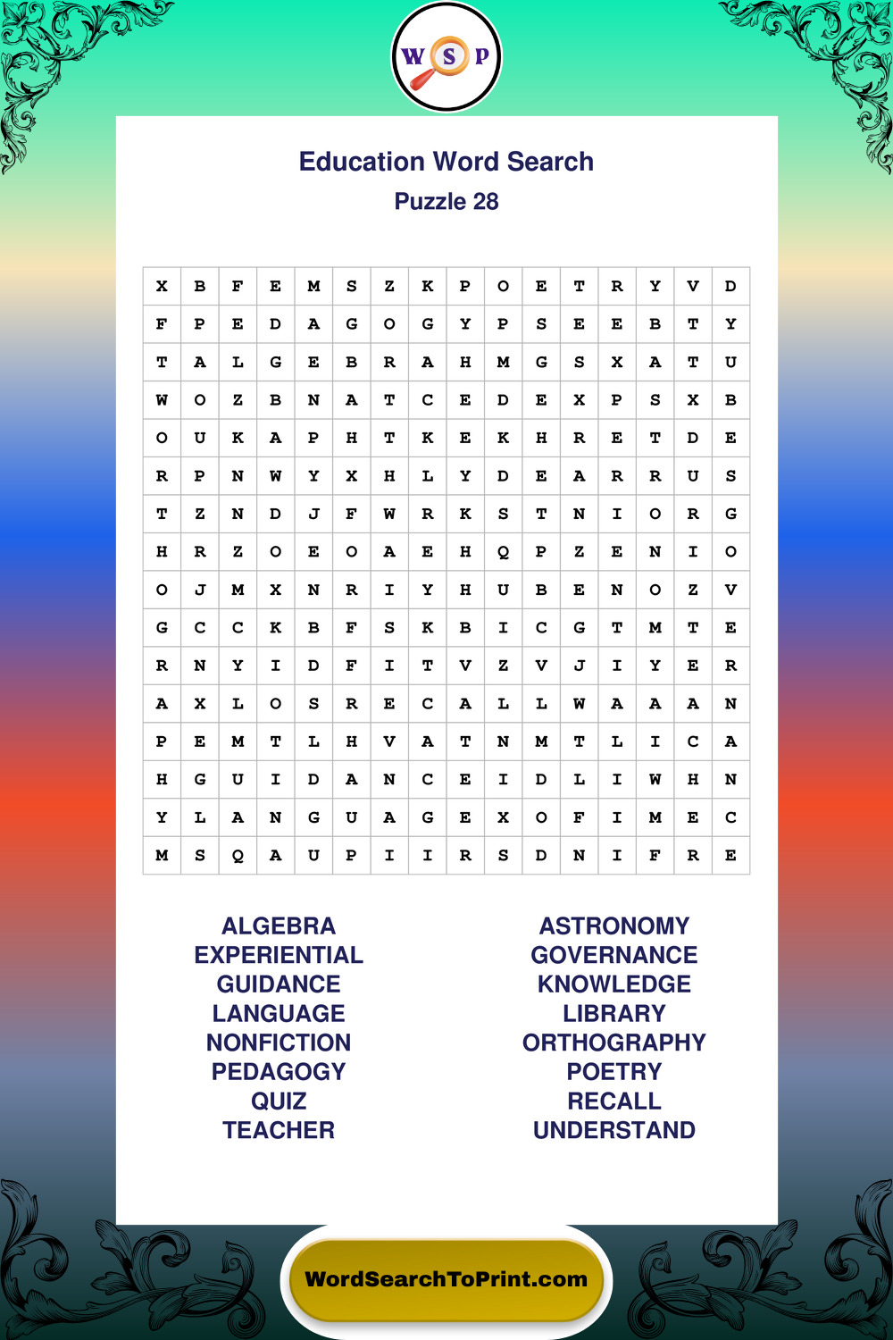 These large print Education wordsearches are perfect for home, school, senior centers, or quiet personal time.