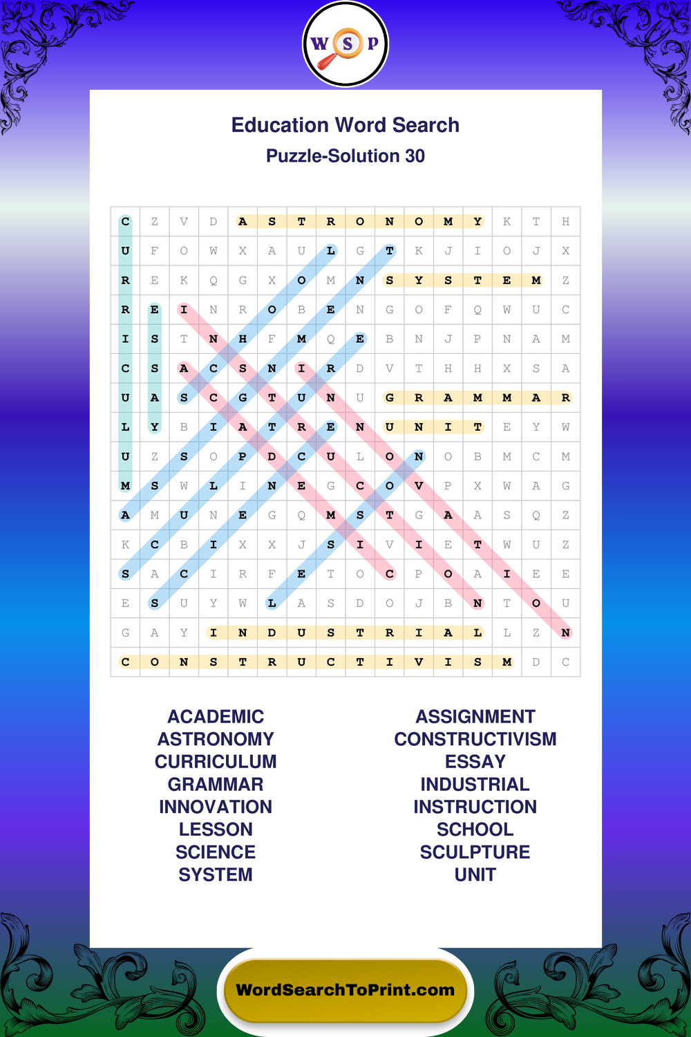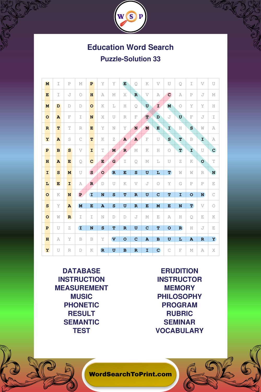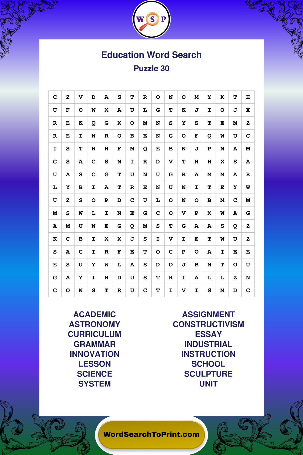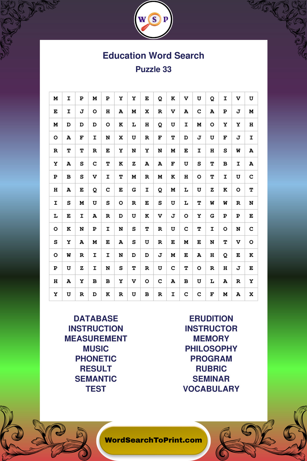 These puzzles reinforce educational themes, general knowledge, hobbies, music, science, and skill-building vocabulary. They provide a relaxing and effective way to connect with this subject while supporting memory and language skills. You may also enjoy our Science word search puzzles and Sports word search puzzles.