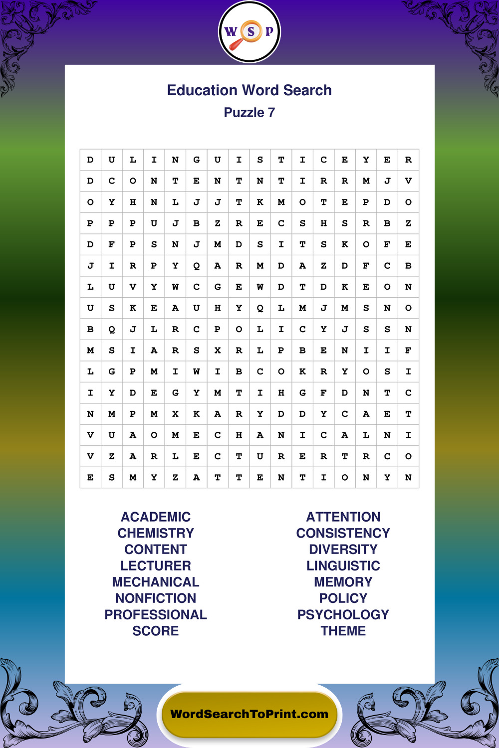 These puzzles reinforce educational themes, general knowledge, hobbies, music, science, and skill-building vocabulary. They provide a relaxing and effective way to connect with this subject while supporting memory and language skills. You may also enjoy our Science word search puzzles and Sports word search puzzles.