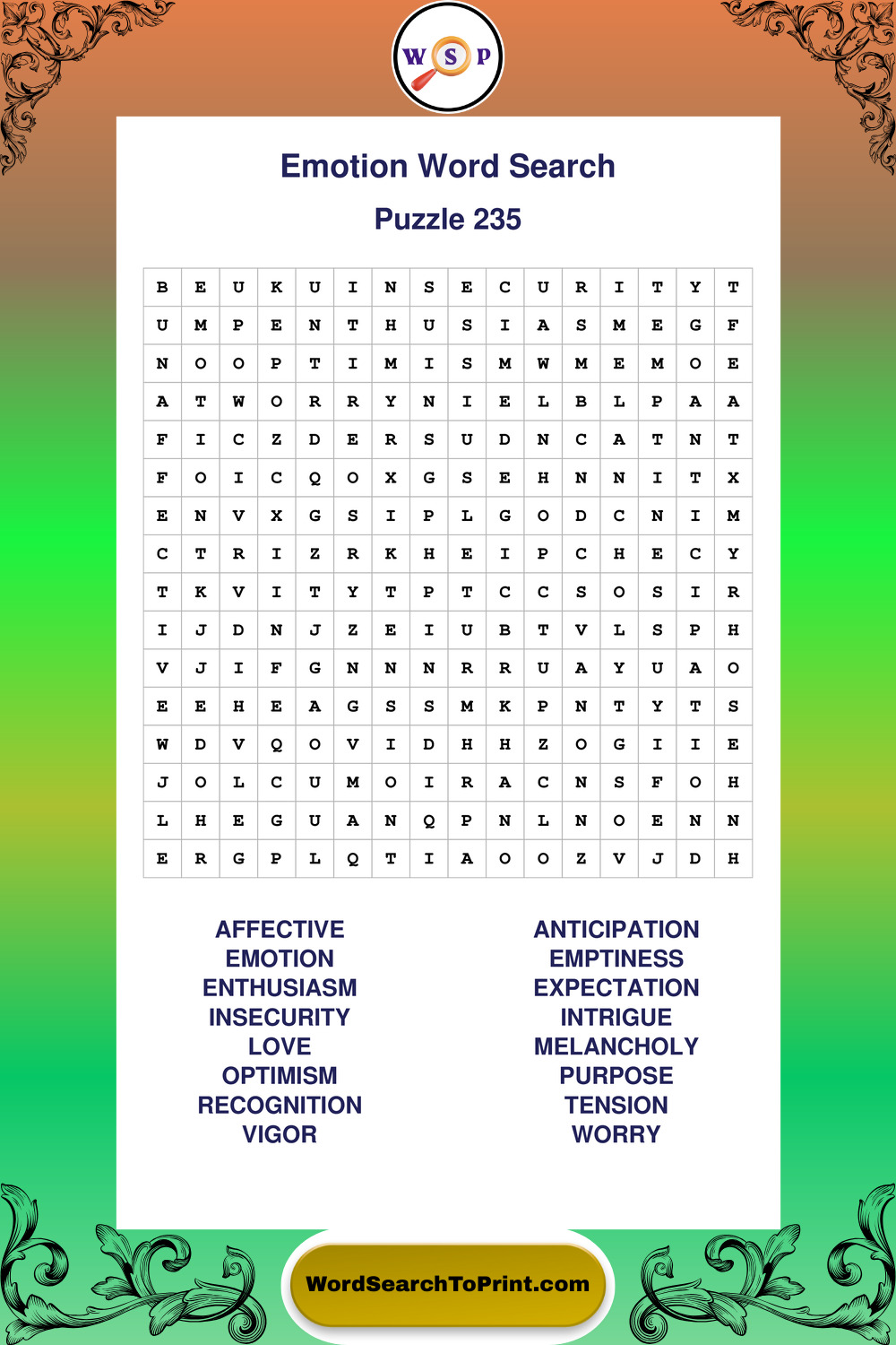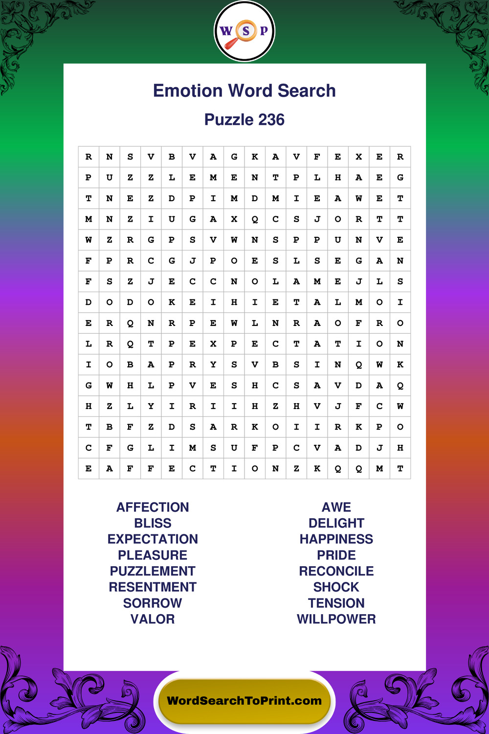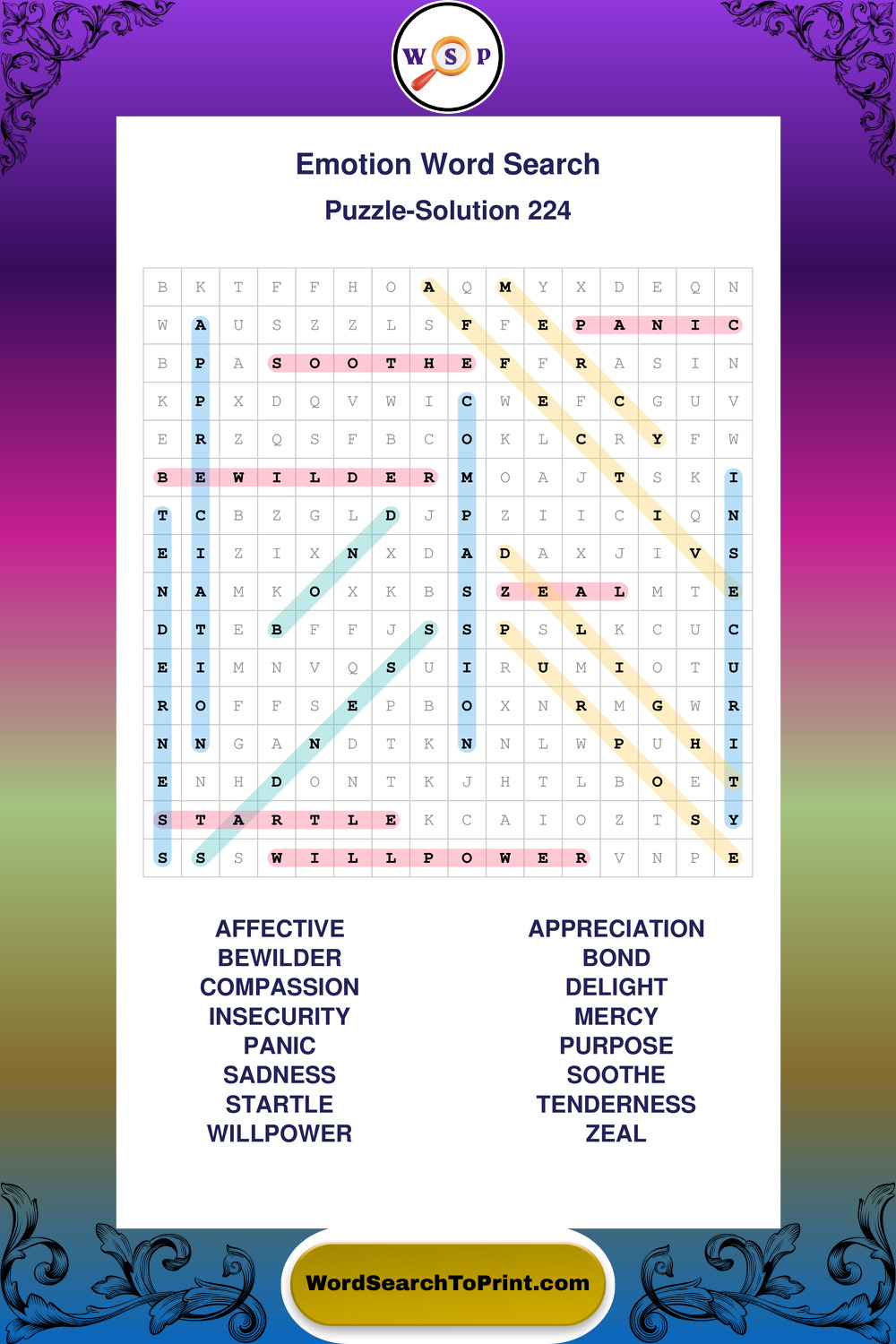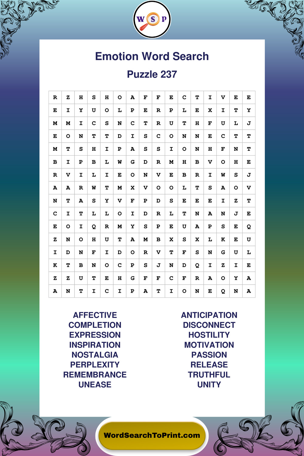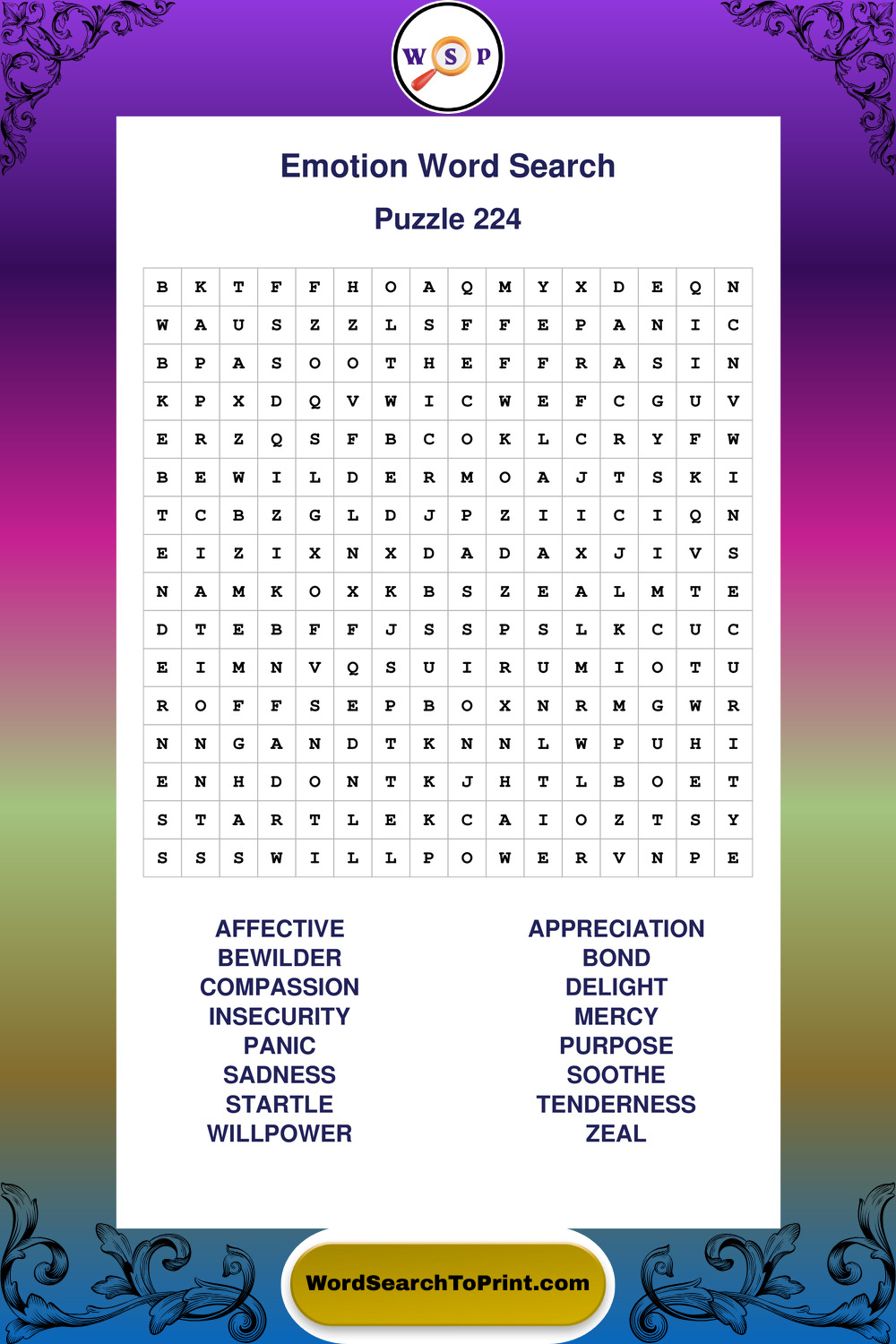 Printable Emotion Wordsearch Puzzles