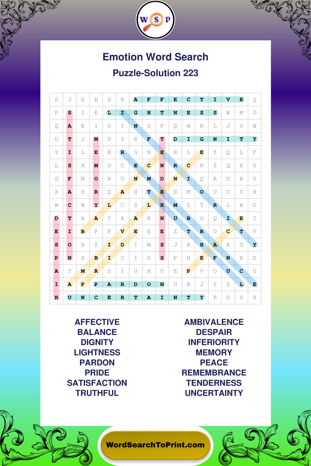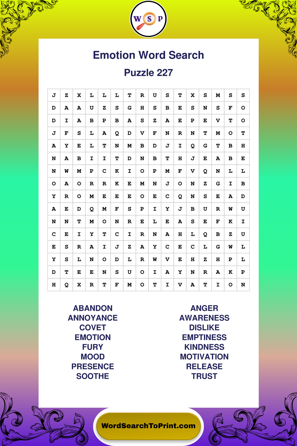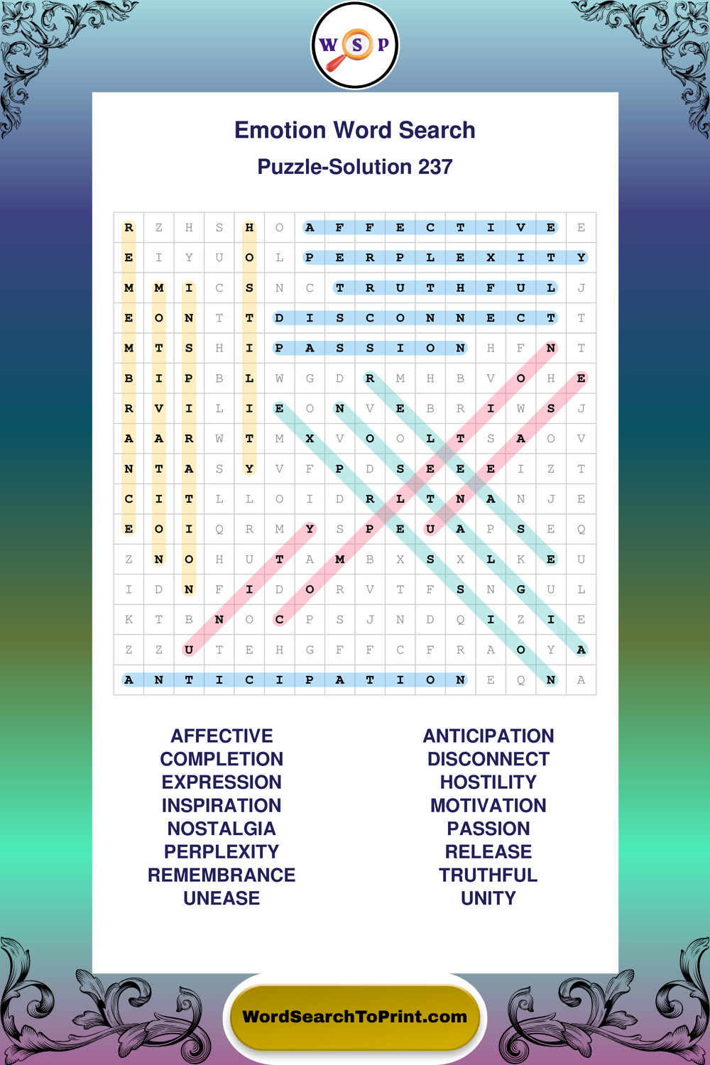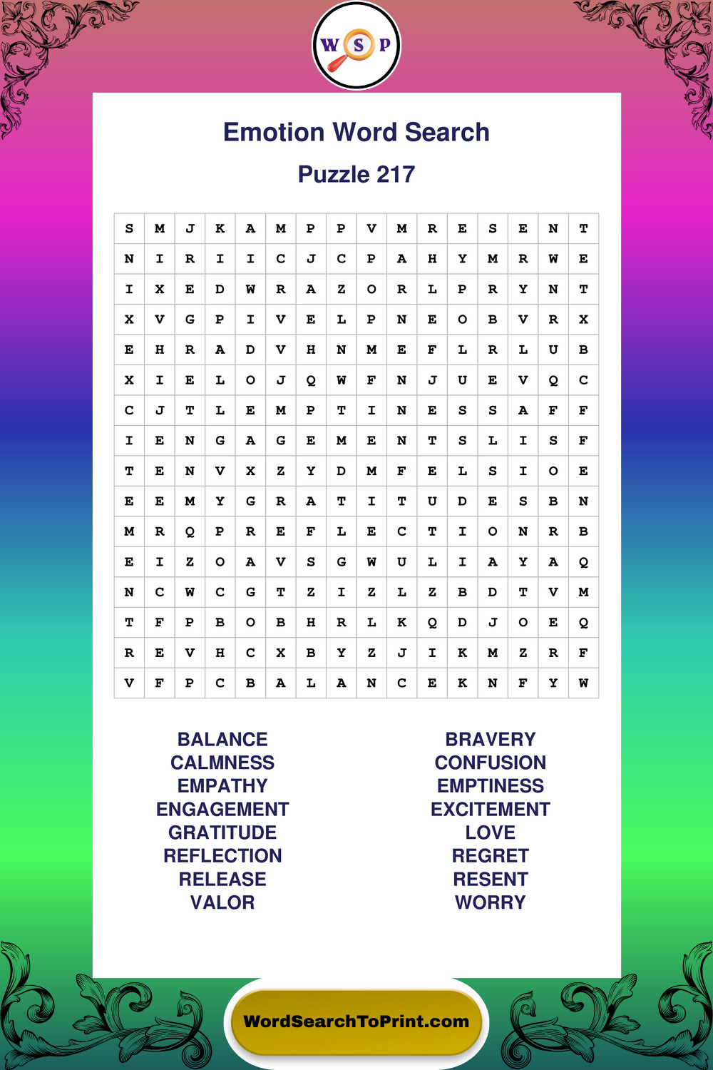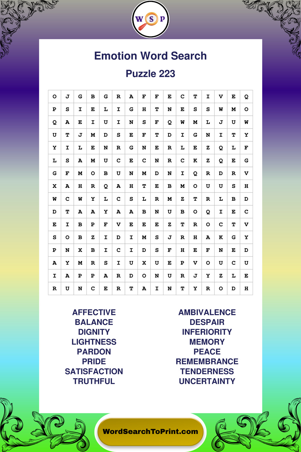 Printable Emotion Wordsearch Puzzles