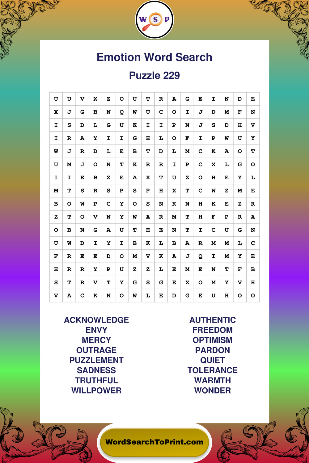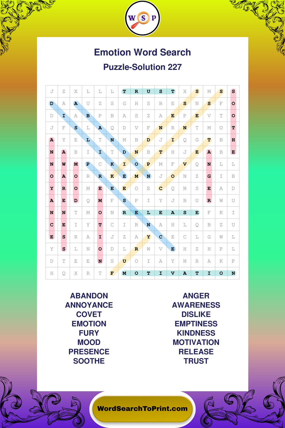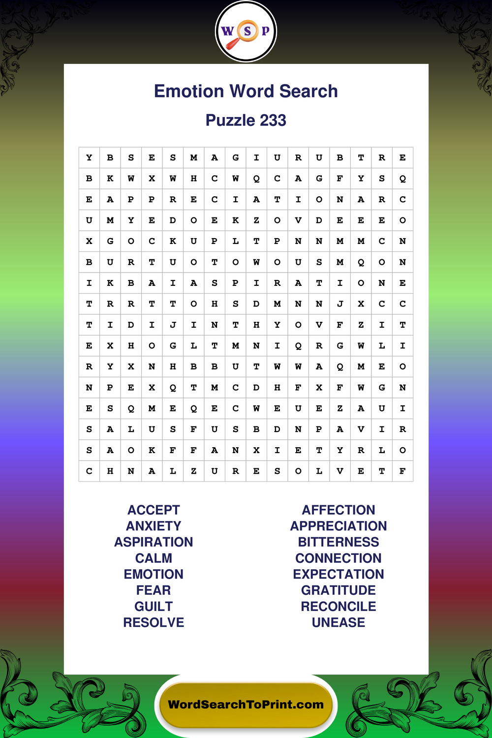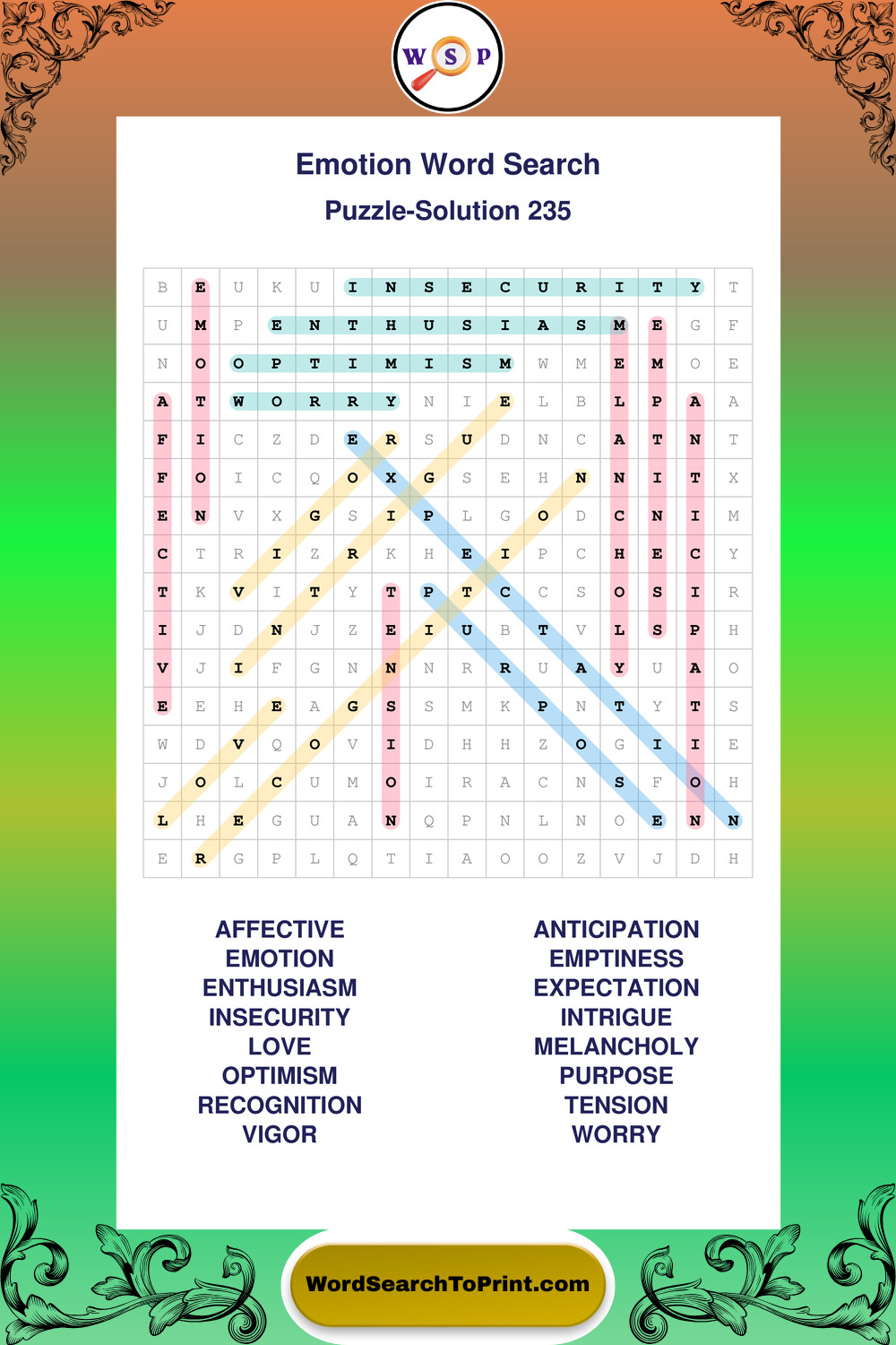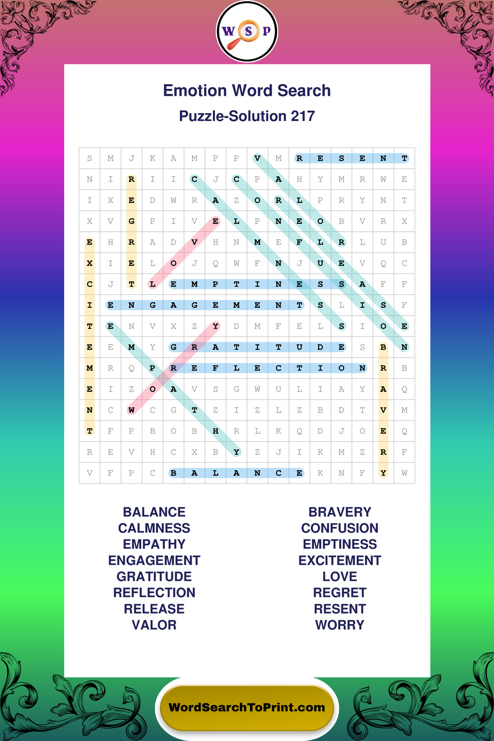 Printable Emotion Wordsearch Puzzles
