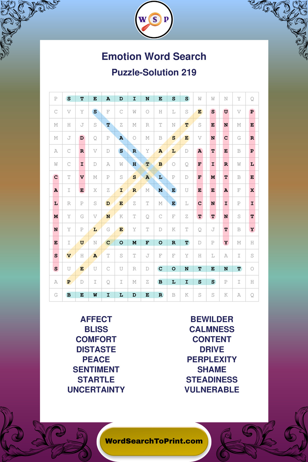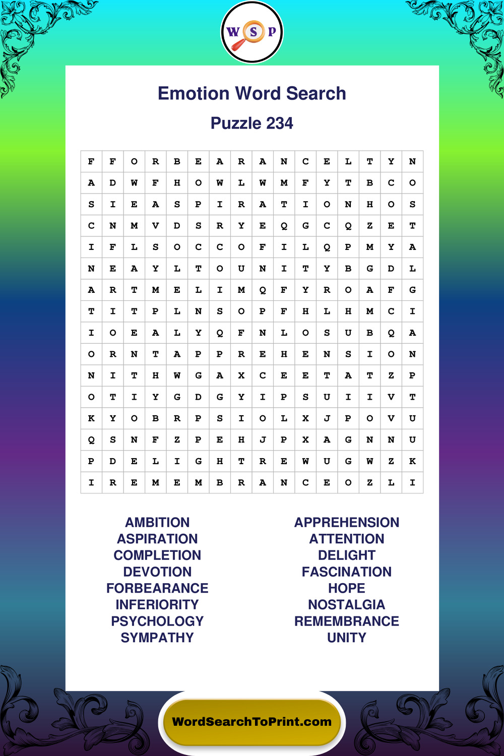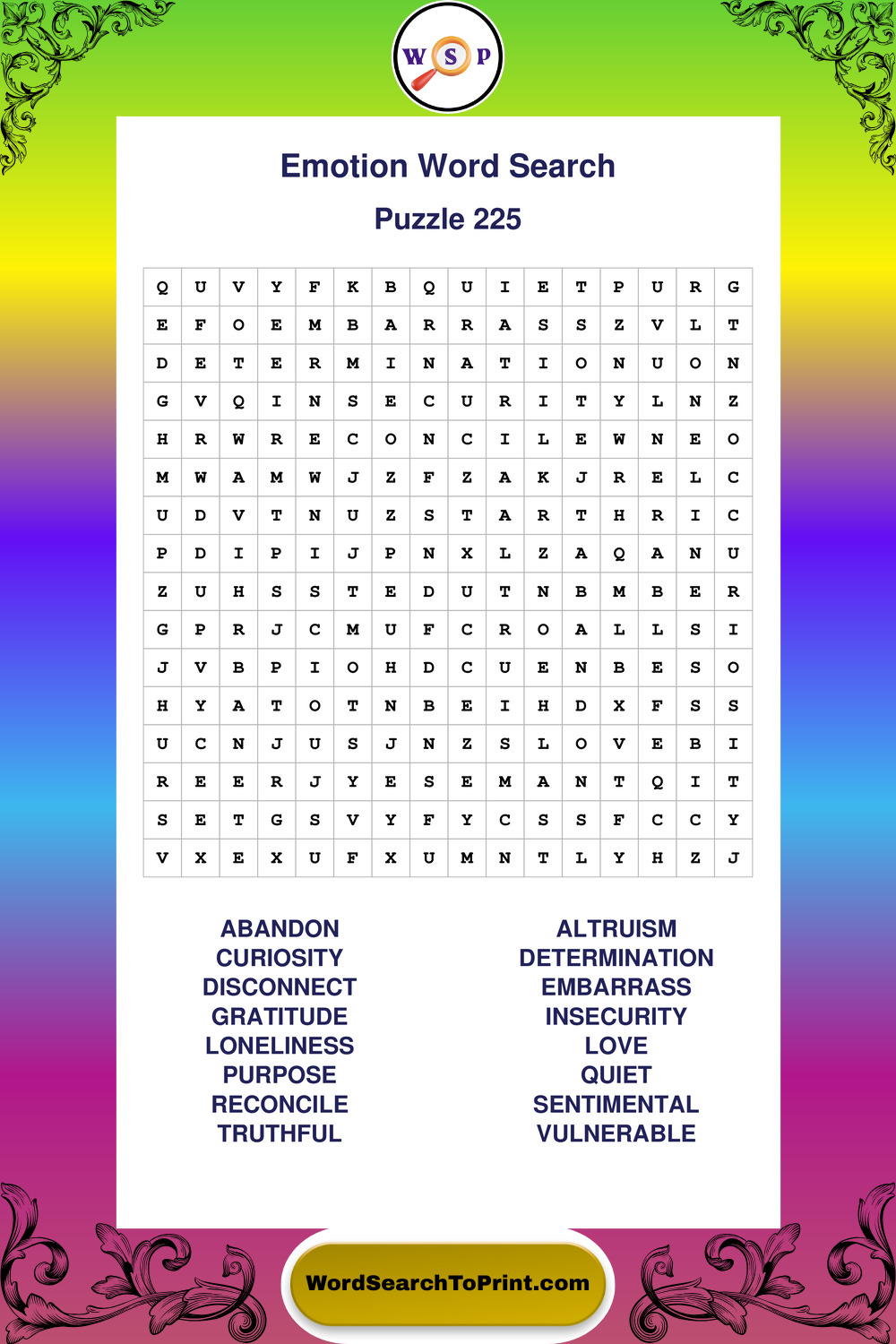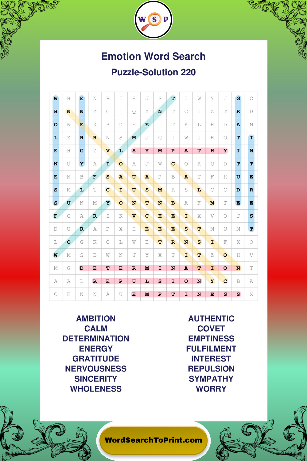 Printable Emotion Wordsearch Puzzles