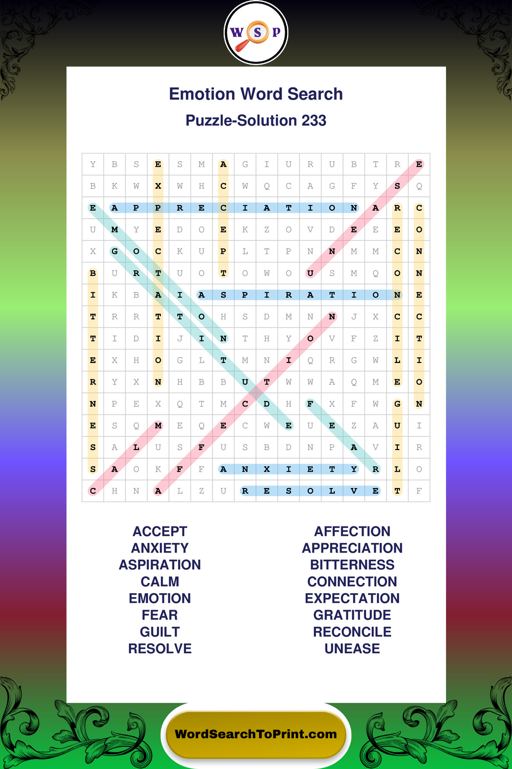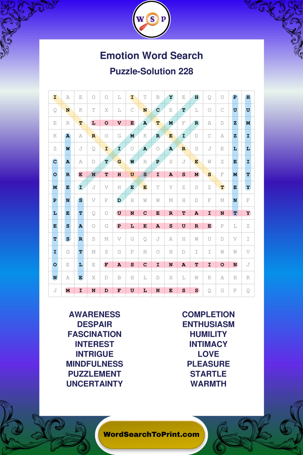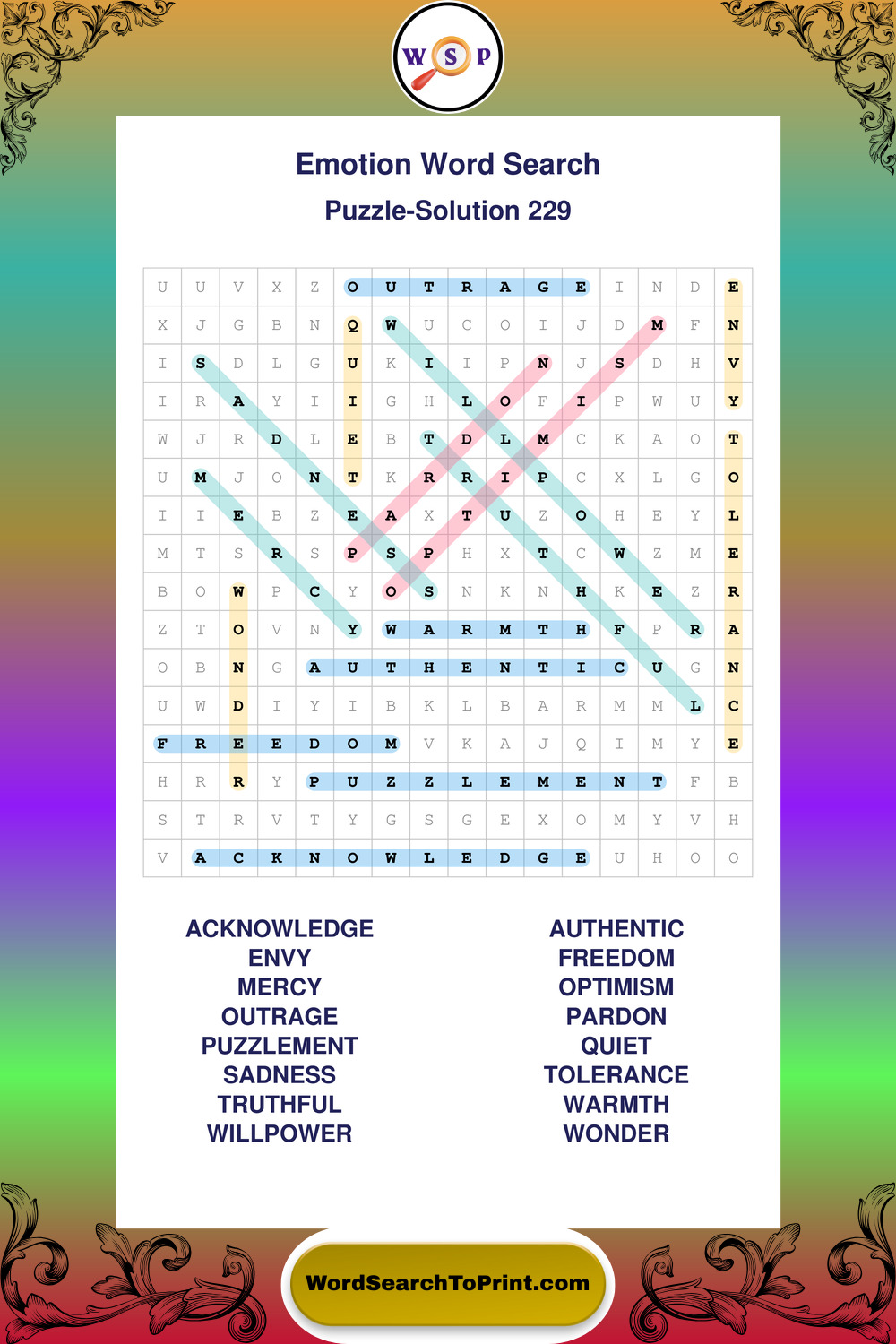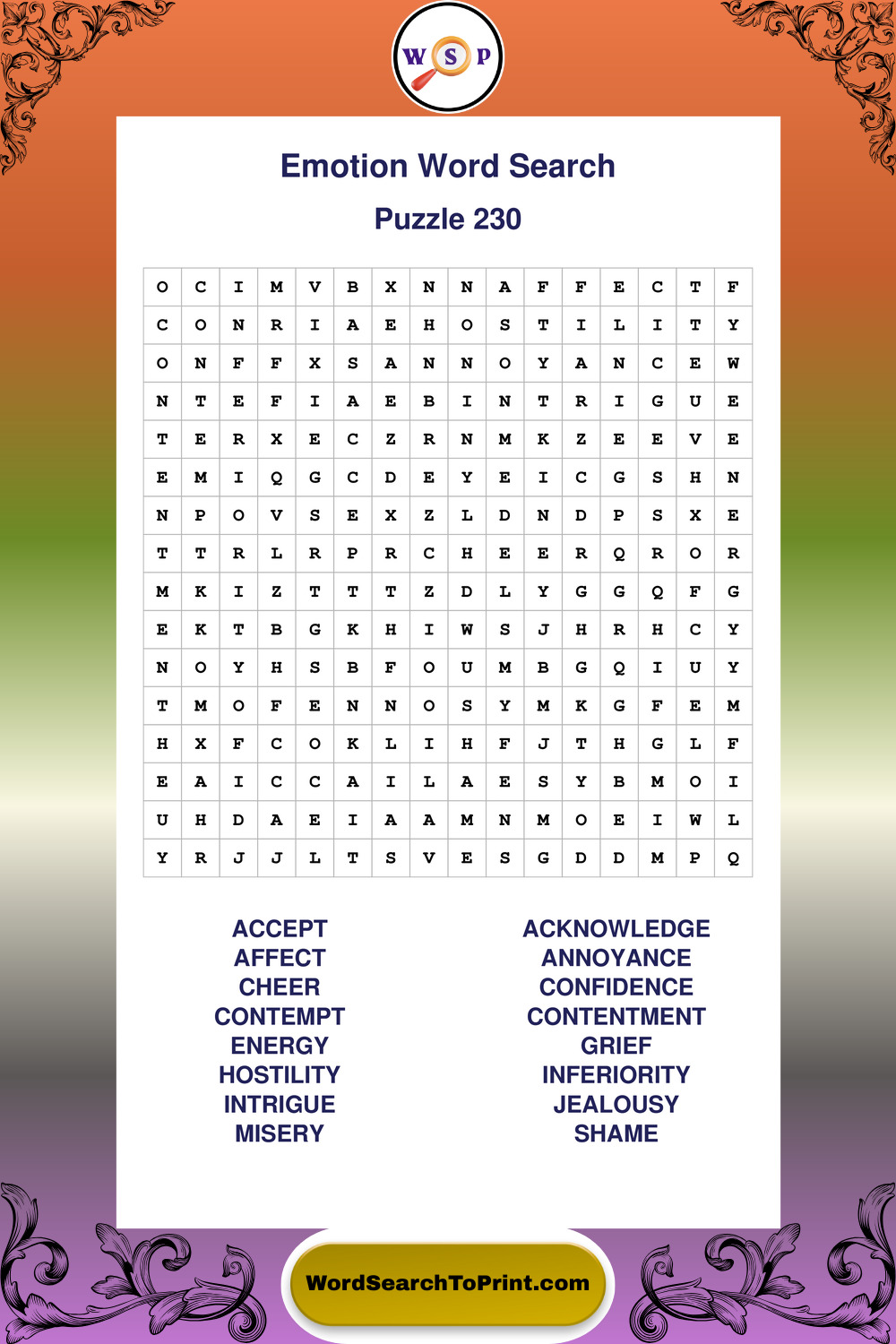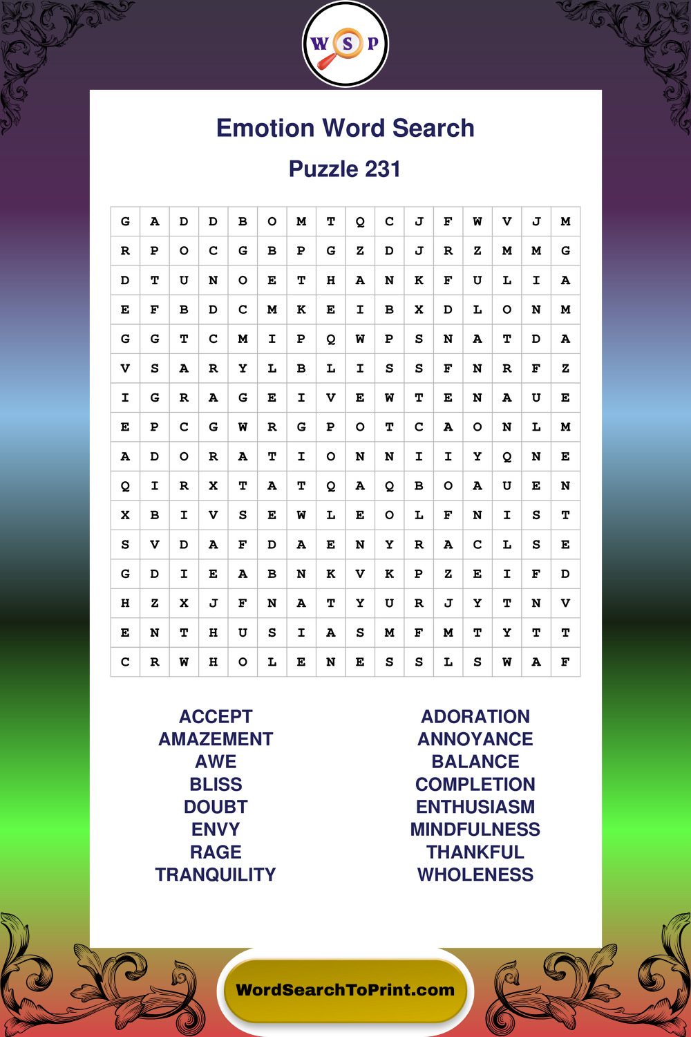 Printable Emotion Wordsearch Puzzles