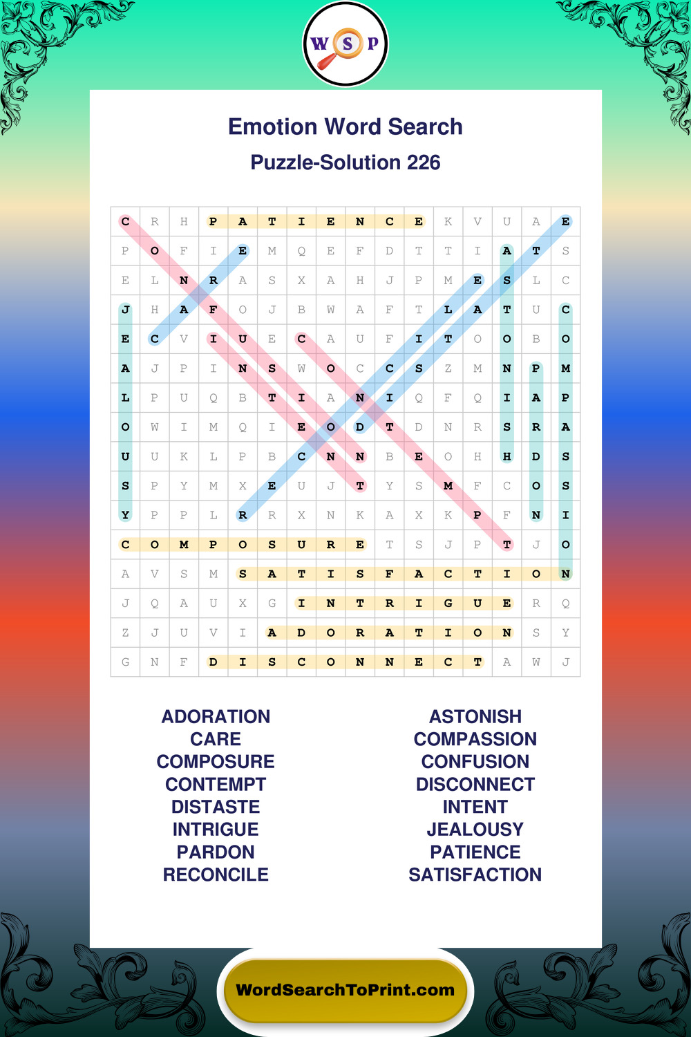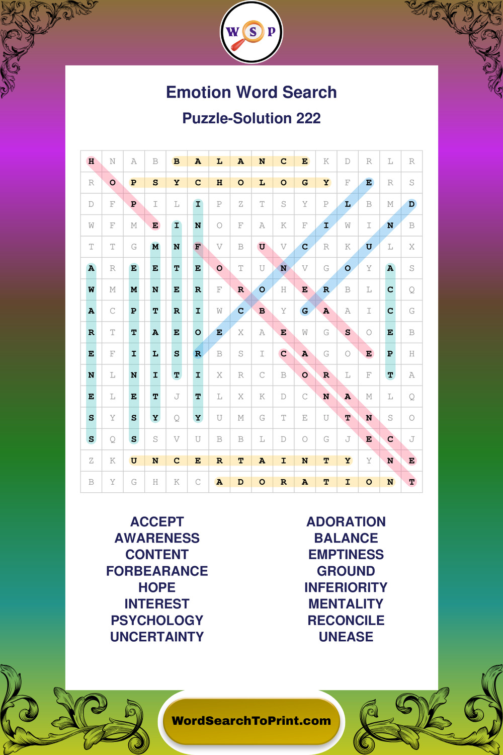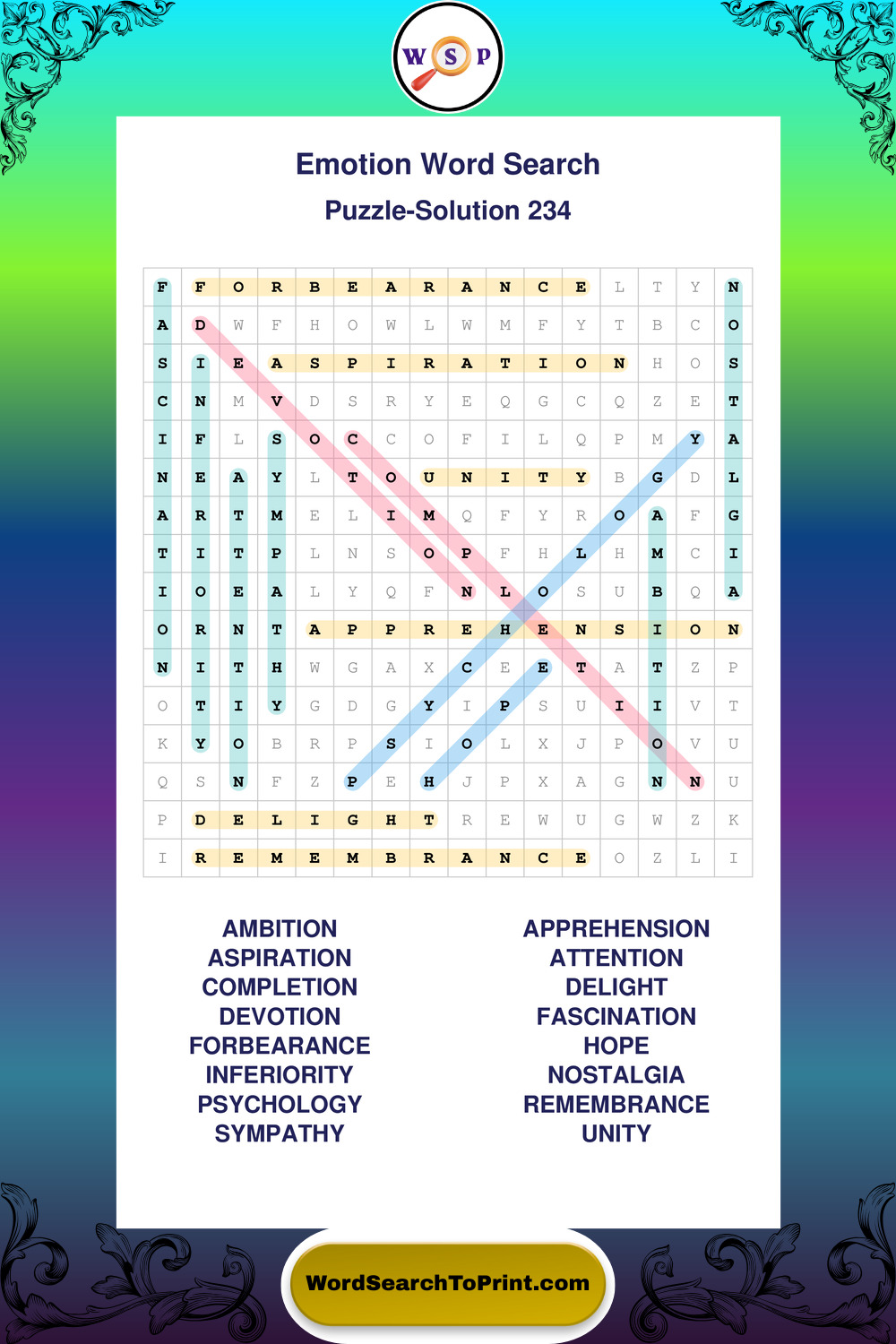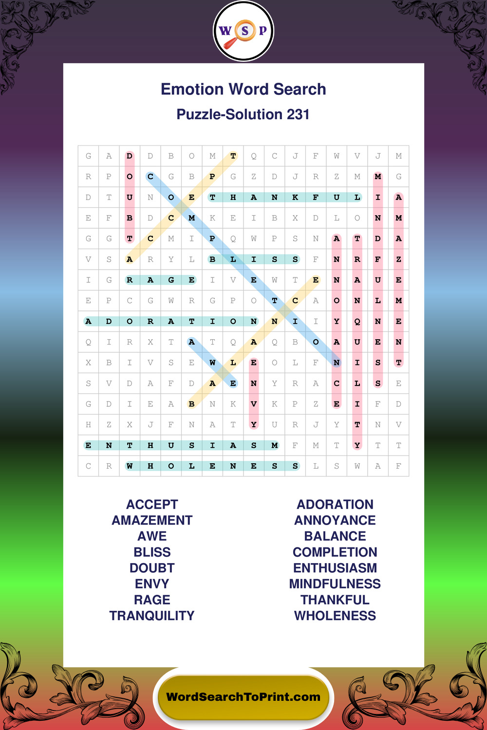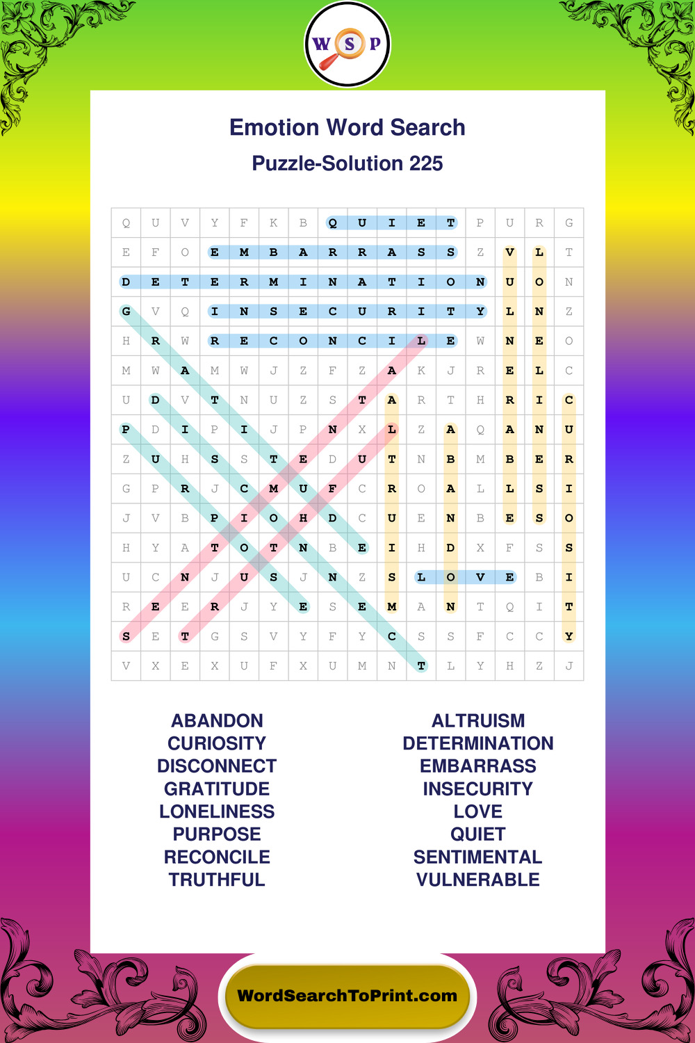 Printable Emotion Wordsearch Puzzles