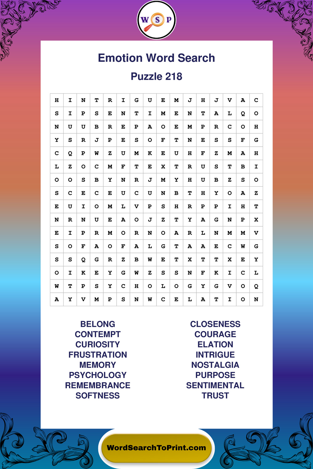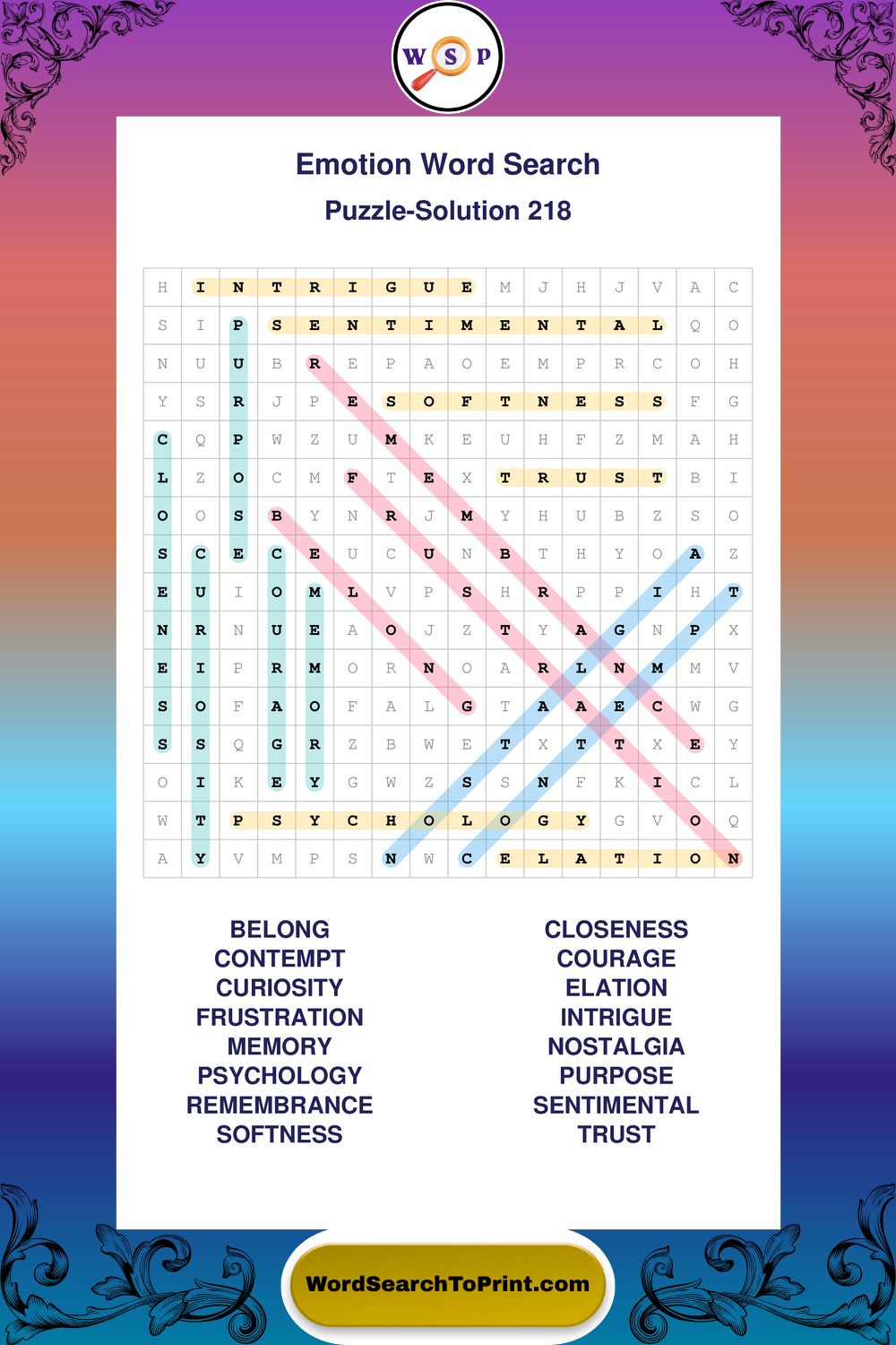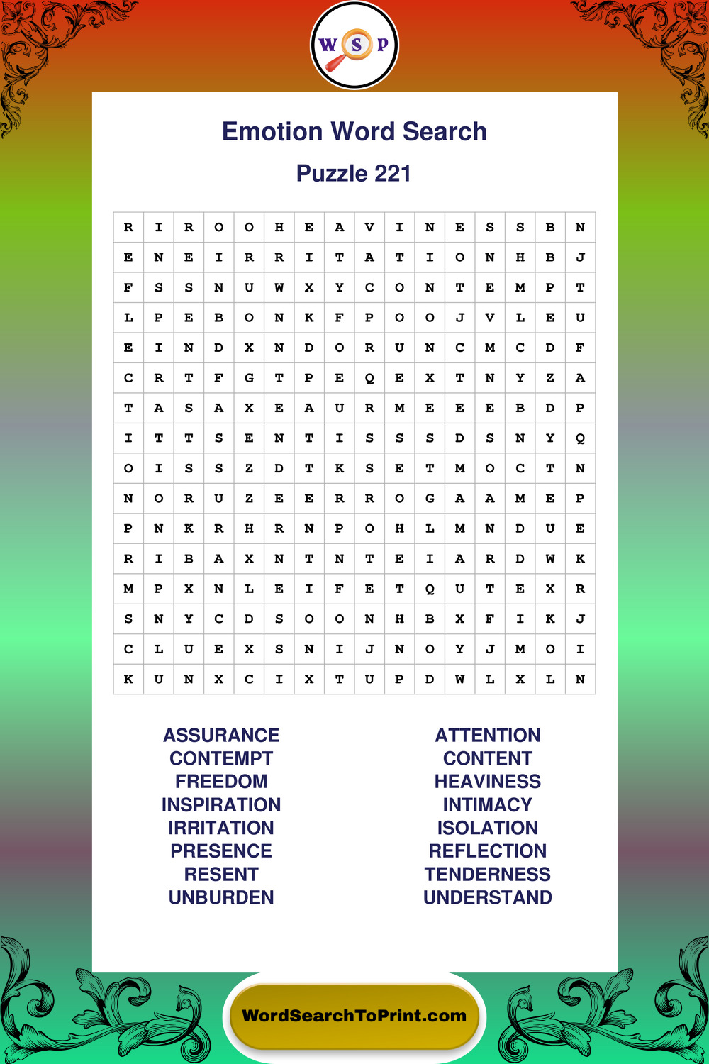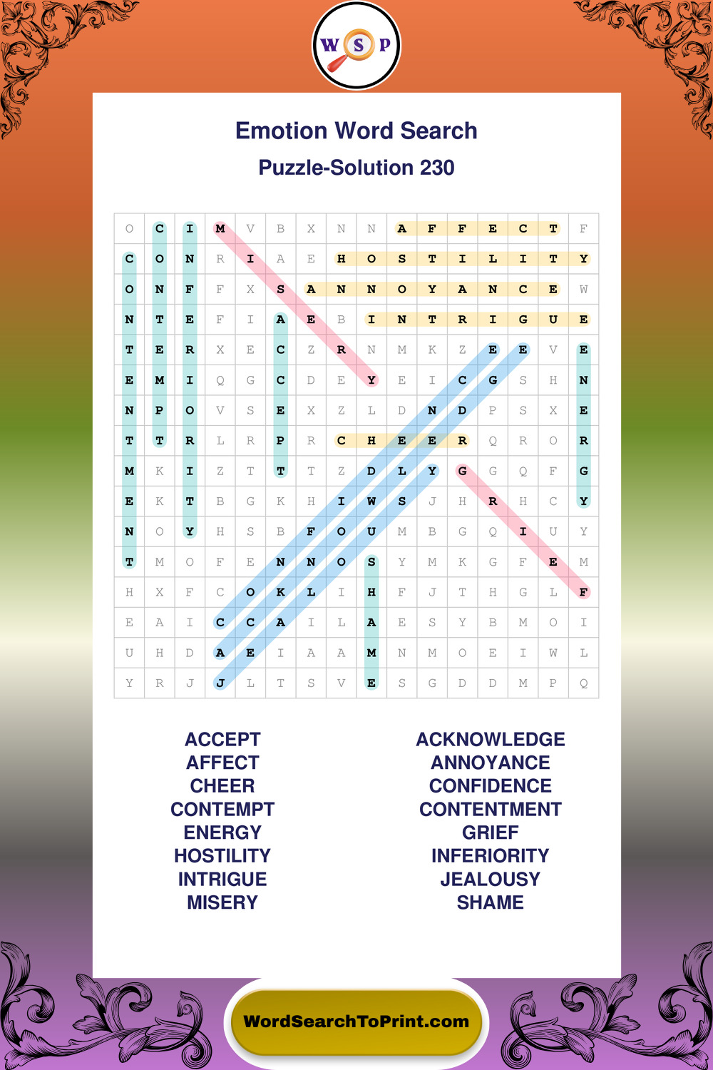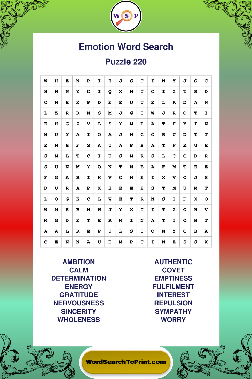 Printable Emotion Wordsearch Puzzles