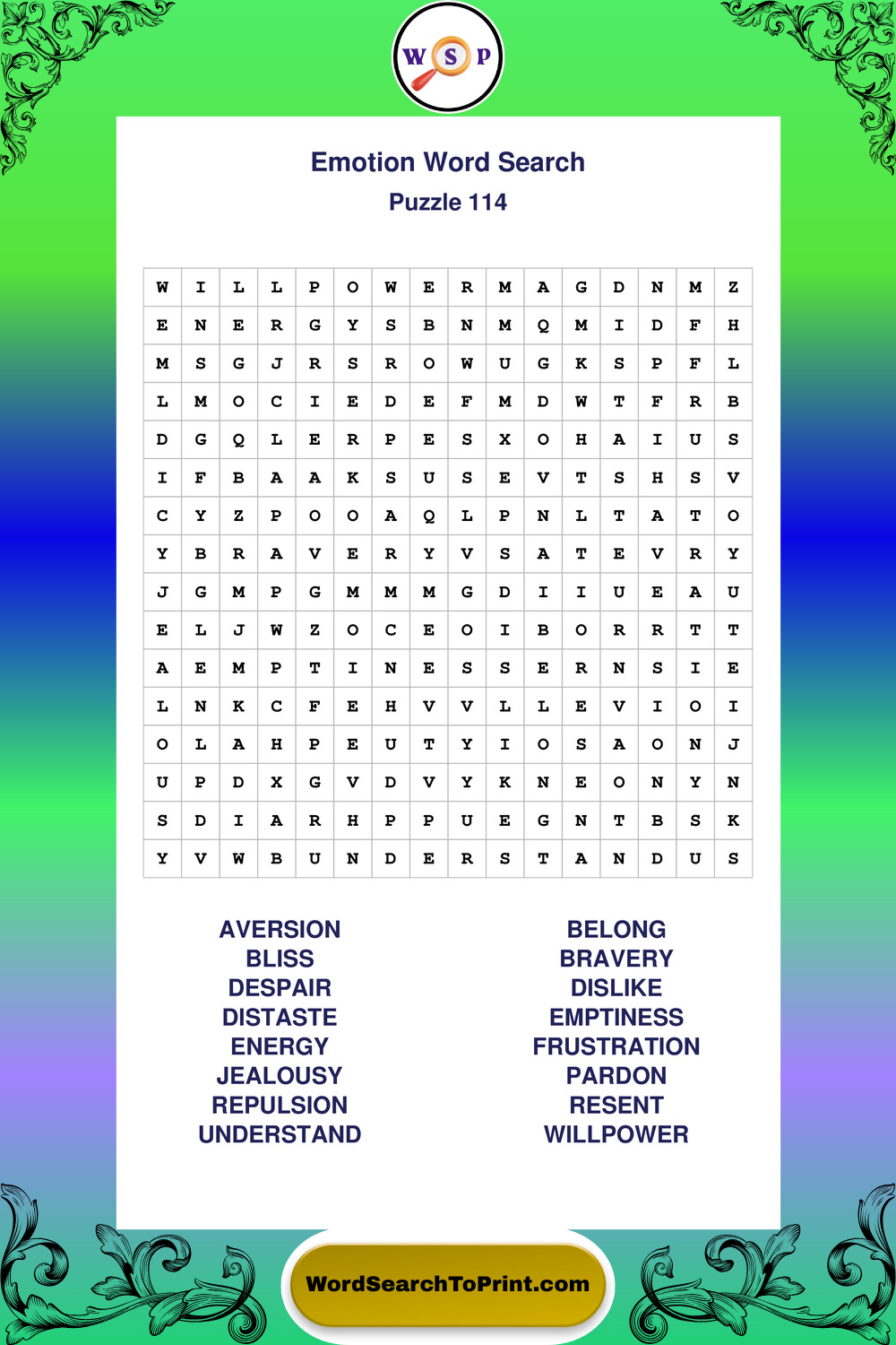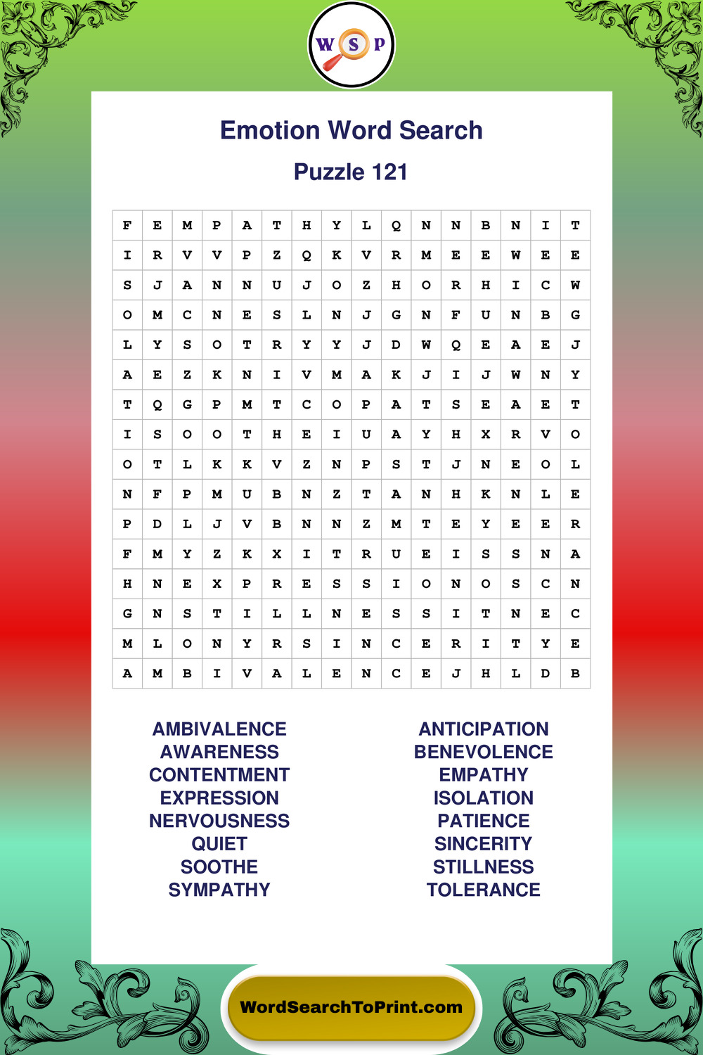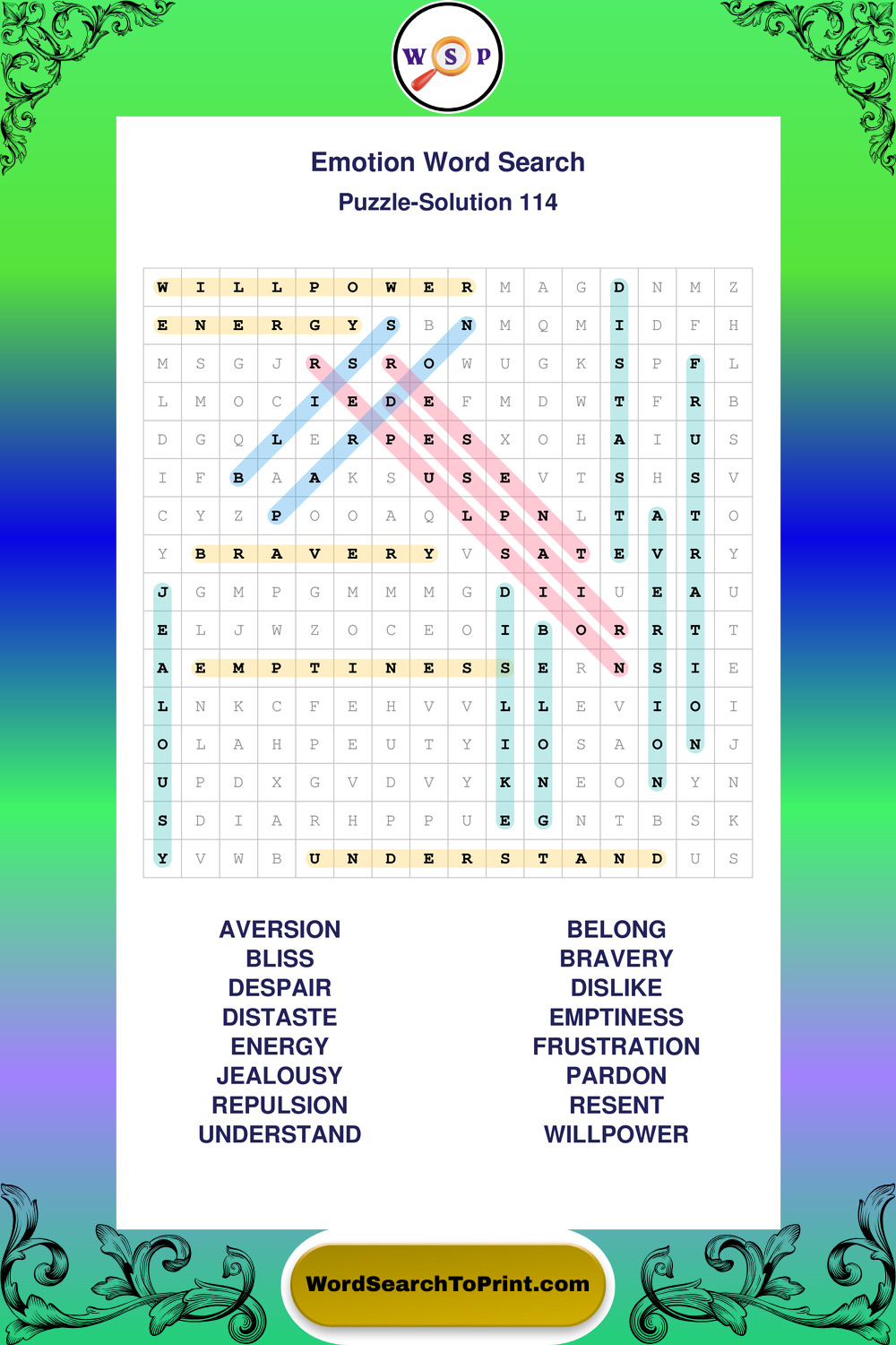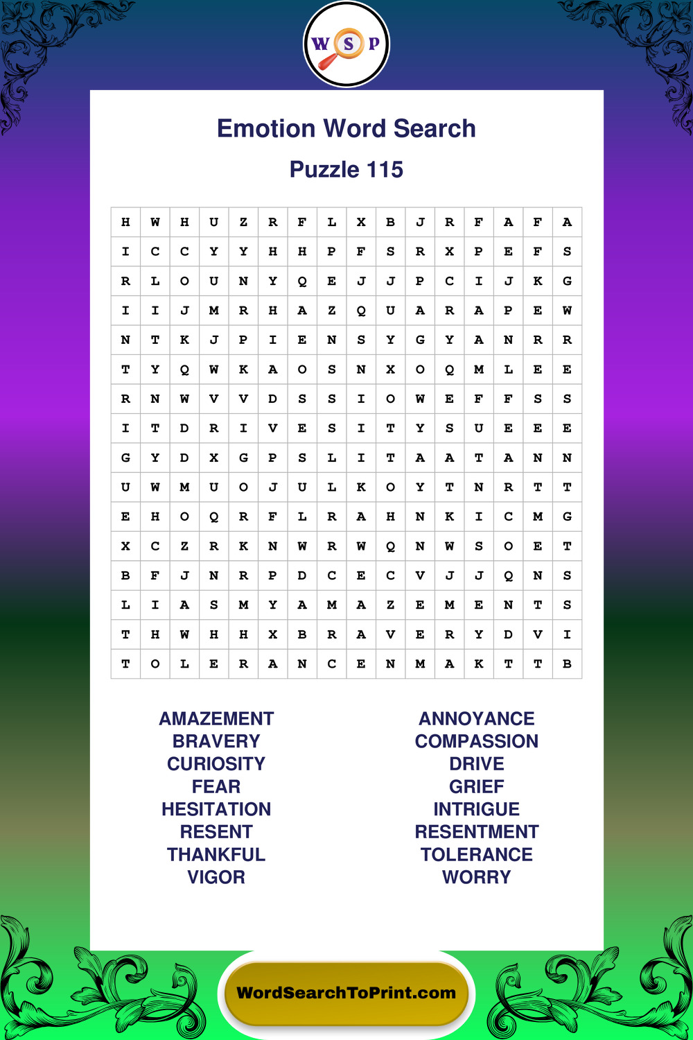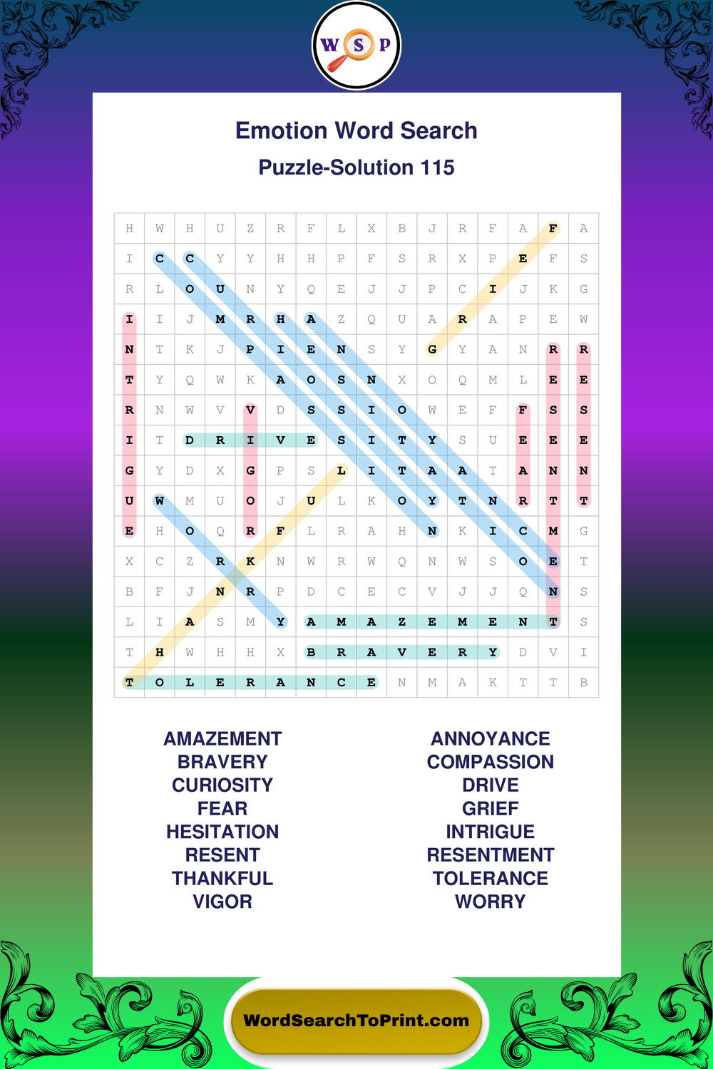Printable Emotion Wordsearch Puzzles