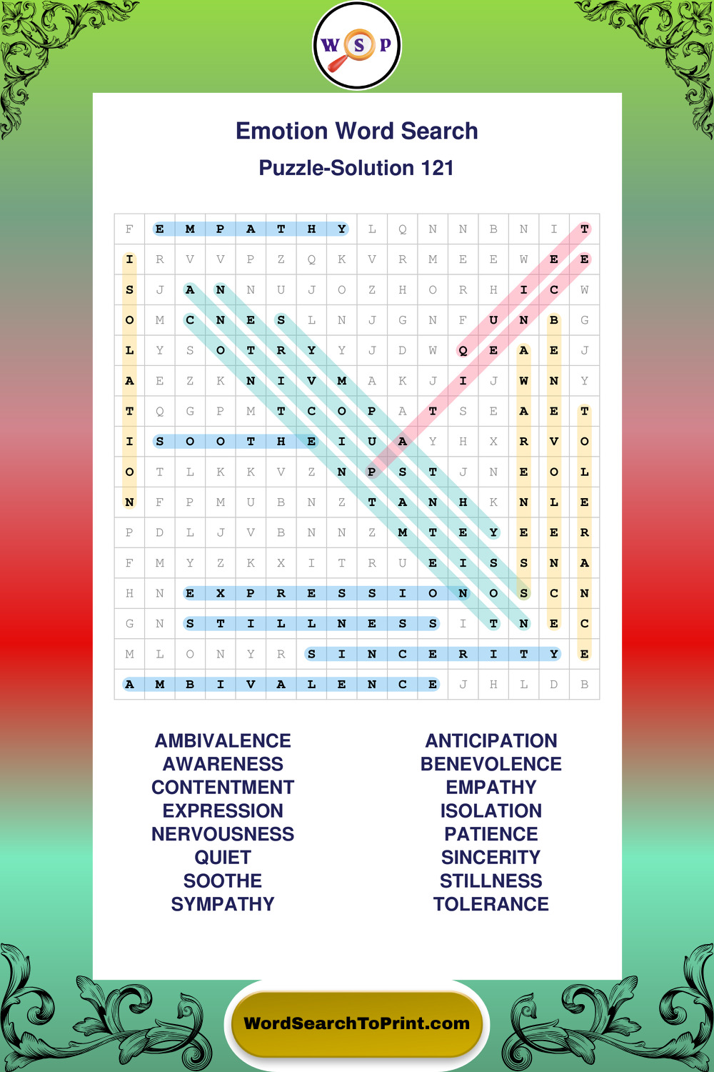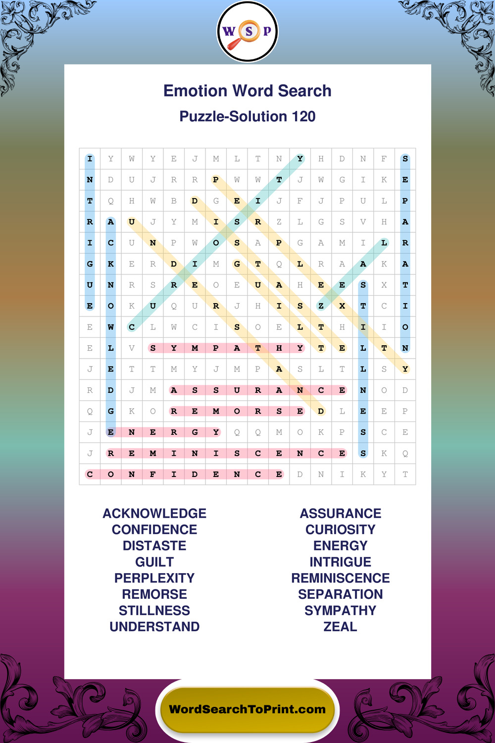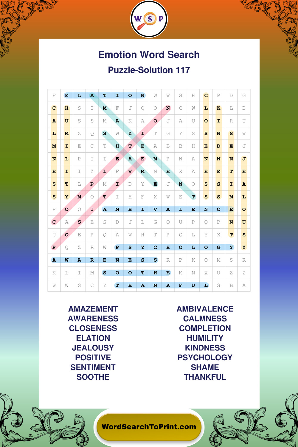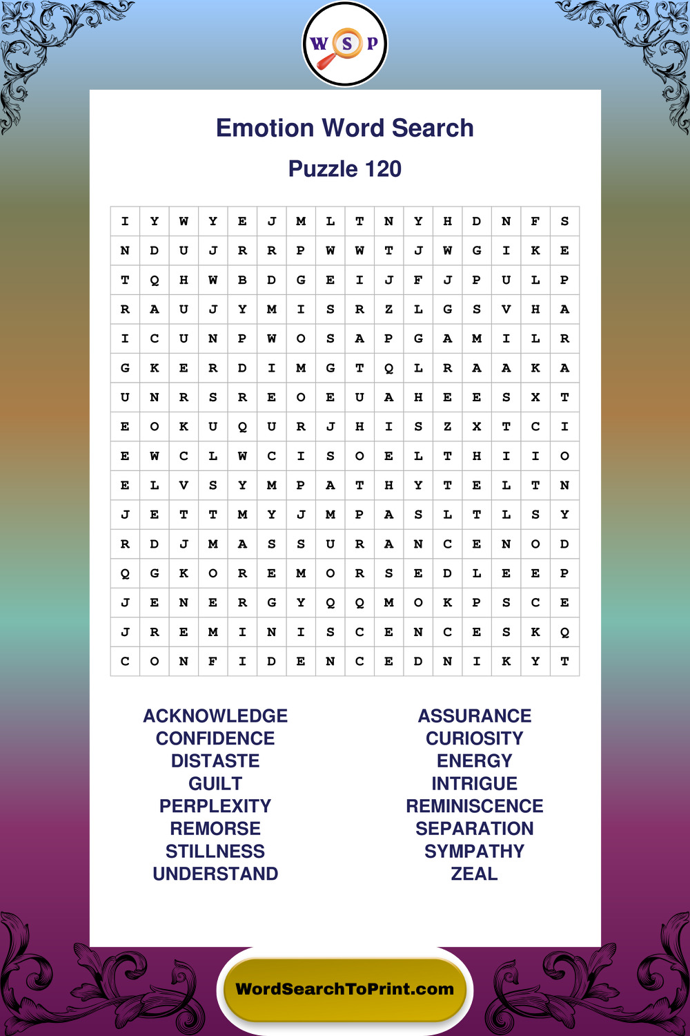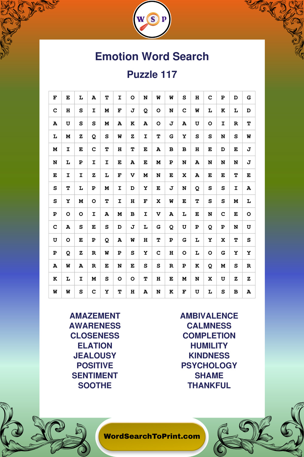 Printable Emotion Wordsearch Puzzles