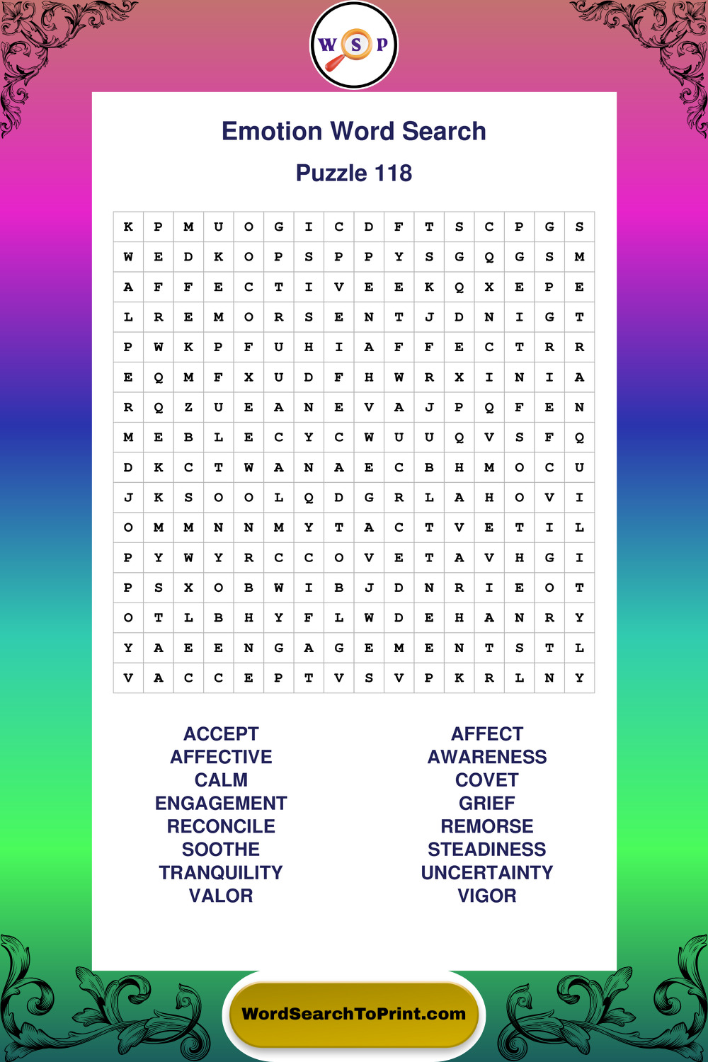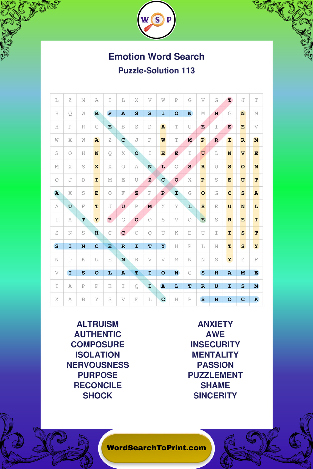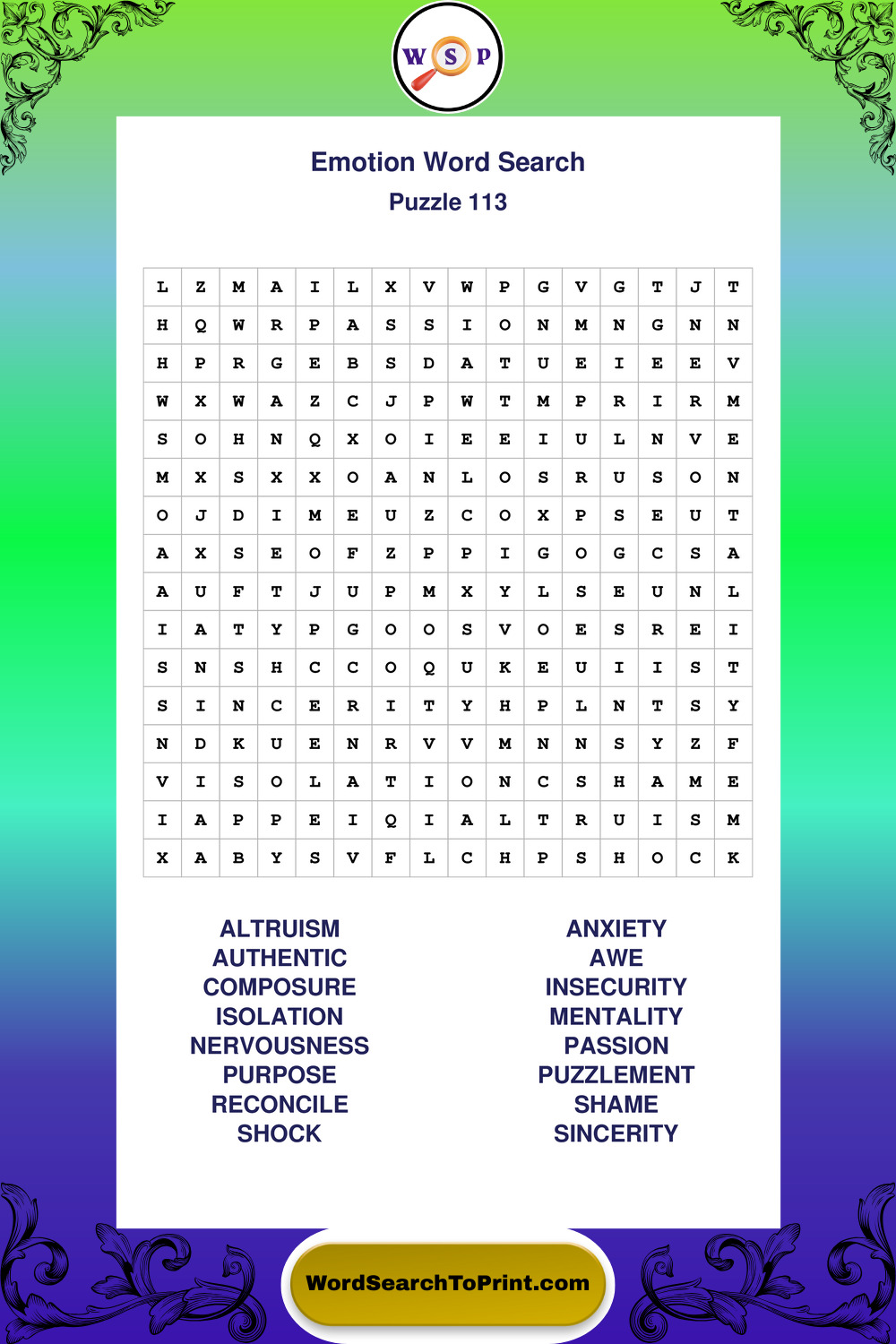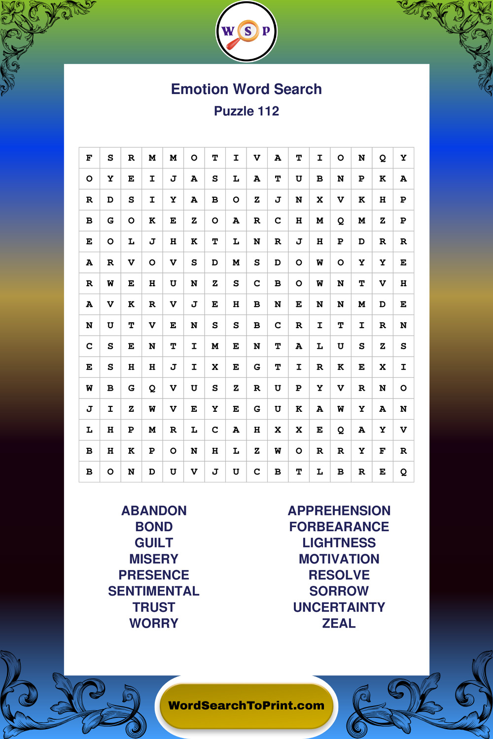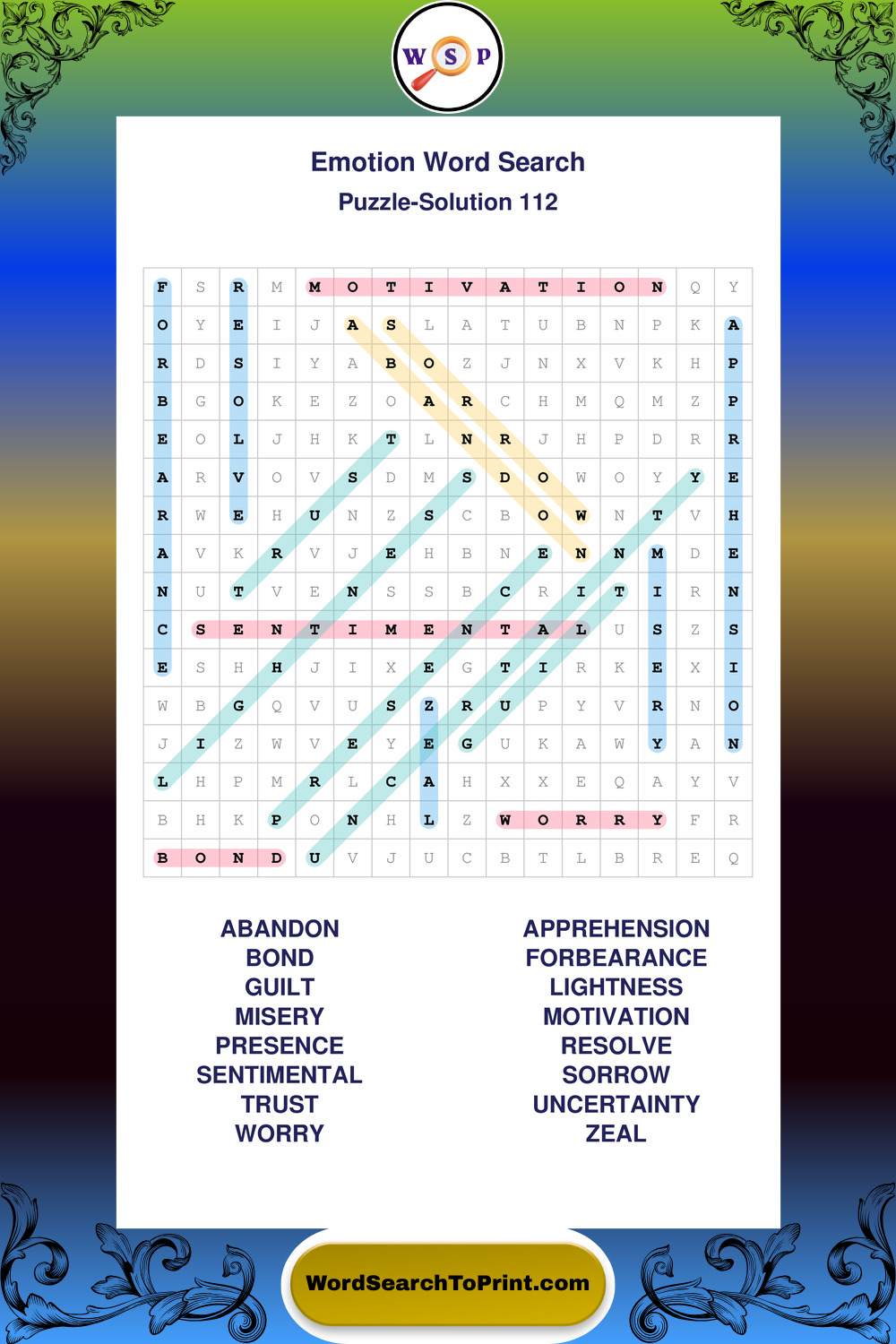 Printable Emotion Wordsearch Puzzles
