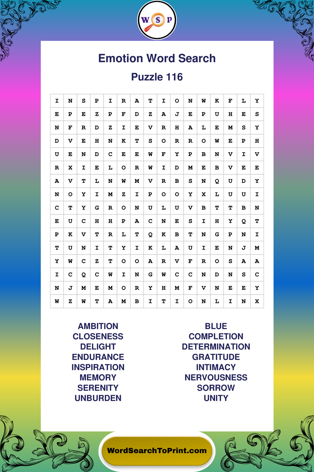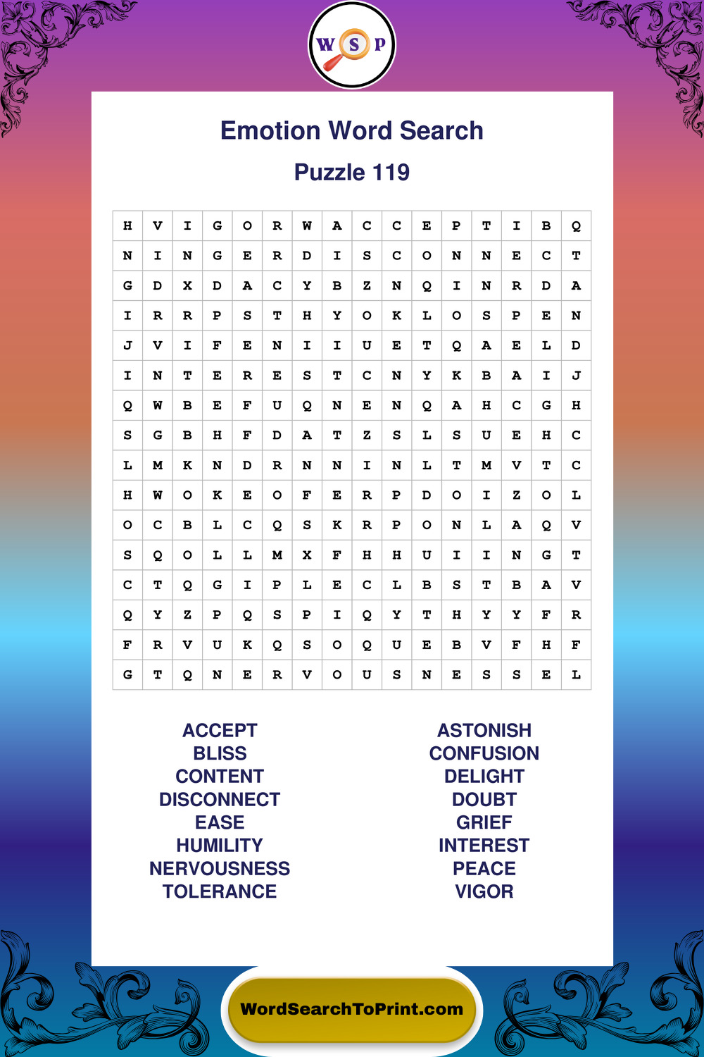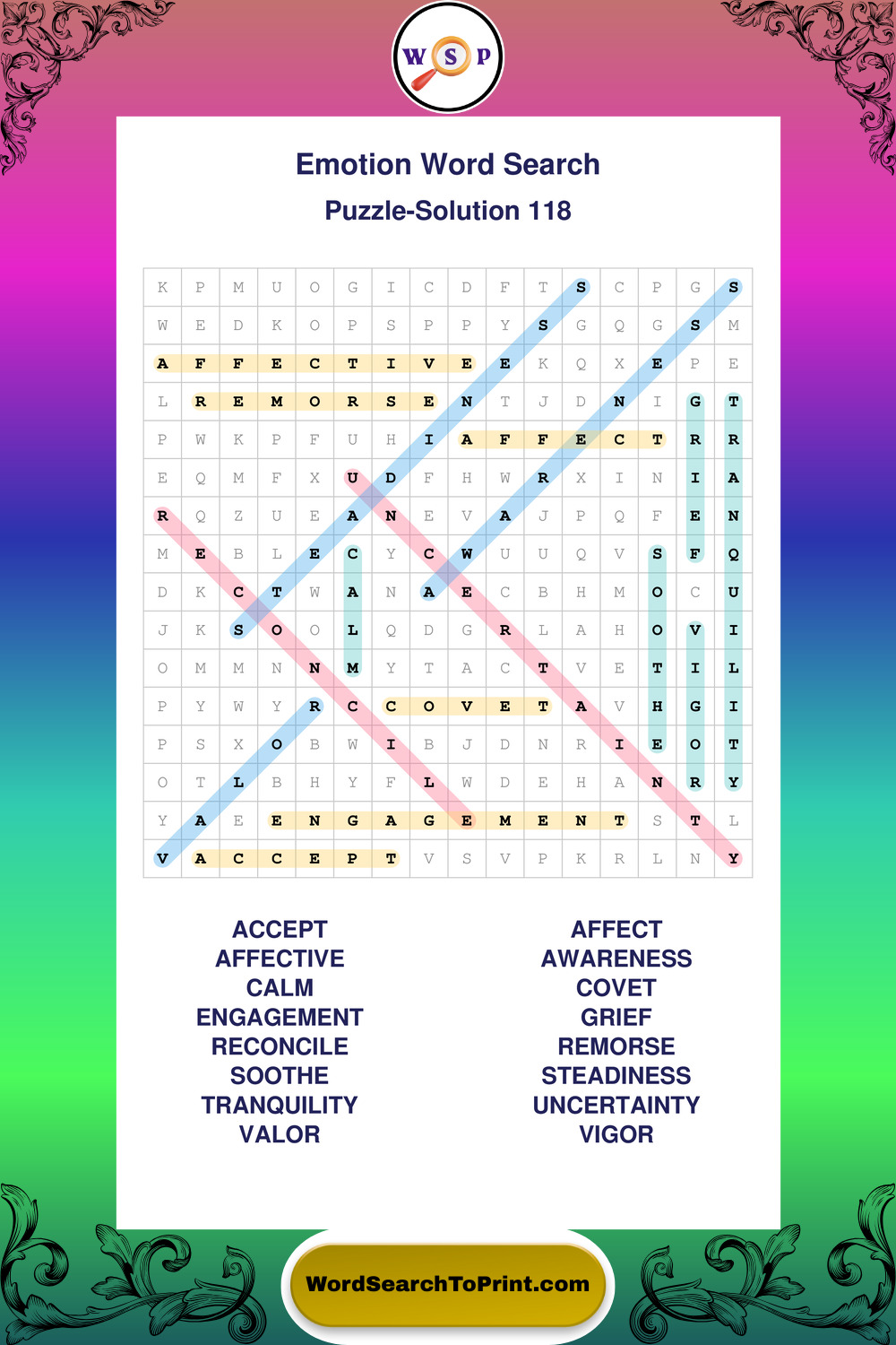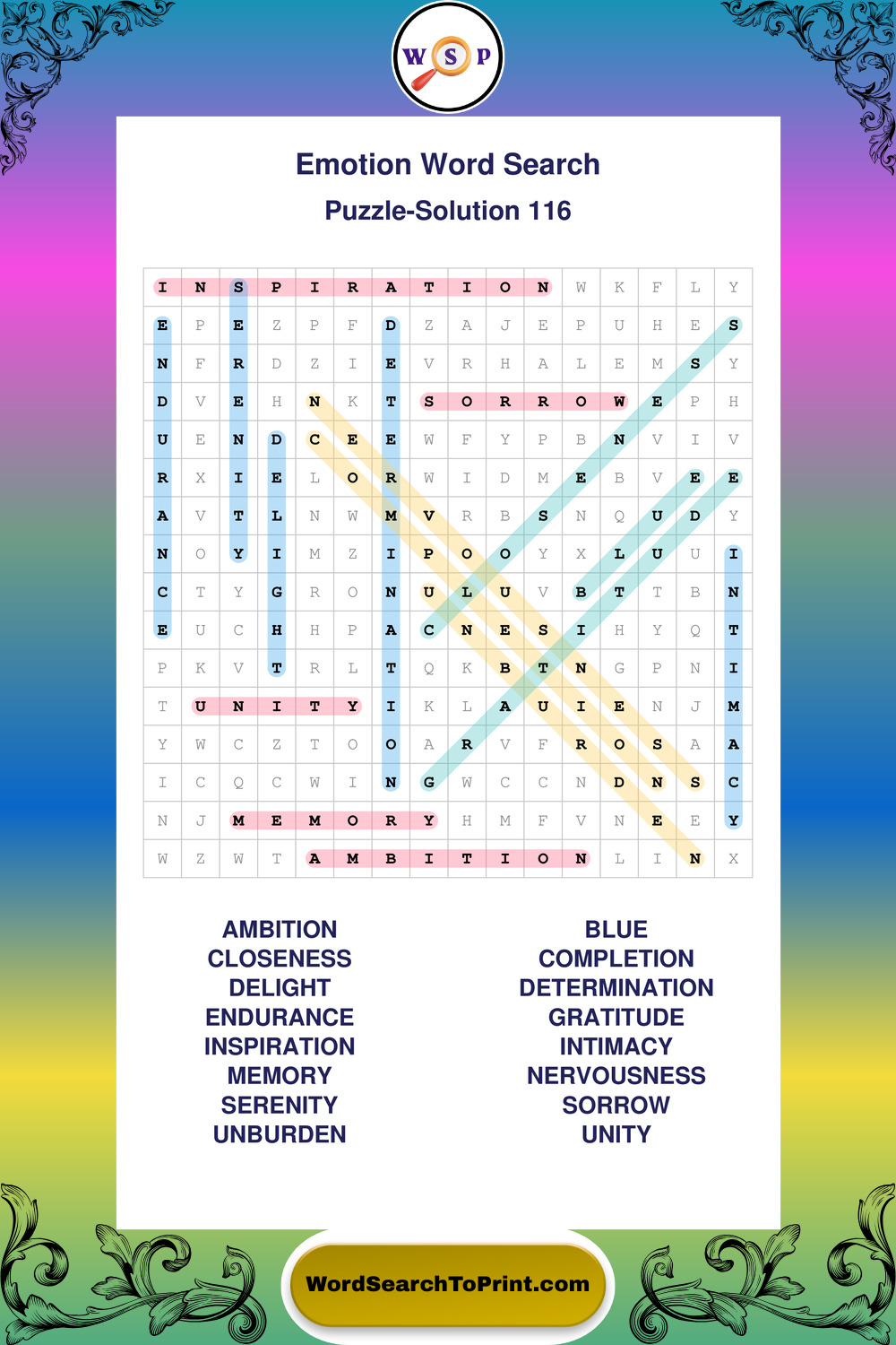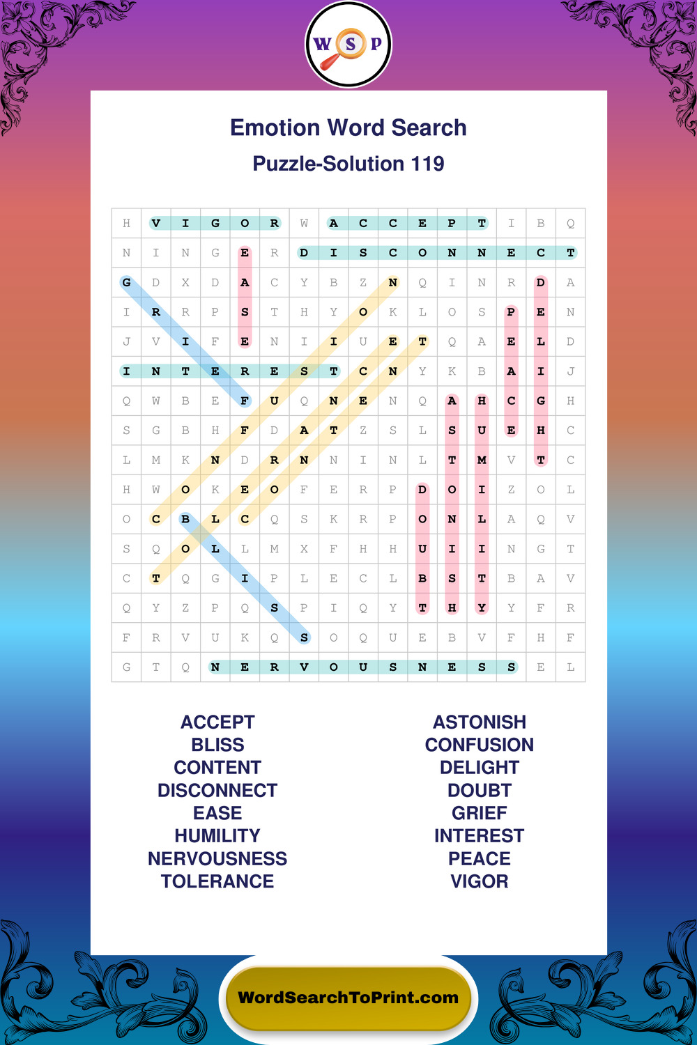 Printable Emotion Wordsearch Puzzles