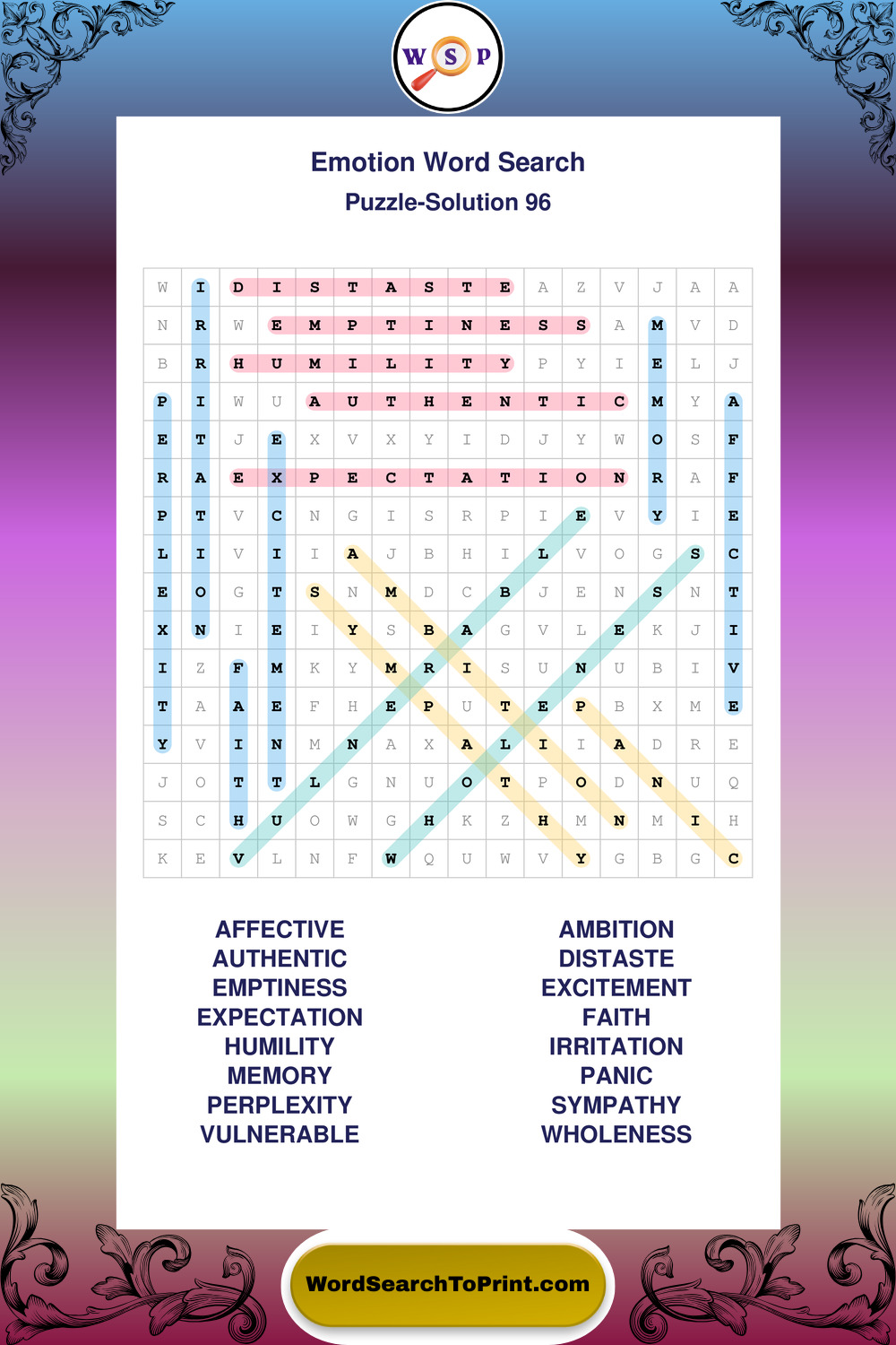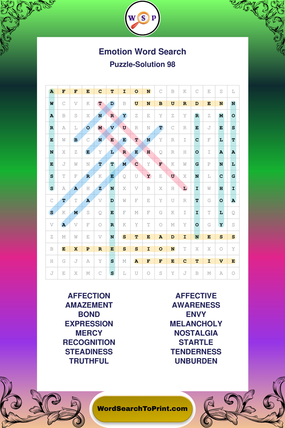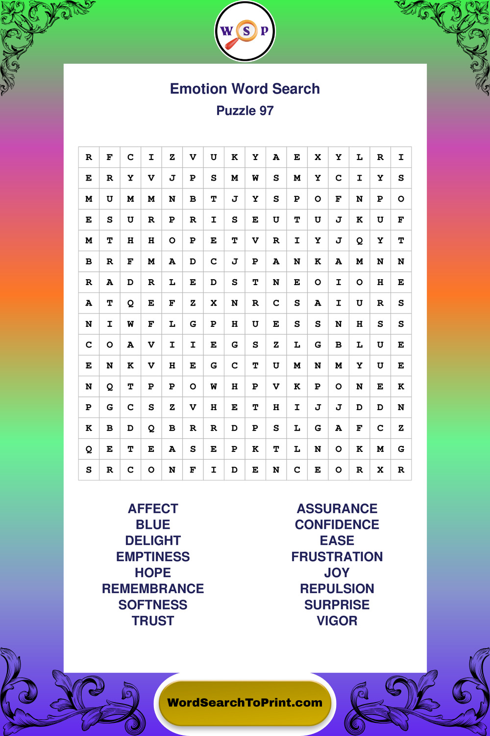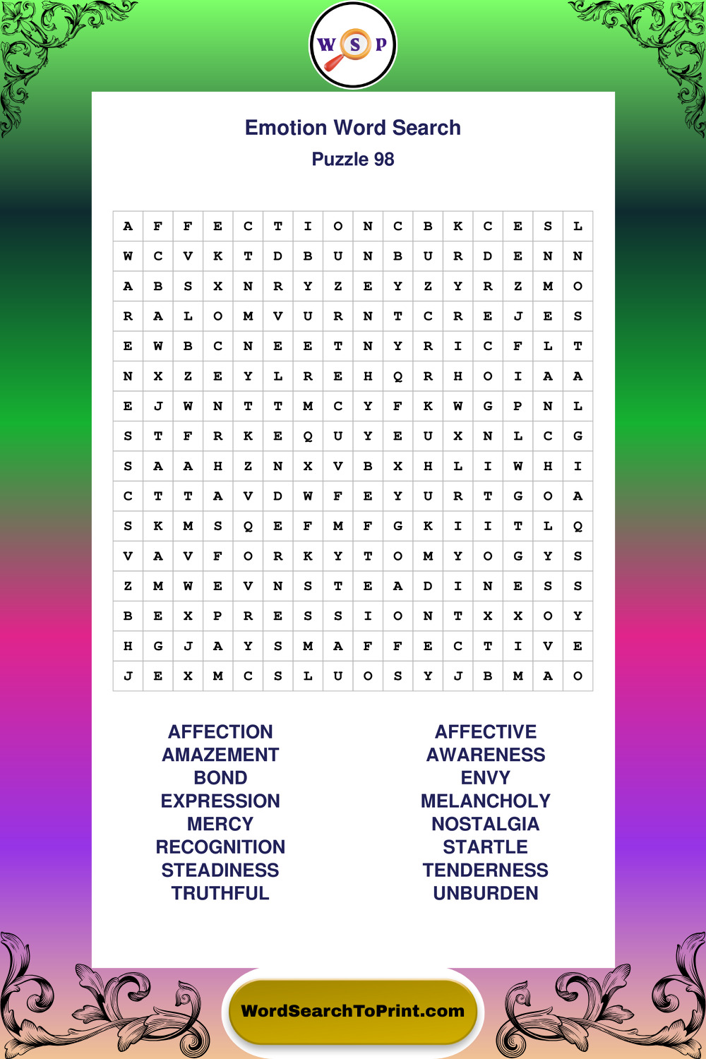 Printable Emotion Wordsearch Puzzles