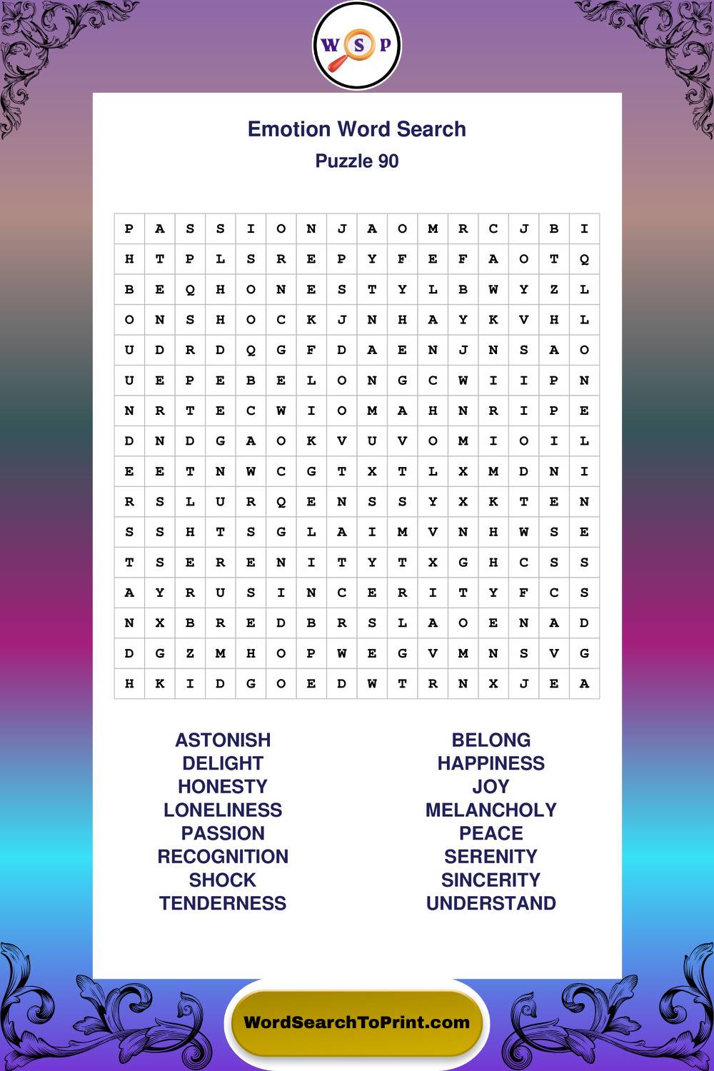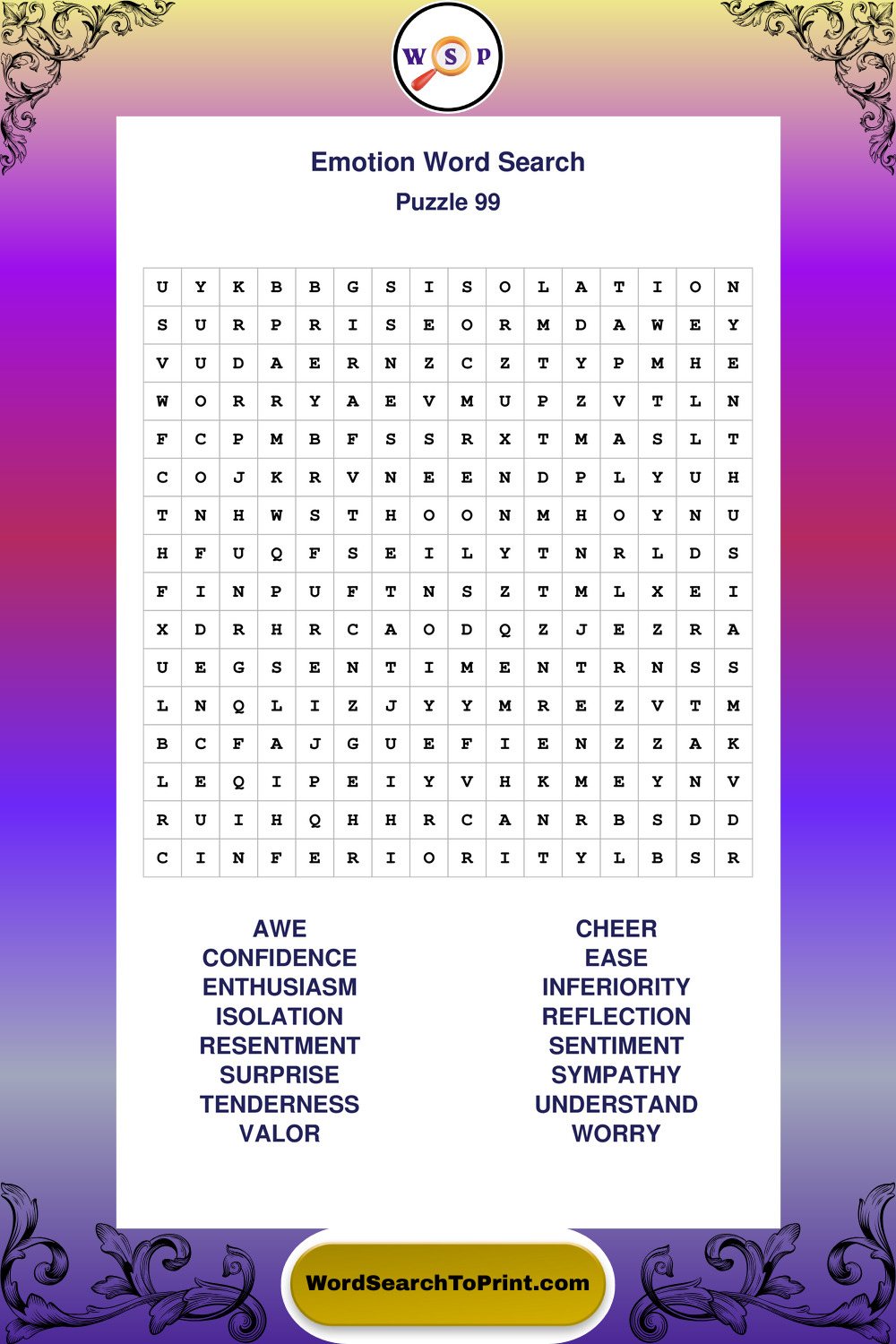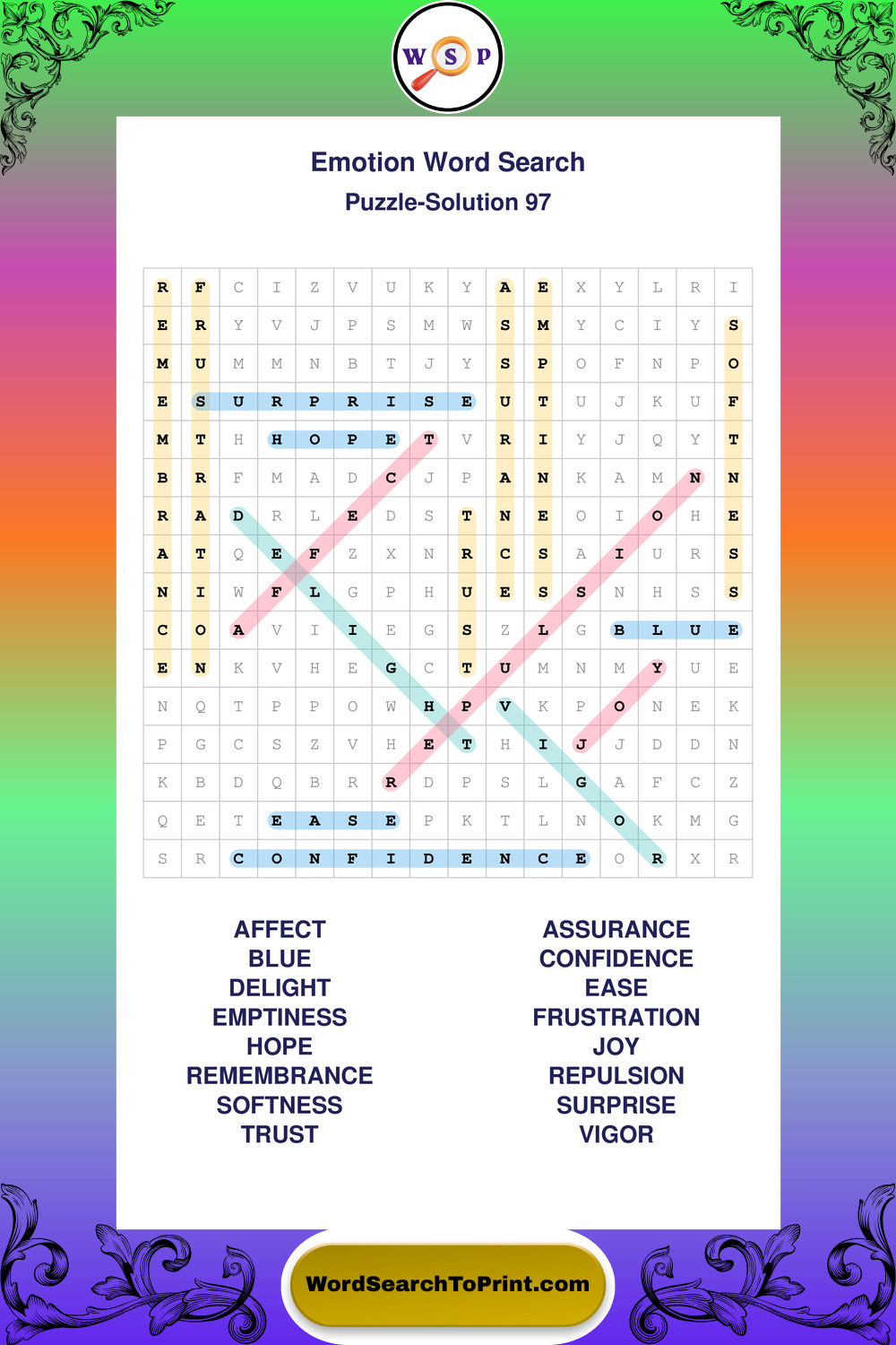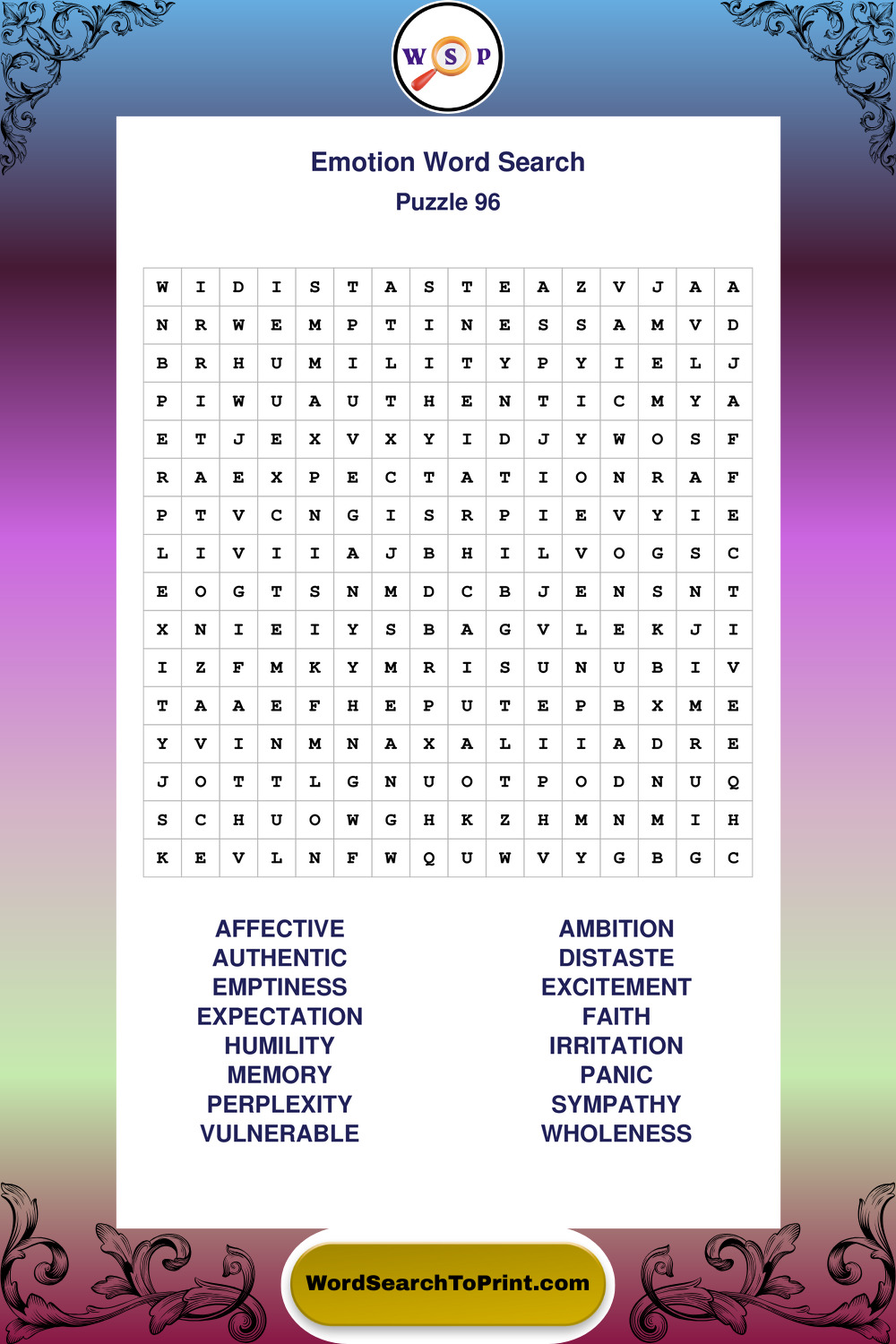 Printable Emotion Wordsearch Puzzles