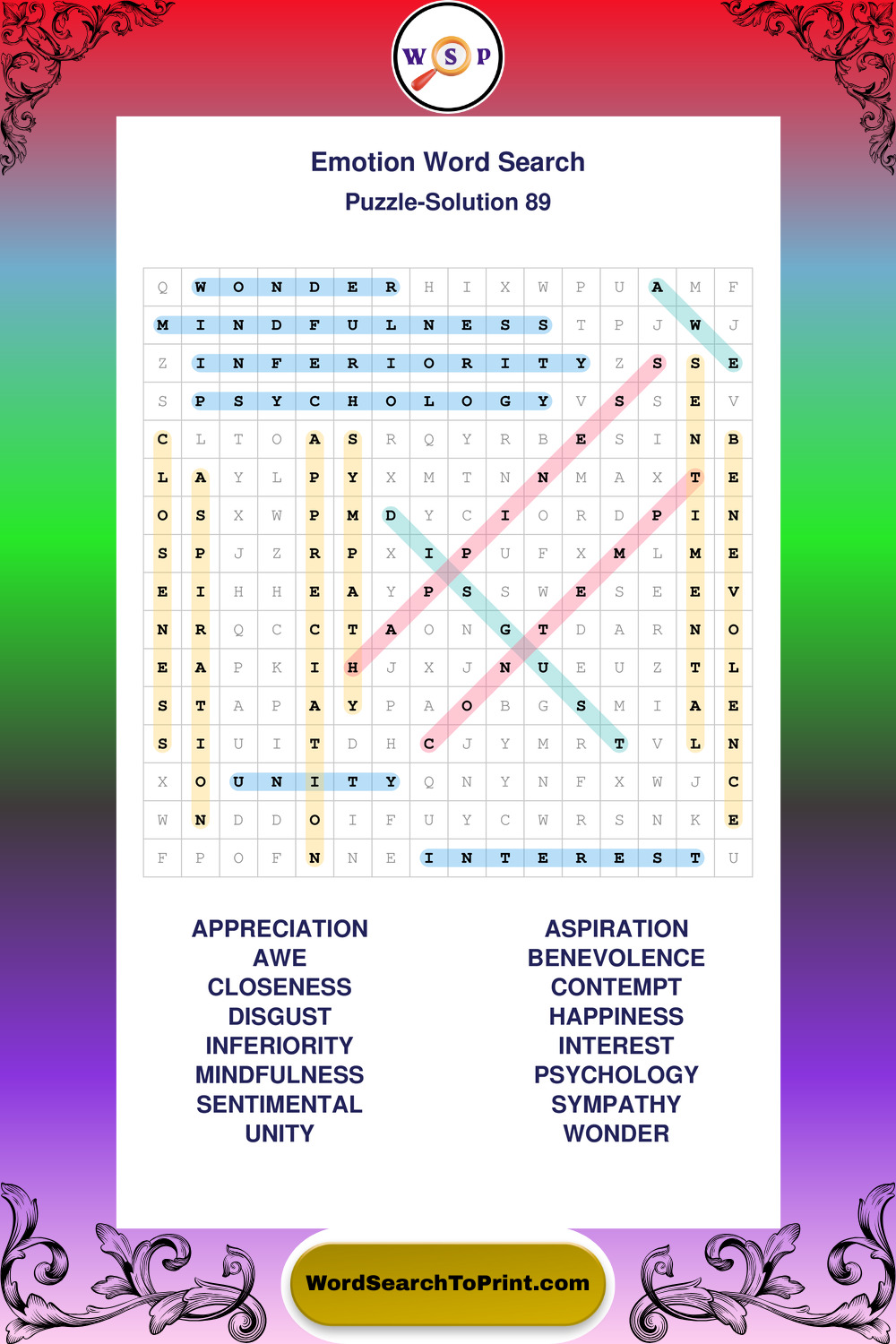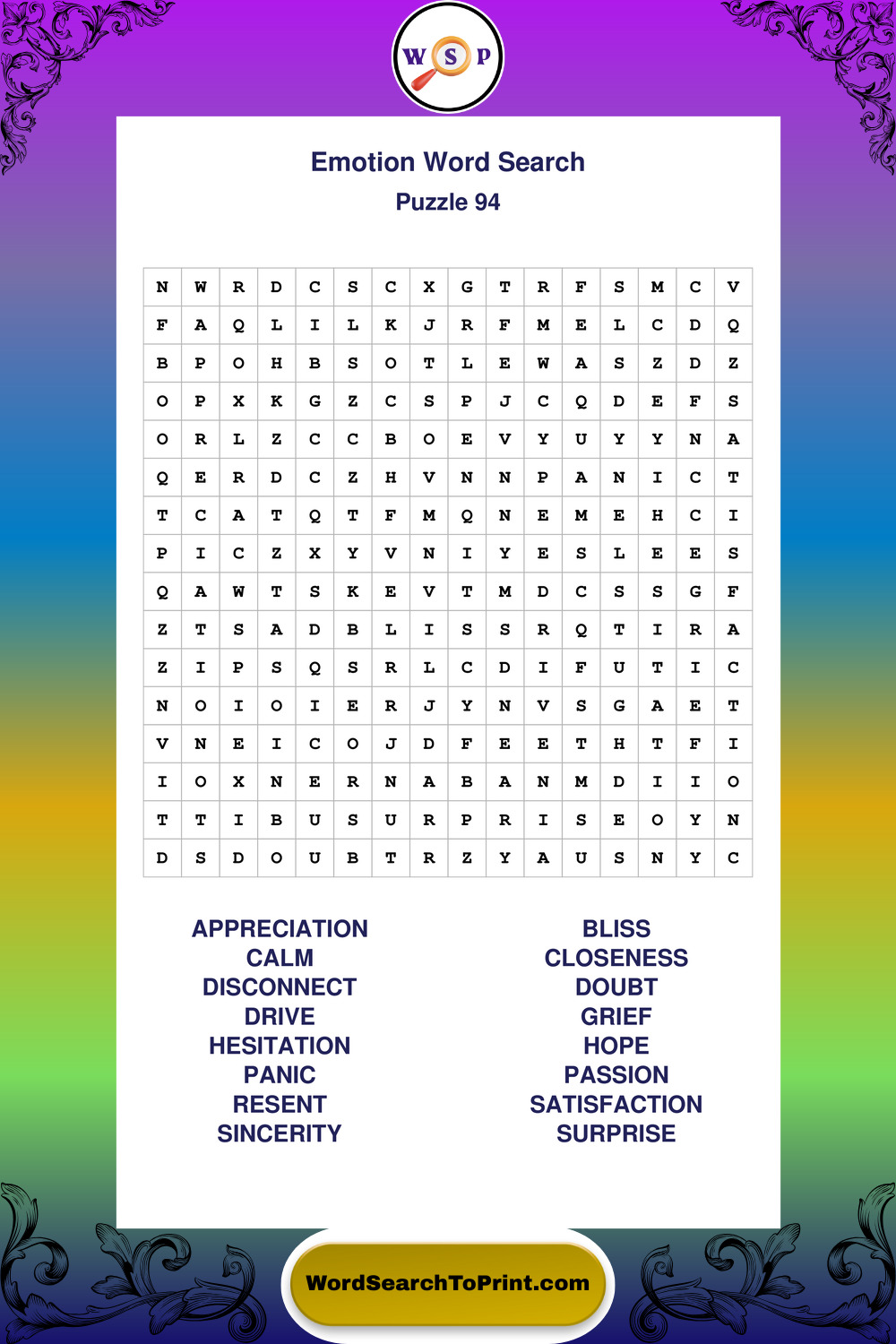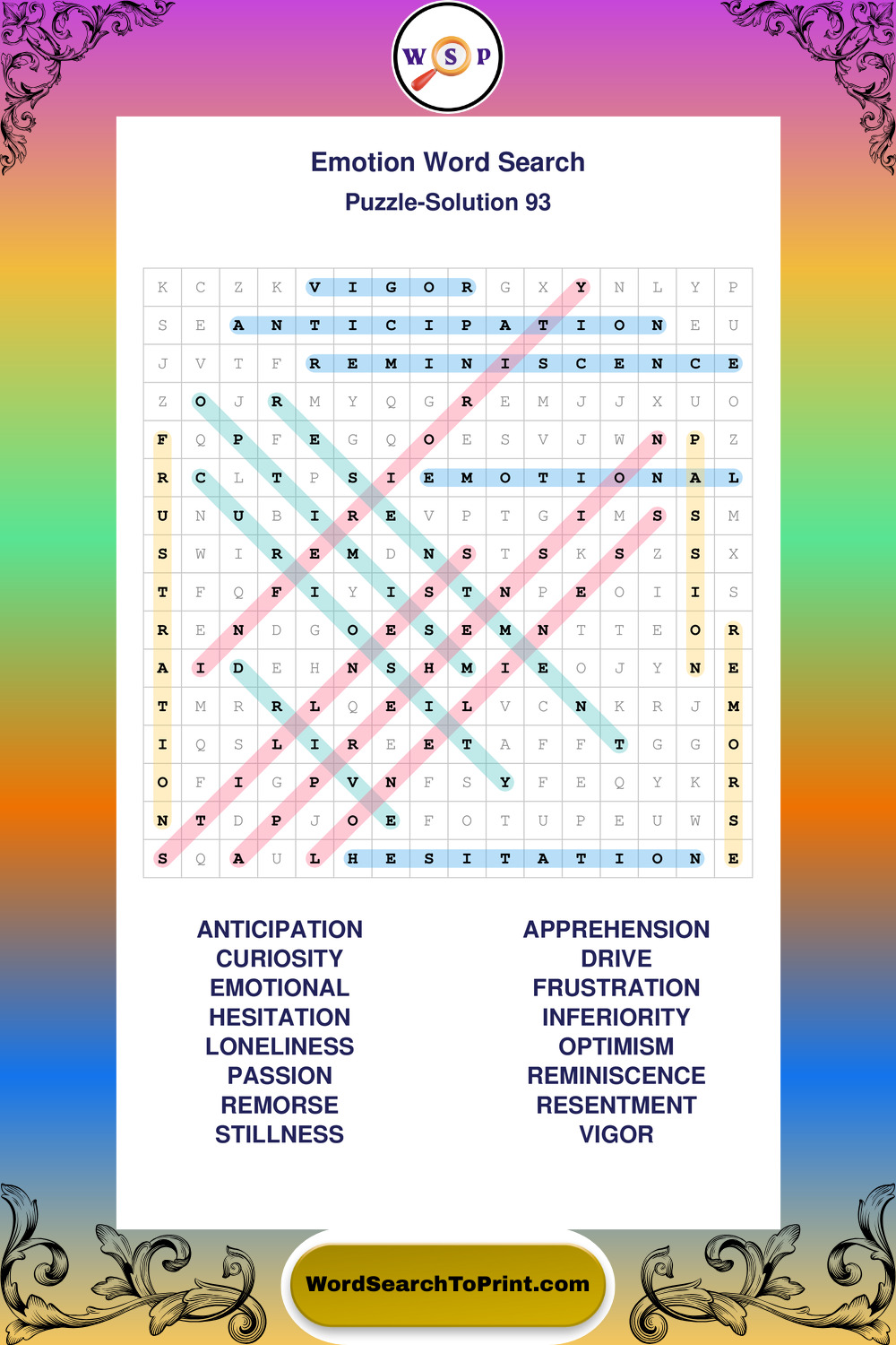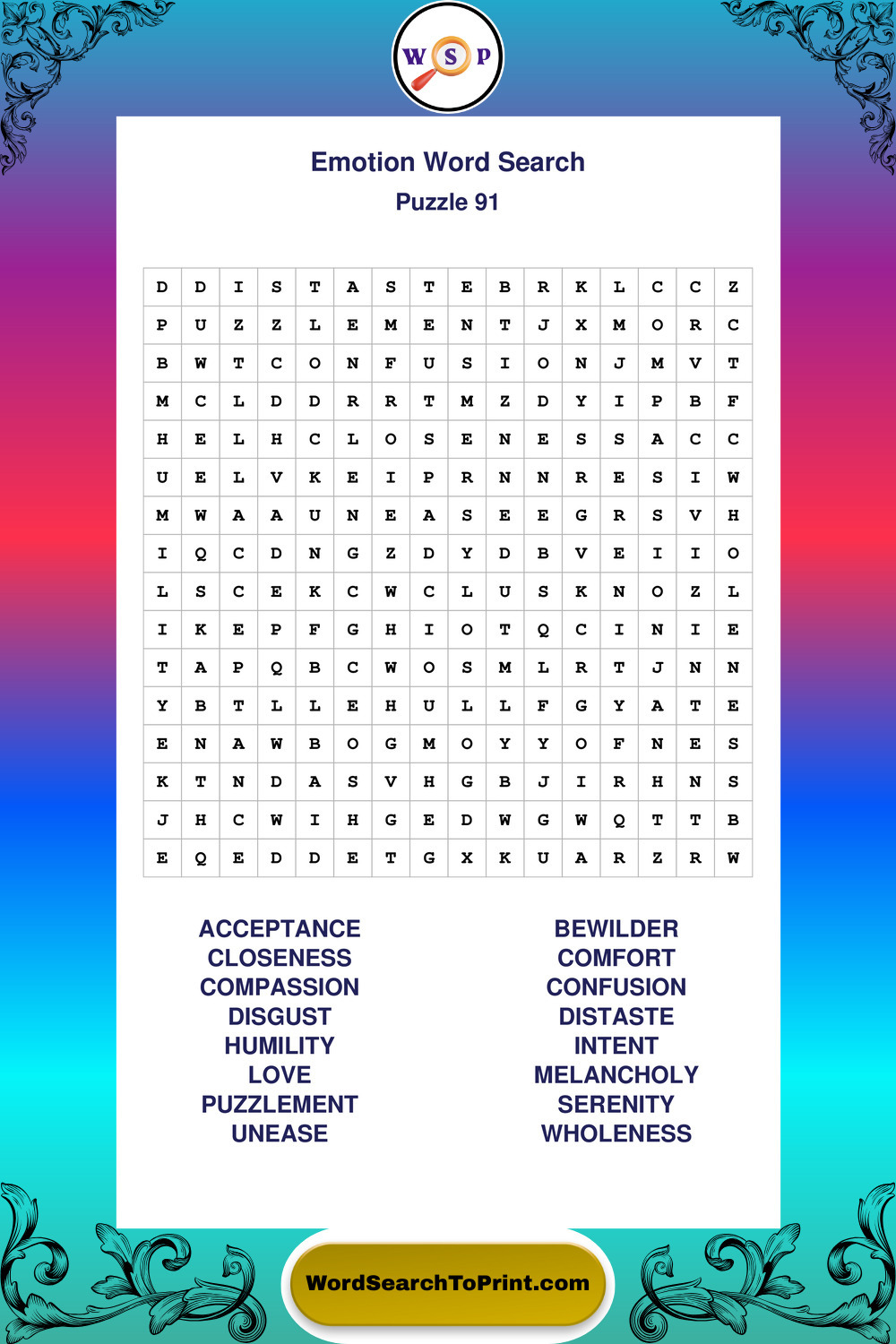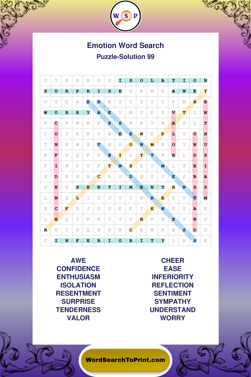Printable Emotion Wordsearch Puzzles