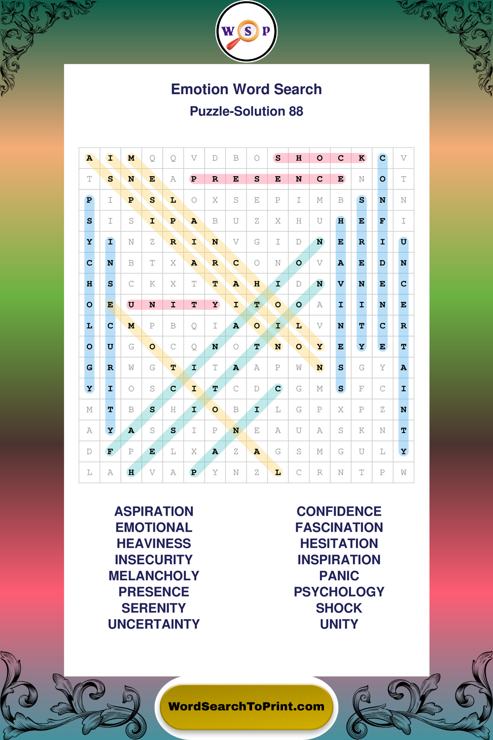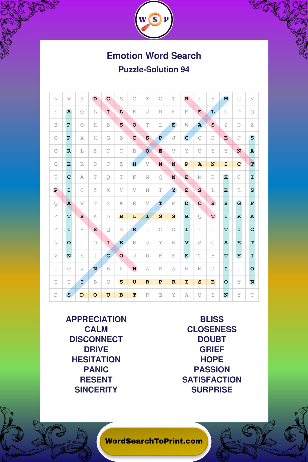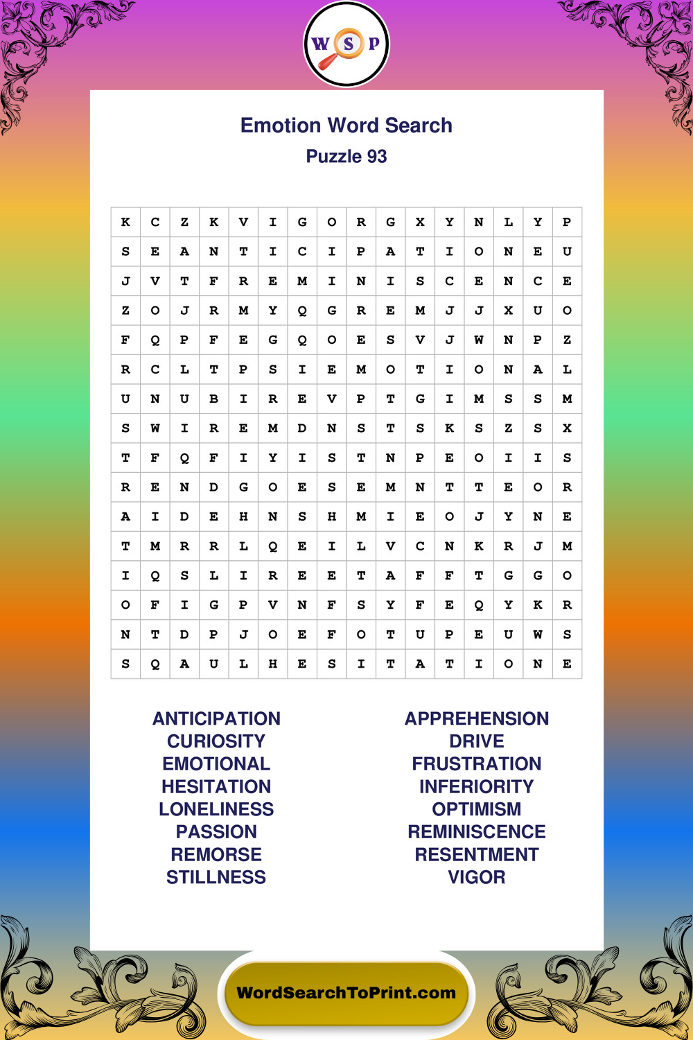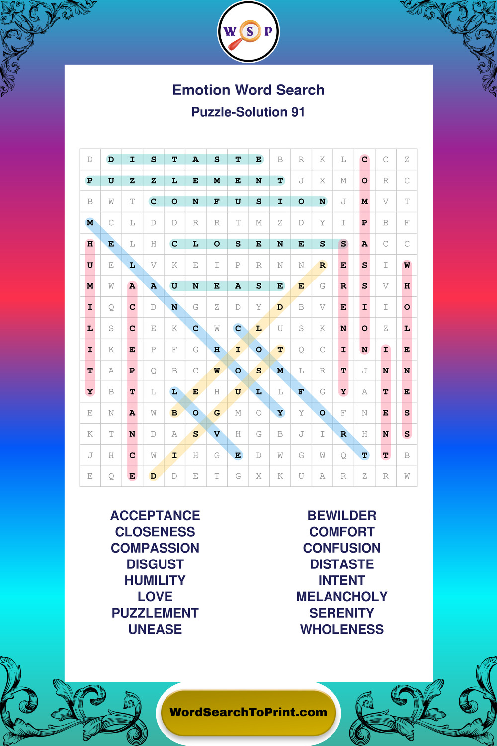 Printable Emotion Wordsearch Puzzles