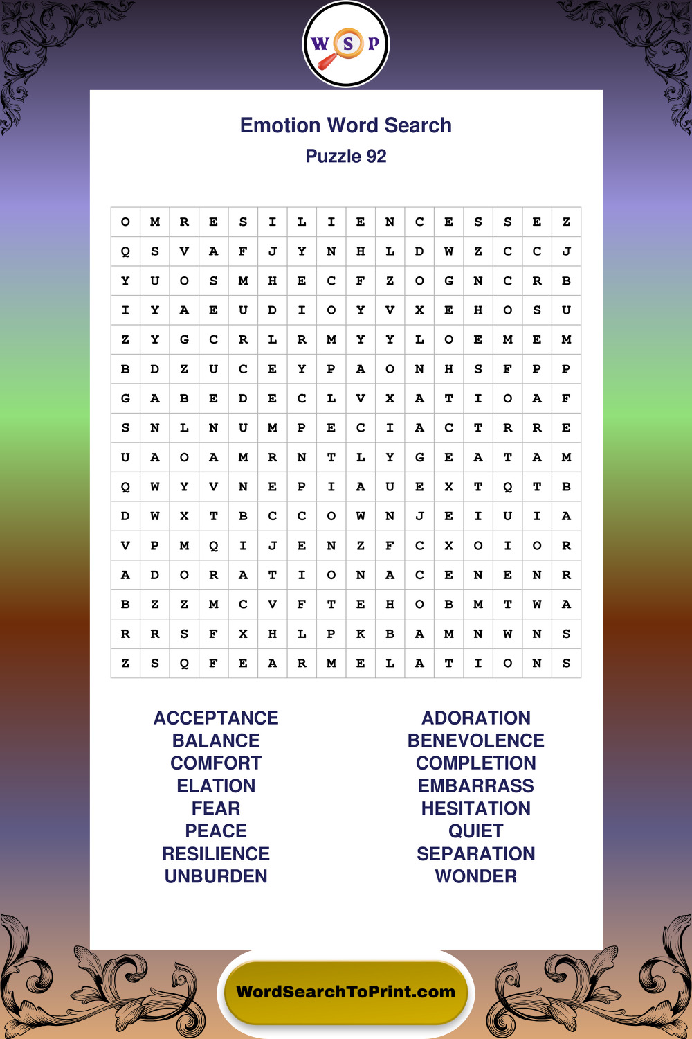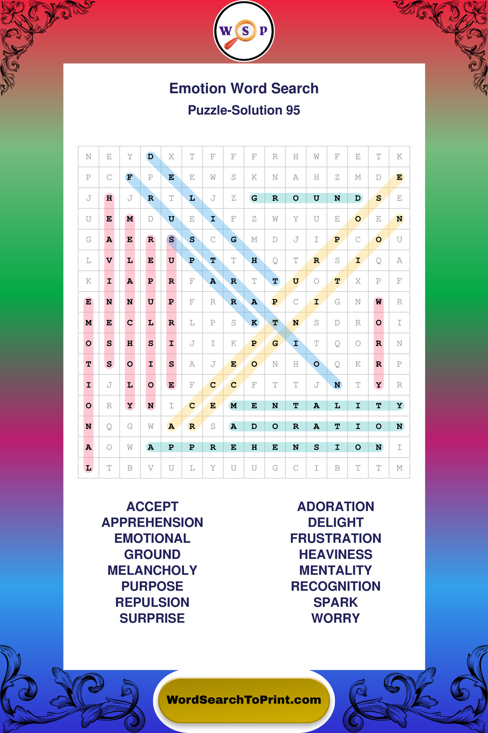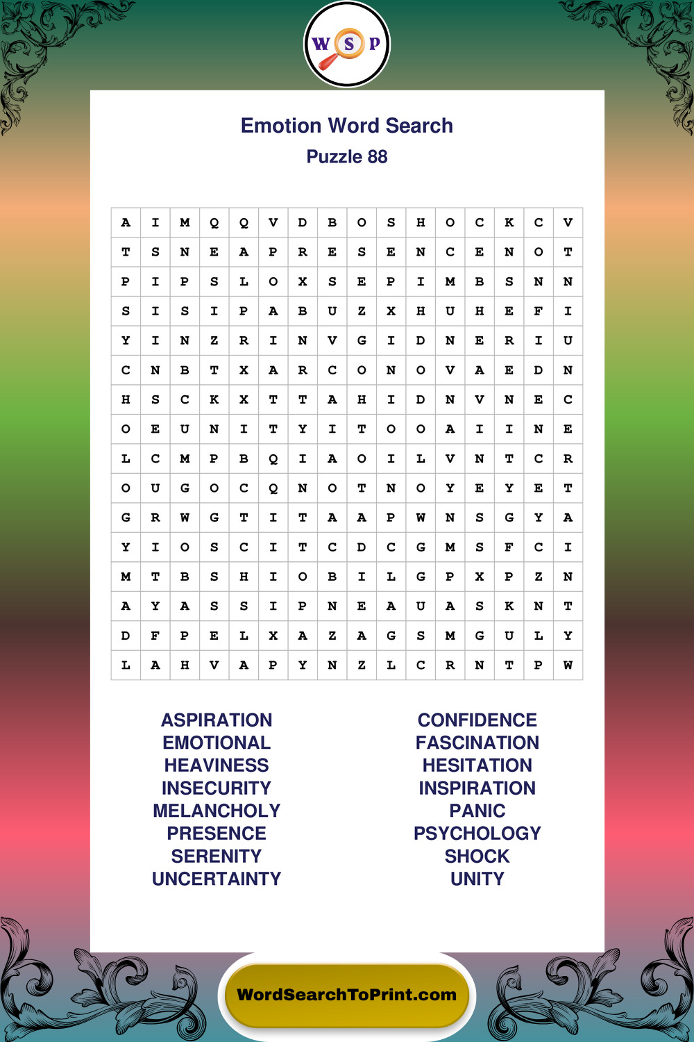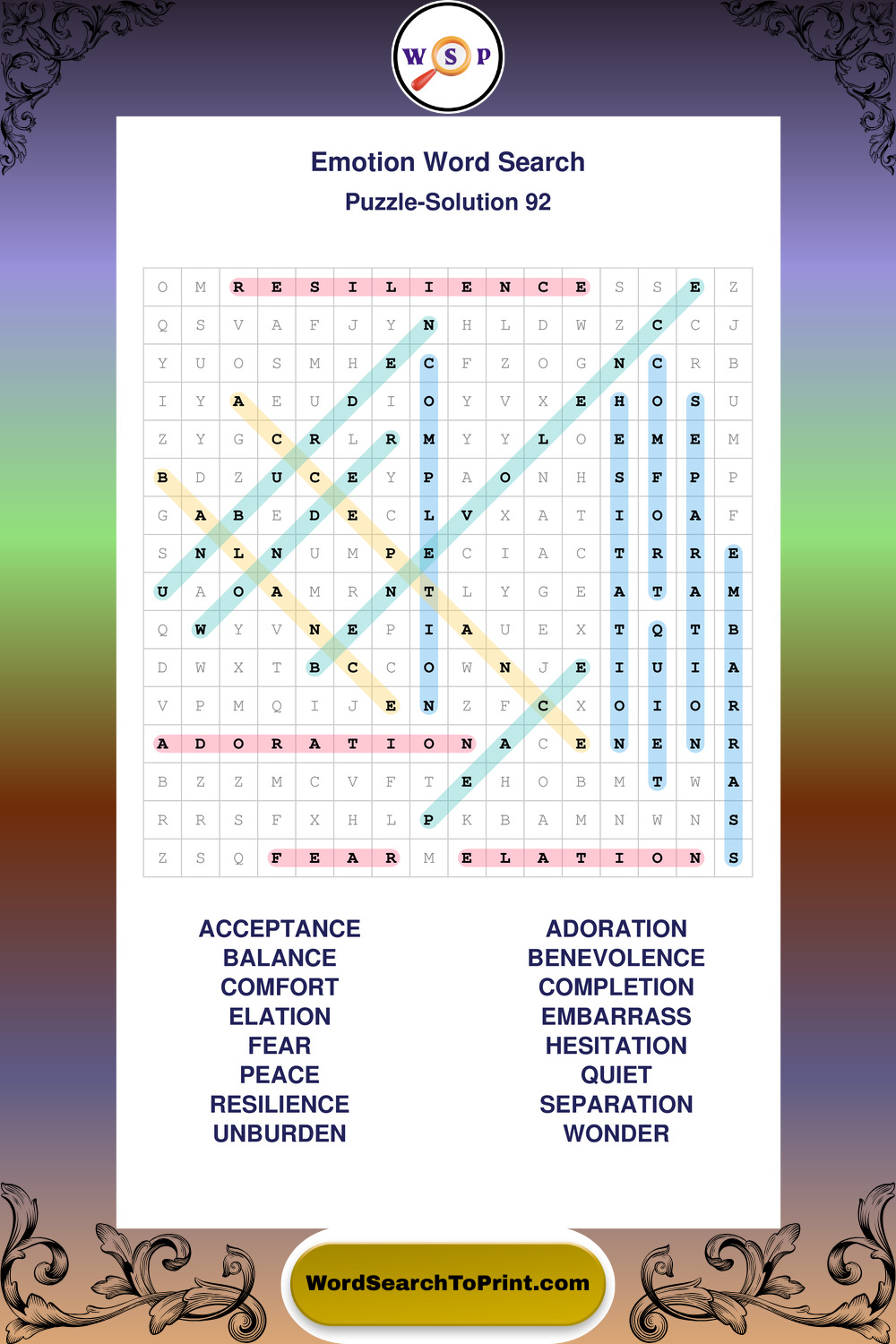 Printable Emotion Wordsearch Puzzles