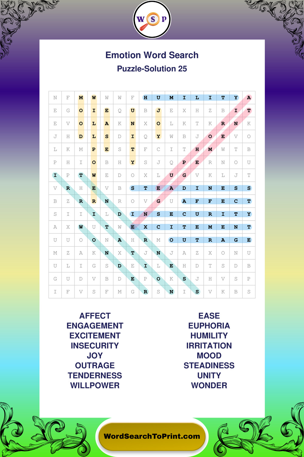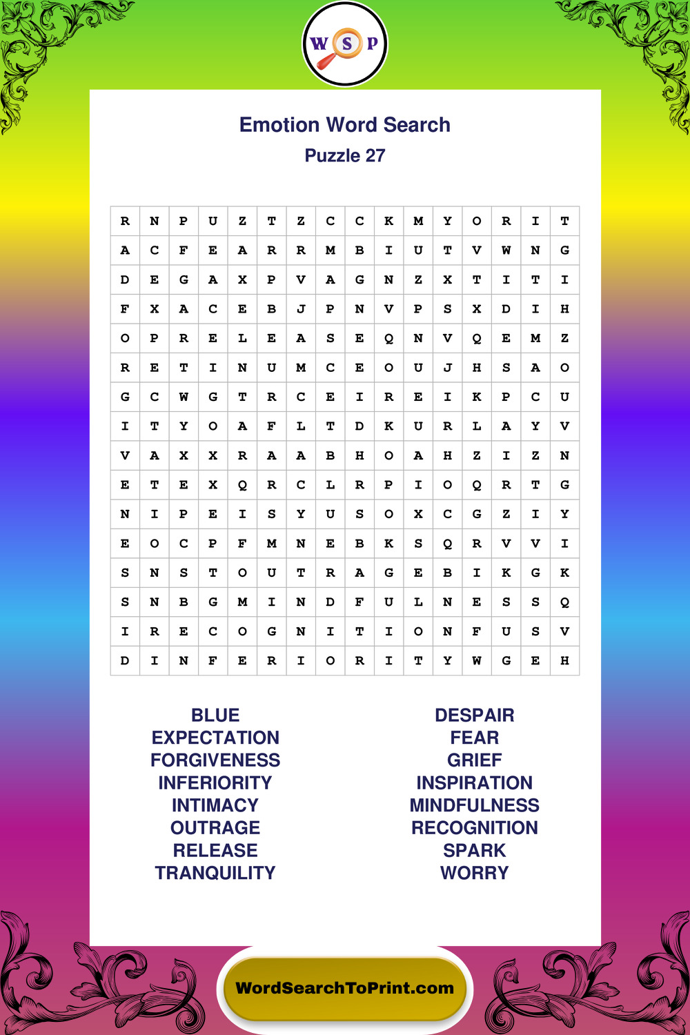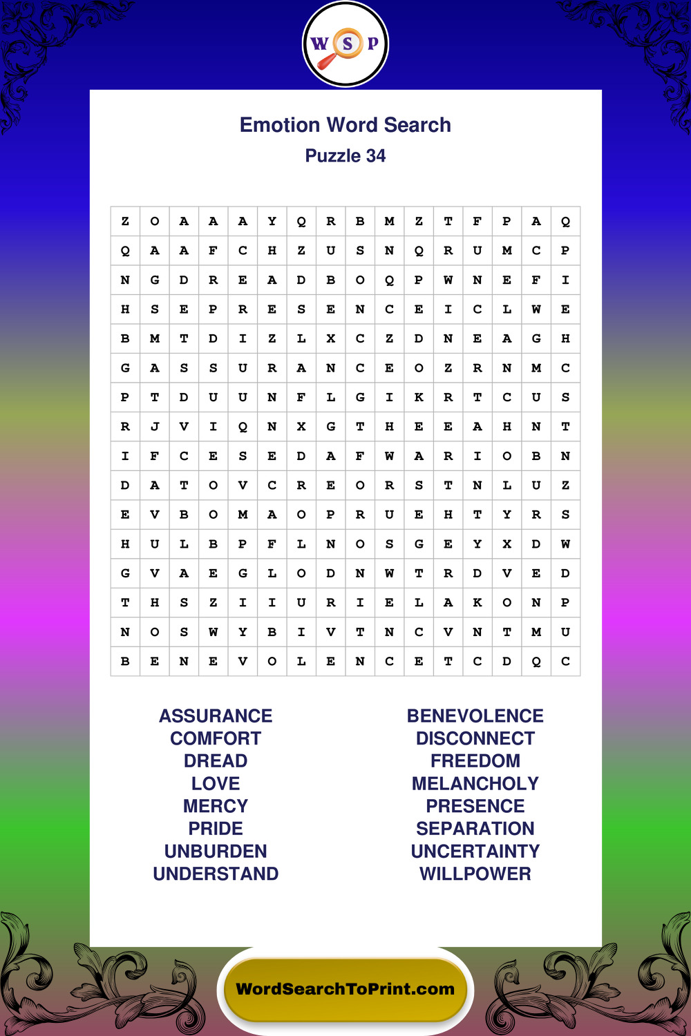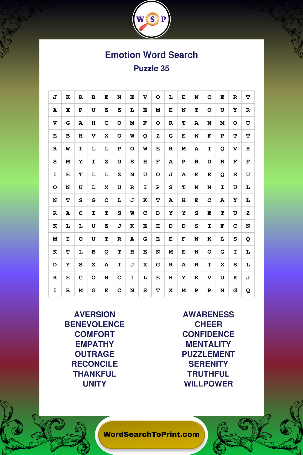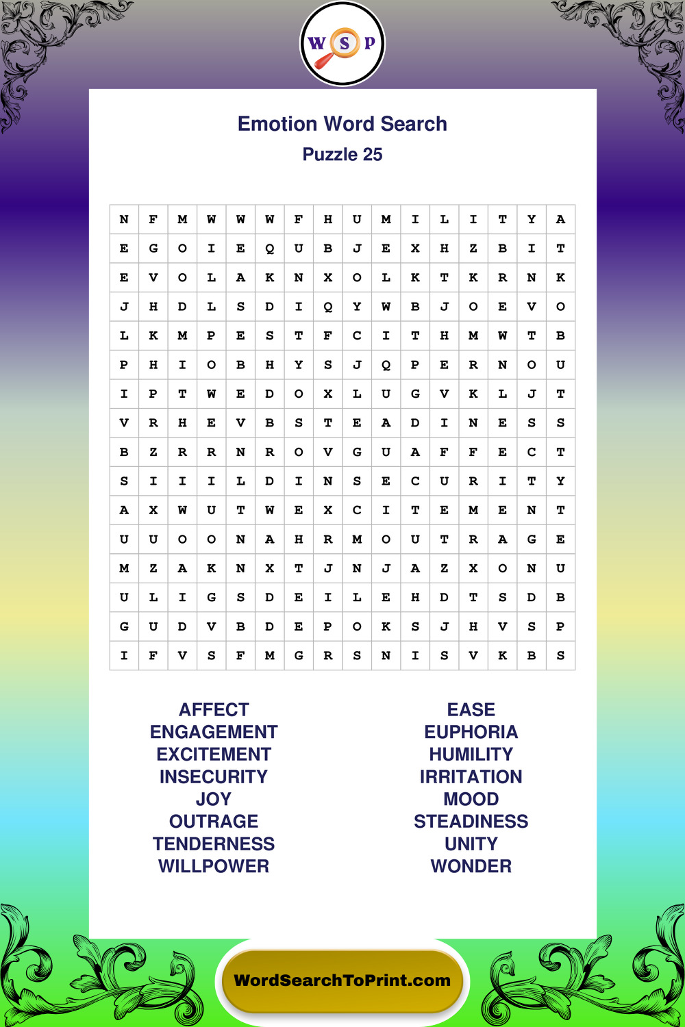 Printable Emotion Wordsearch Puzzles