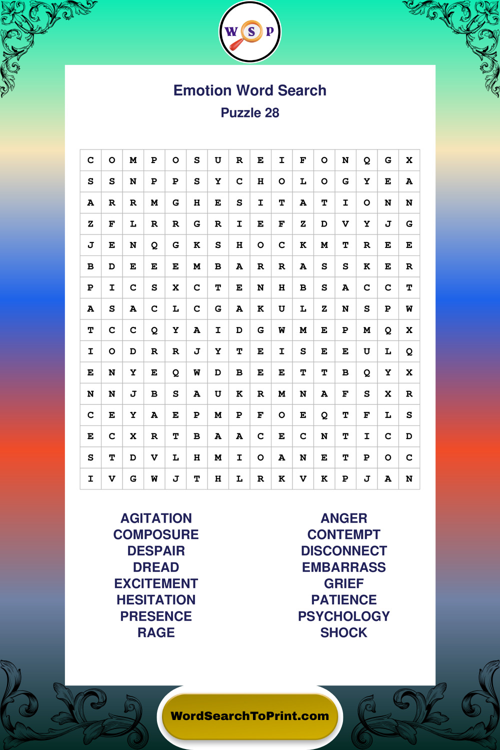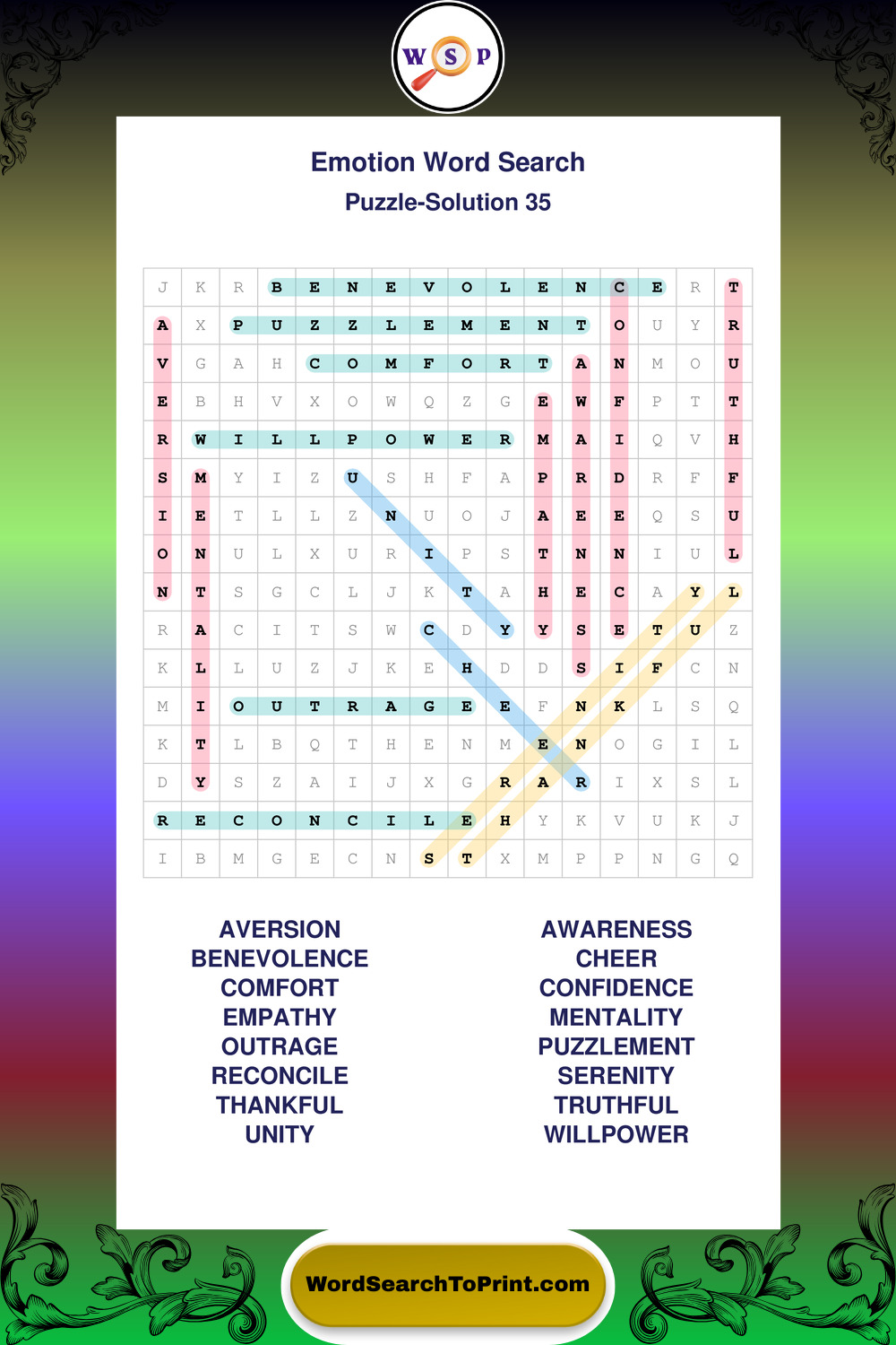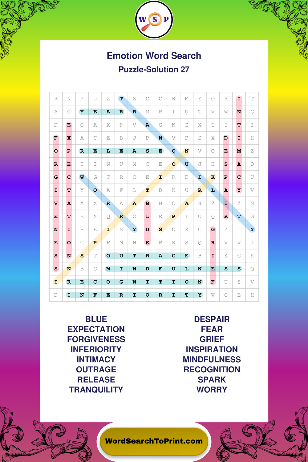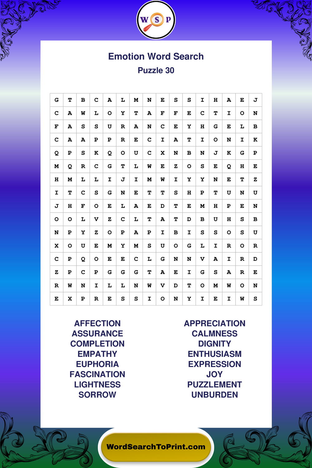 Printable Emotion Wordsearch Puzzles