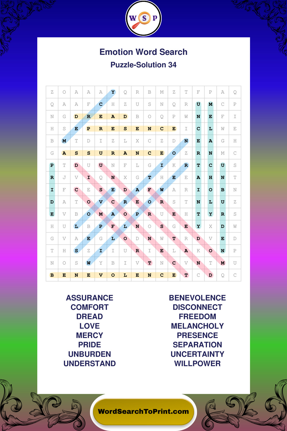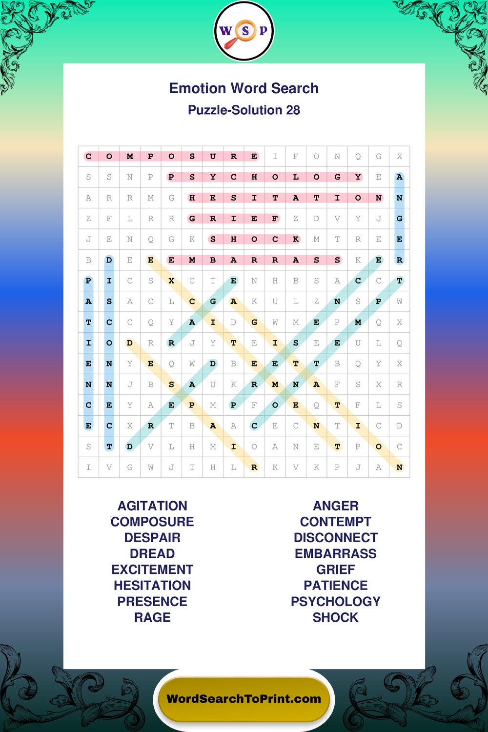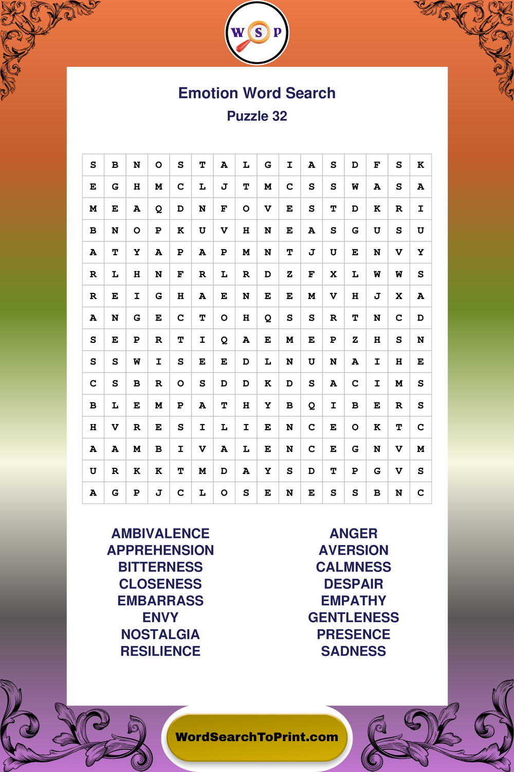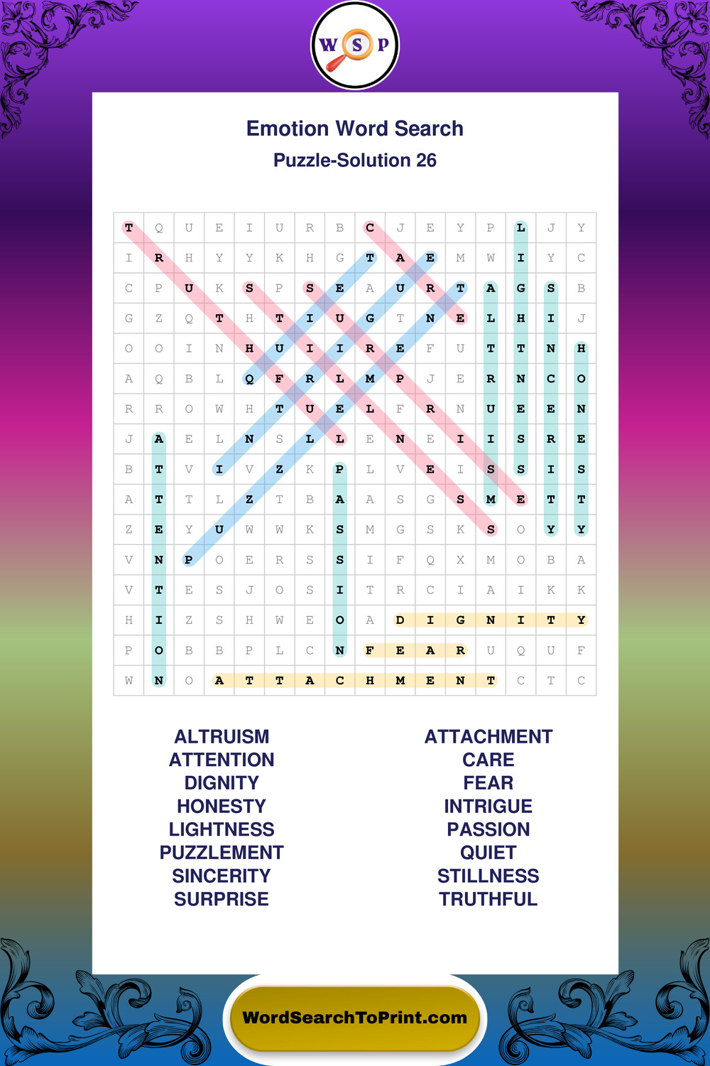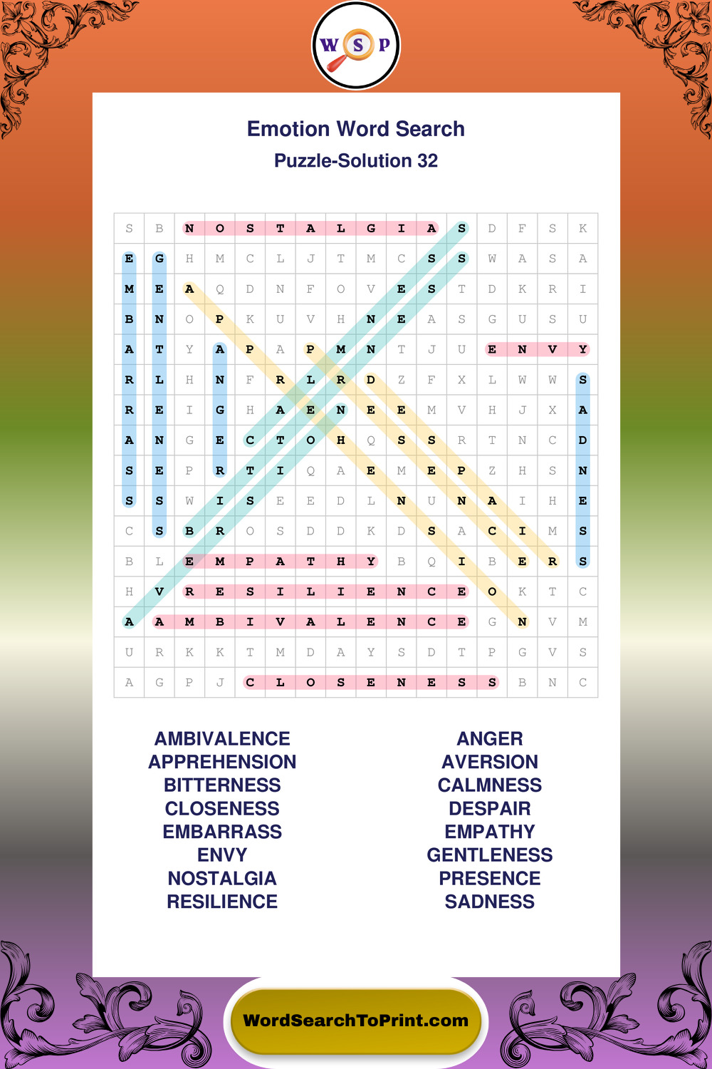 Printable Emotion Wordsearch Puzzles
