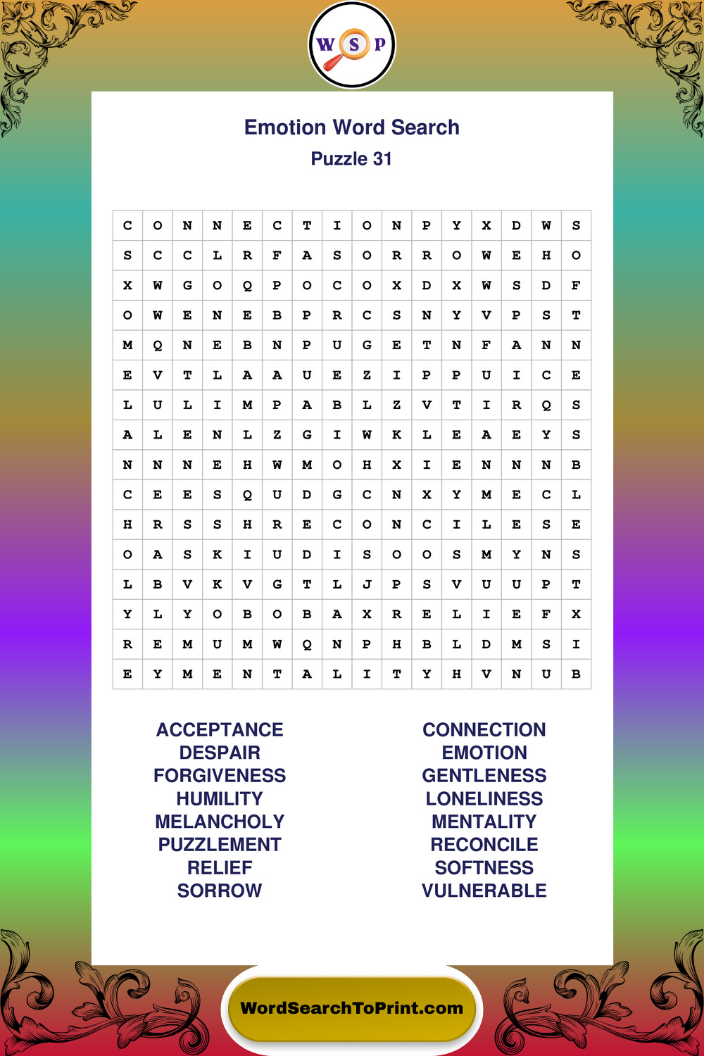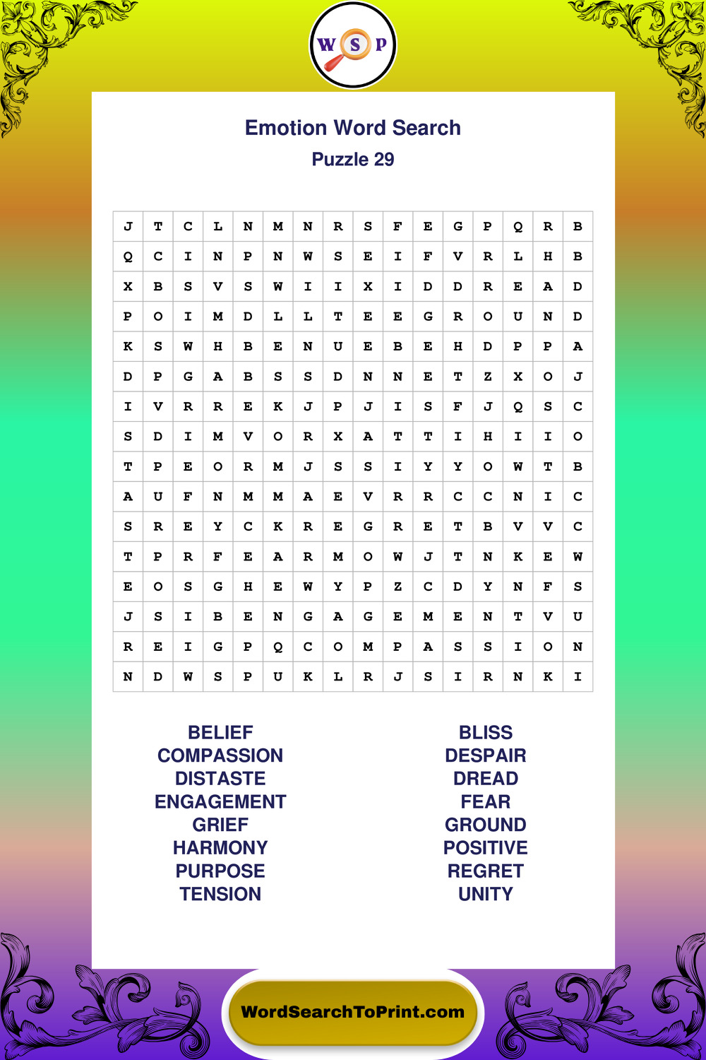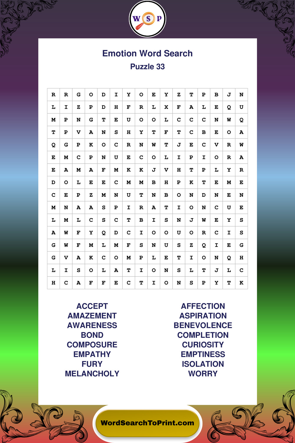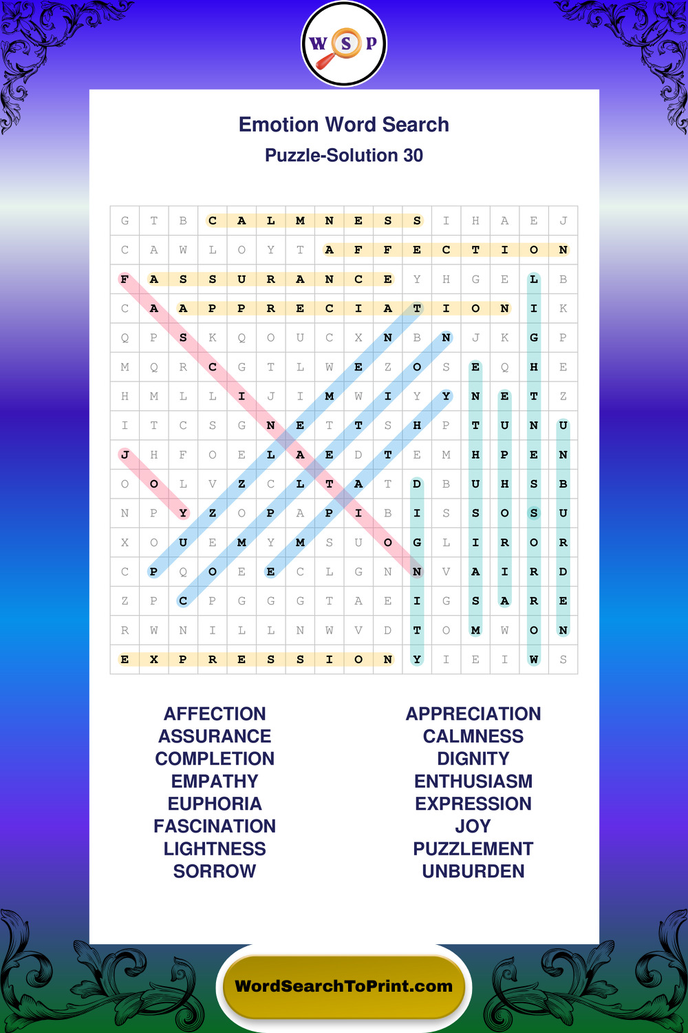 Printable Emotion Wordsearch Puzzles