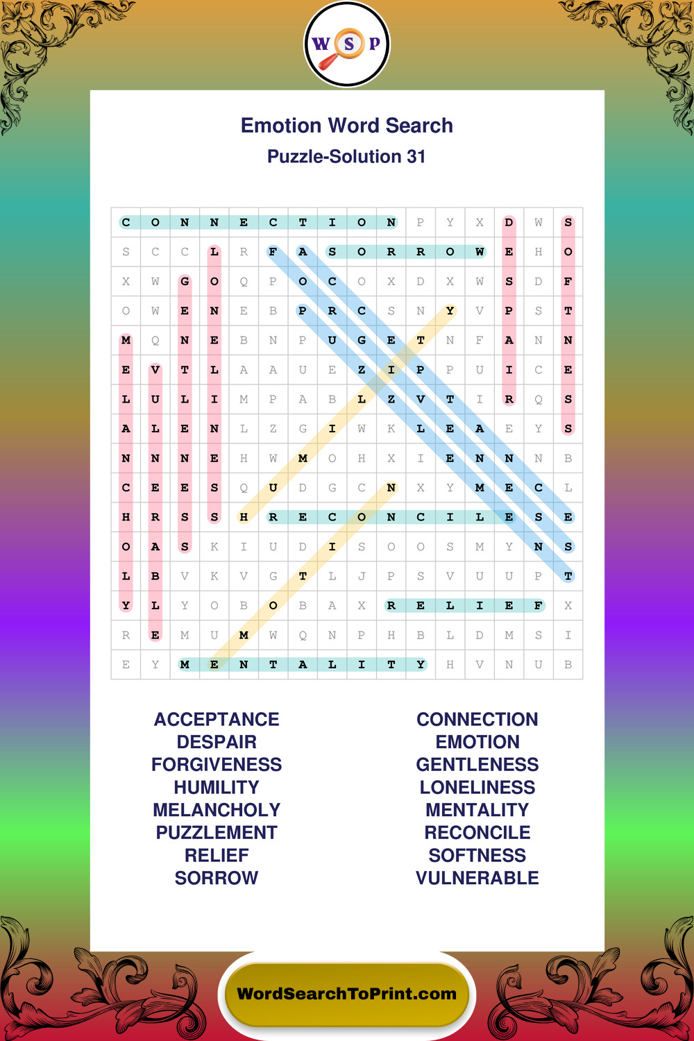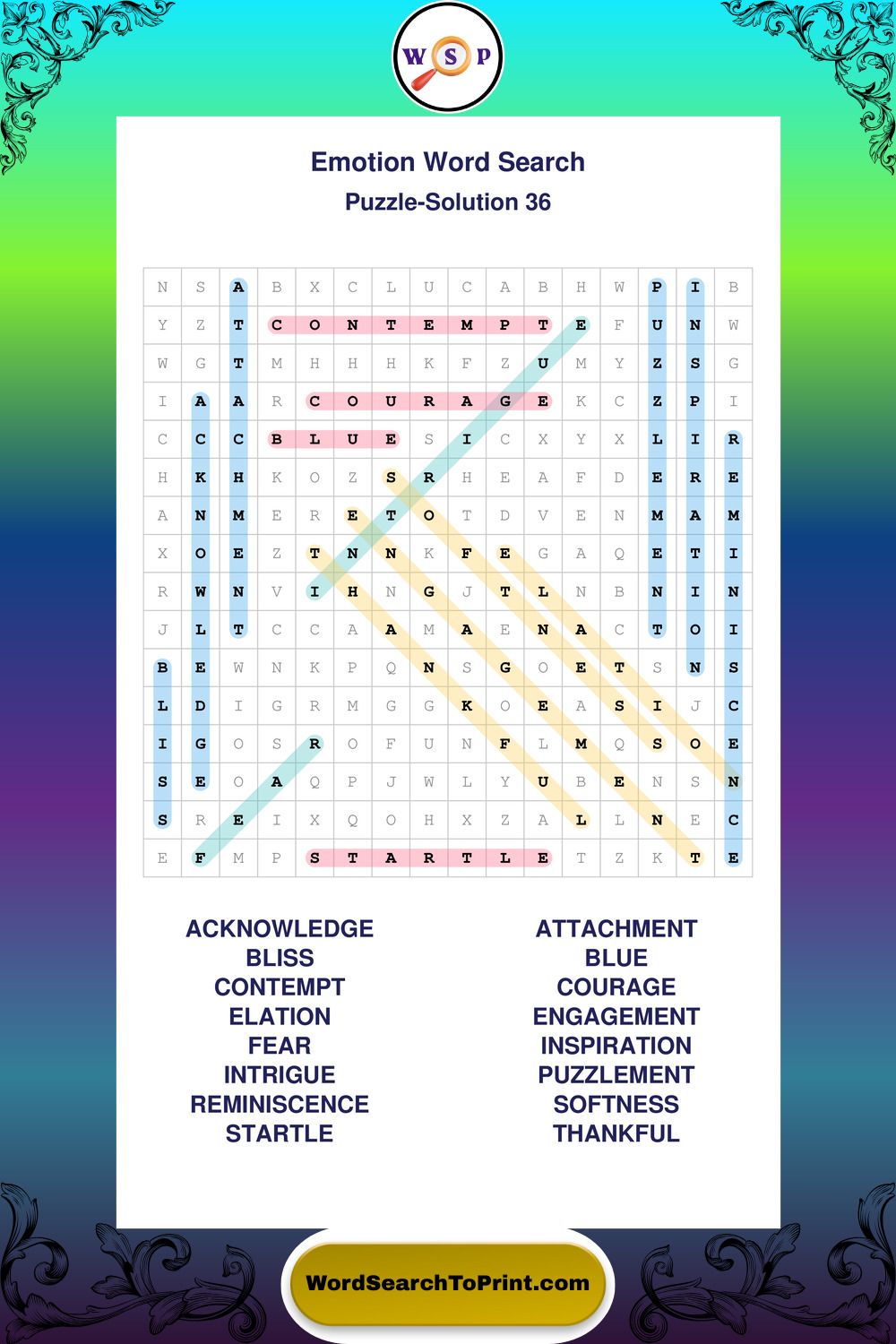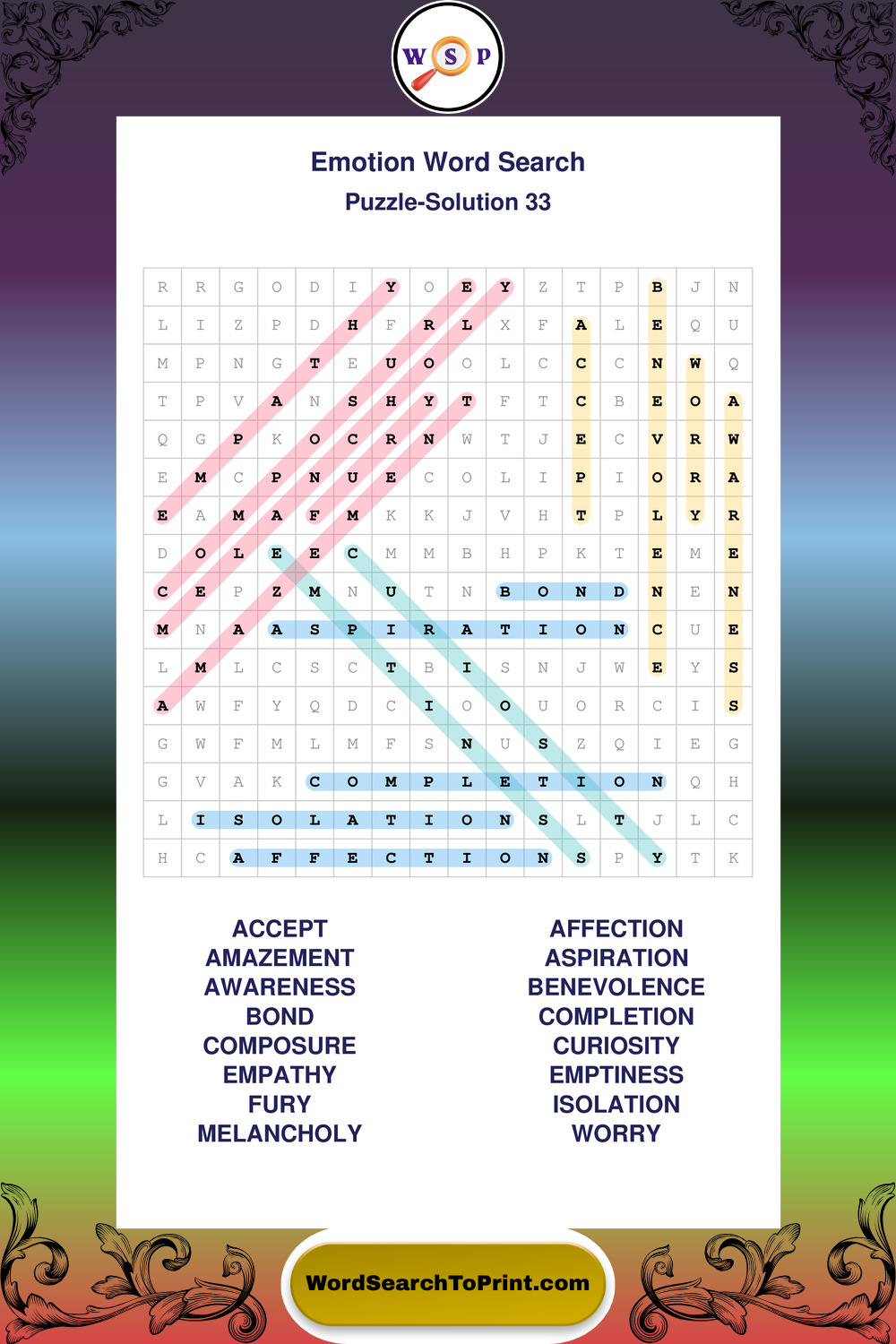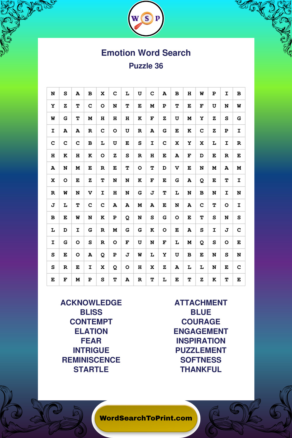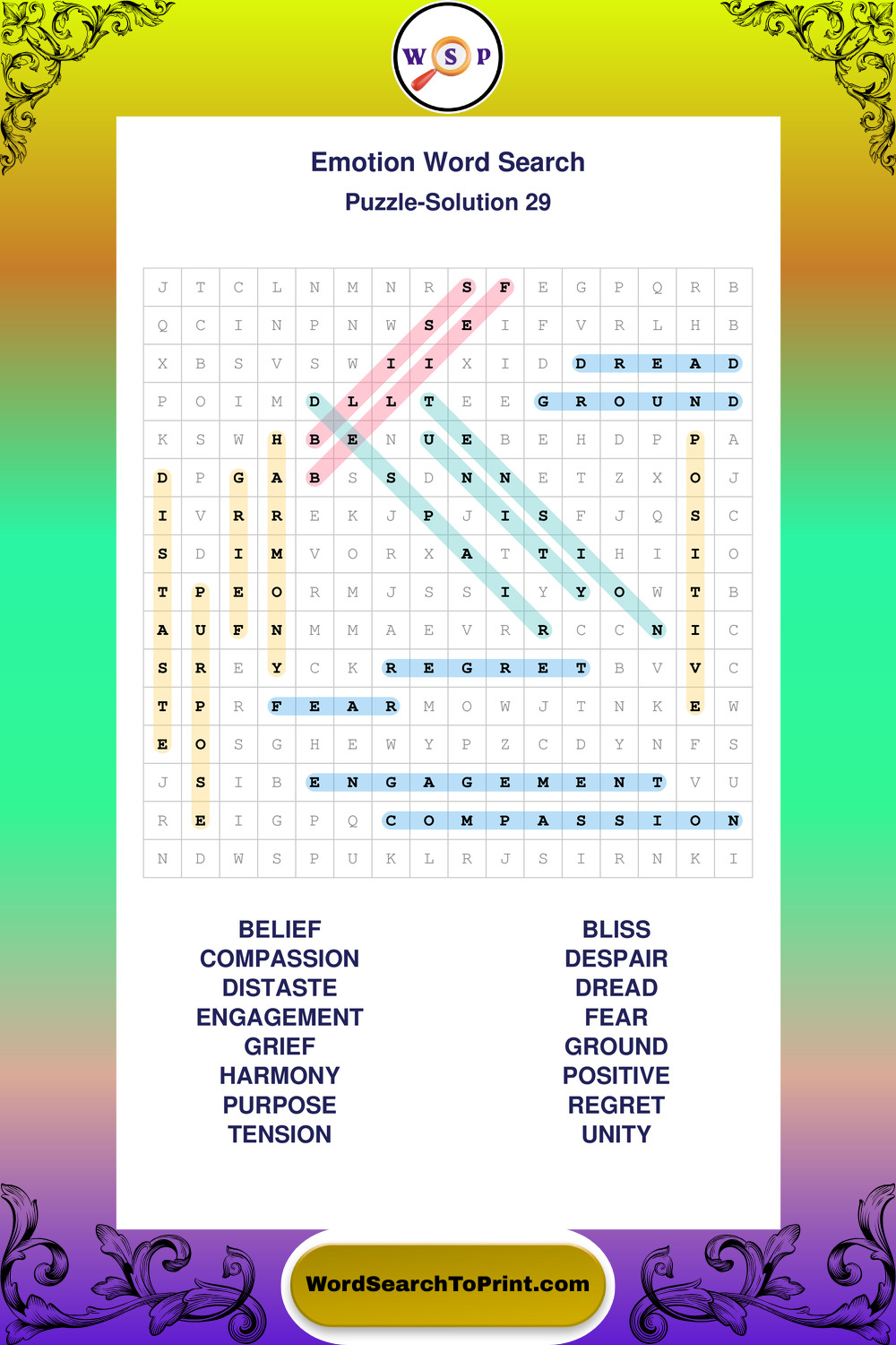 Printable Emotion Wordsearch Puzzles